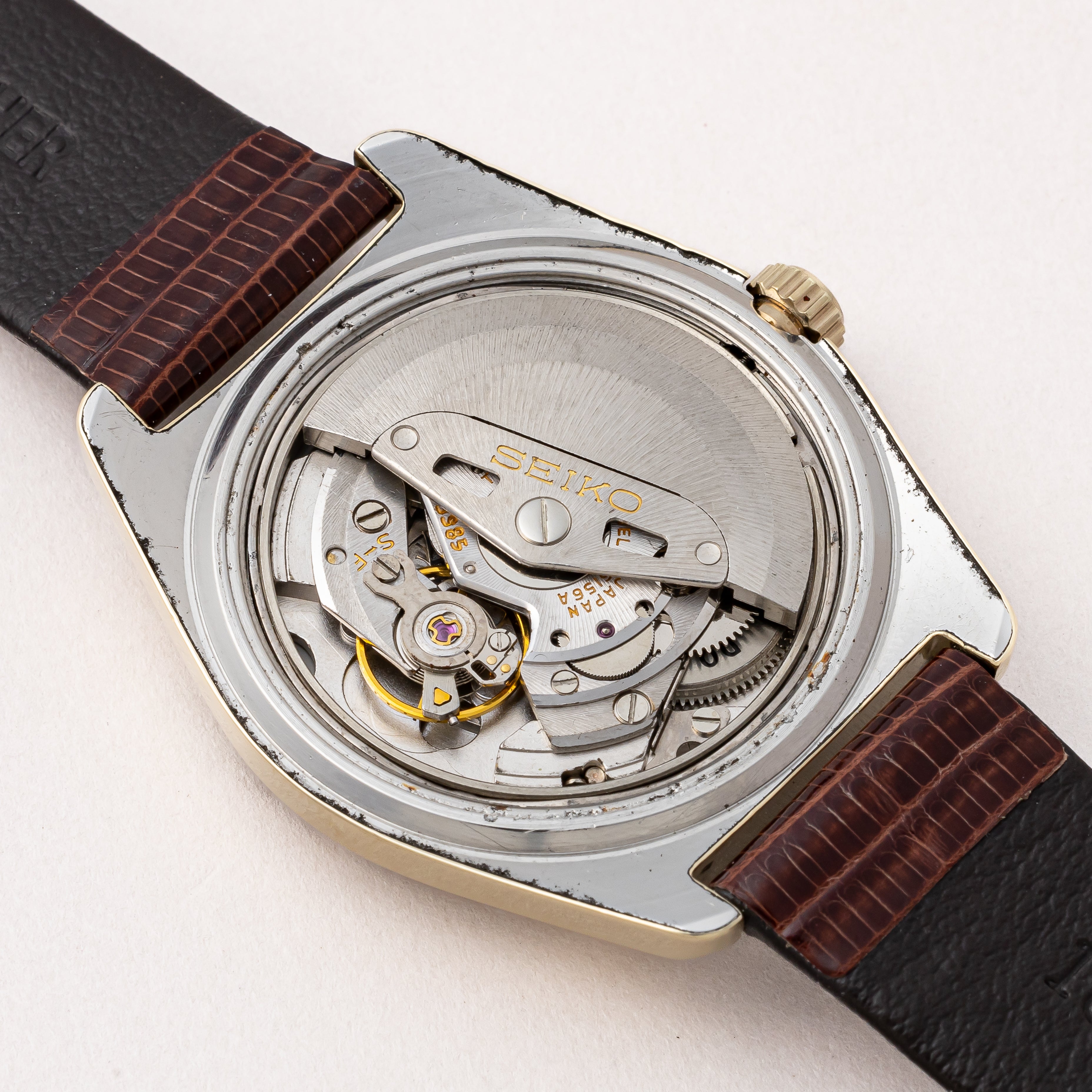 - ヴィンテージ時計の特性上、風防・パッキン・リューズ・バネ棒などの消耗部品は後年メンテナンス過程で交換されている場合がございます。オリジナル性を重視しておりますが、必要に応じて適切な部品にて調整されていますので、よりコレクション性重視のお求めのお客様は事前にご確認ください。