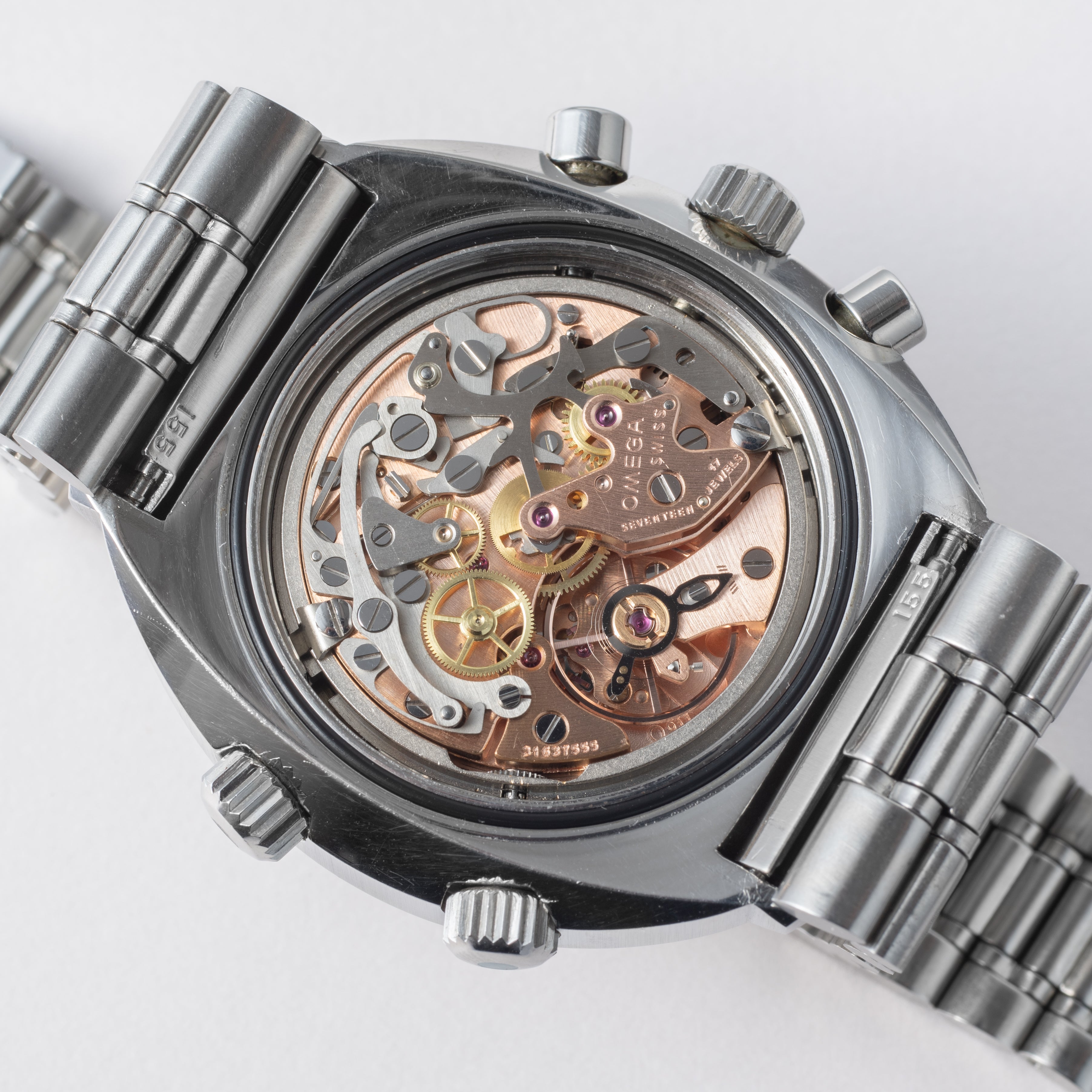 - ヴィンテージ時計の特性上、風防・パッキン・リューズ・バネ棒などの消耗部品は後年メンテナンス過程で交換されている場合がございます。オリジナル性を重視しておりますが、必要に応じて適切な部品にて調整されていますので、よりコレクション性重視のお求めのお客様は事前にご確認ください。