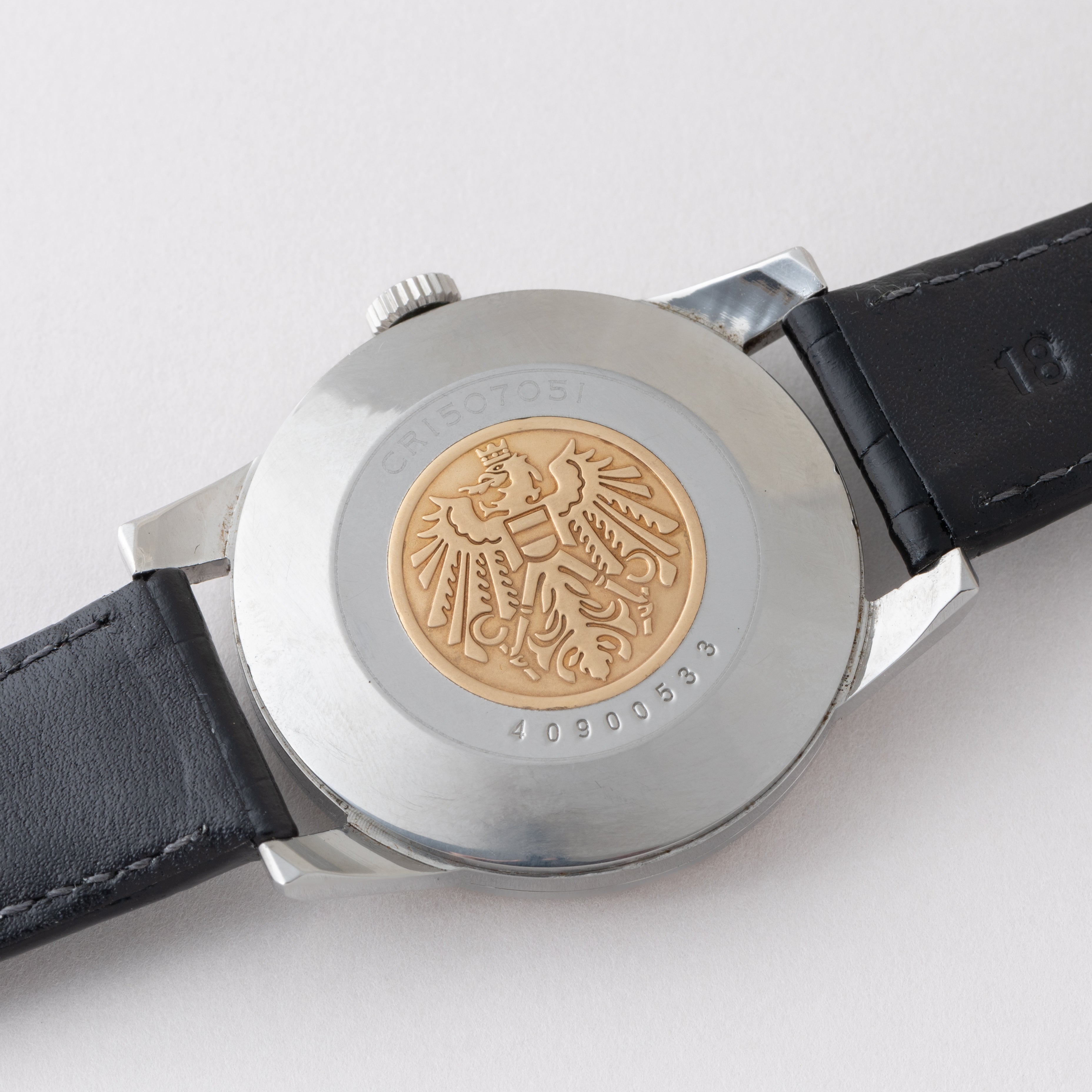 国産腕時計最高峰の一つと言われているシチズンの名機「クロノメーターCR1507051」1964年製です。 1962年から1966年までの約4年間のみ製造されたモデルで、採算を度外視して造られた為に短命になったと言われています。人気のステンレスケースで非常に美しい外観と精度を重視した大型ムーブメントは惚れ惚れとします。ケースは小傷が見られますが大きなダメージや腐食は見られません。メダリオンも綺麗に残っています。ベルトは社外の革ベルトが取り付けてあります。手巻きや針回しの操作はス