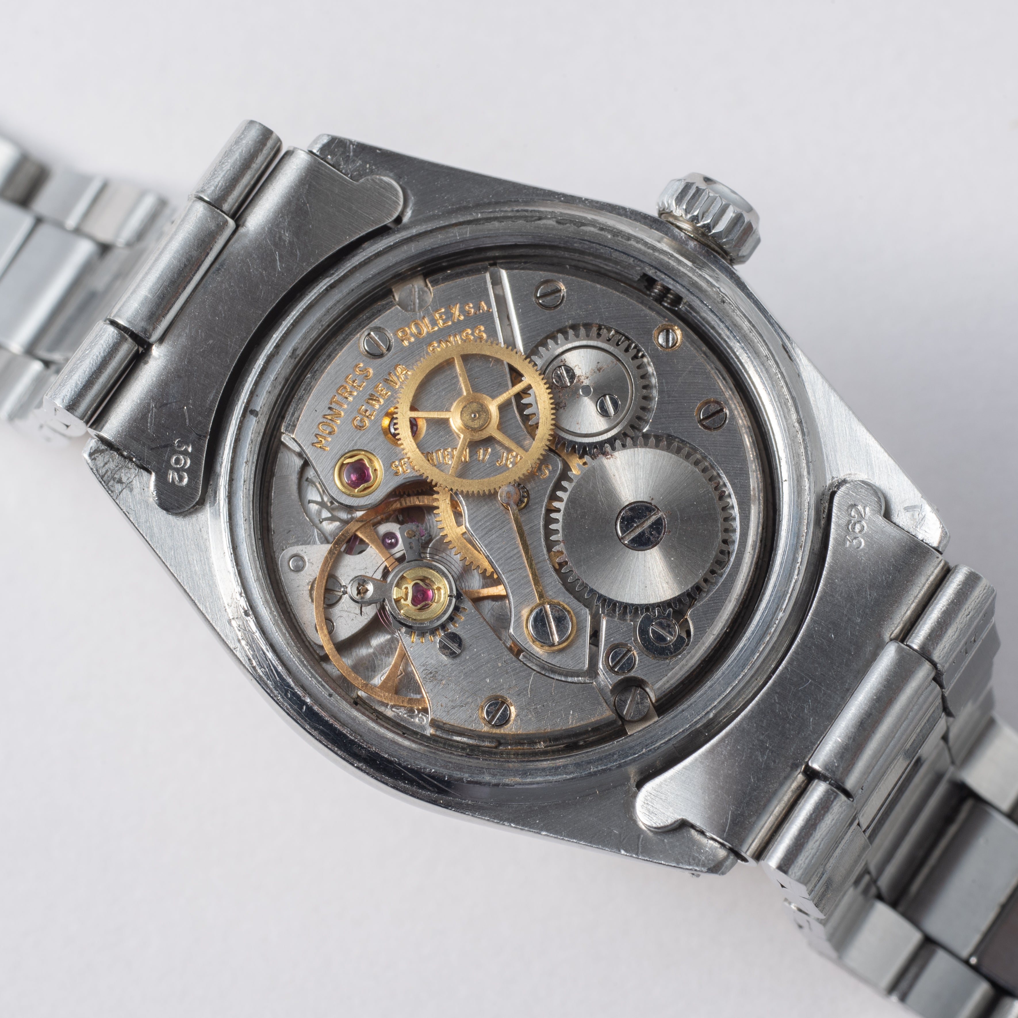 - ヴィンテージ時計の特性上、風防・パッキン・リューズ・バネ棒などの消耗部品は後年メンテナンス過程で交換されている場合がございます。オリジナル性を重視しておりますが、必要に応じて適切な部品にて調整されていますので、よりコレクション性重視のお求めのお客様は事前にご確認ください。