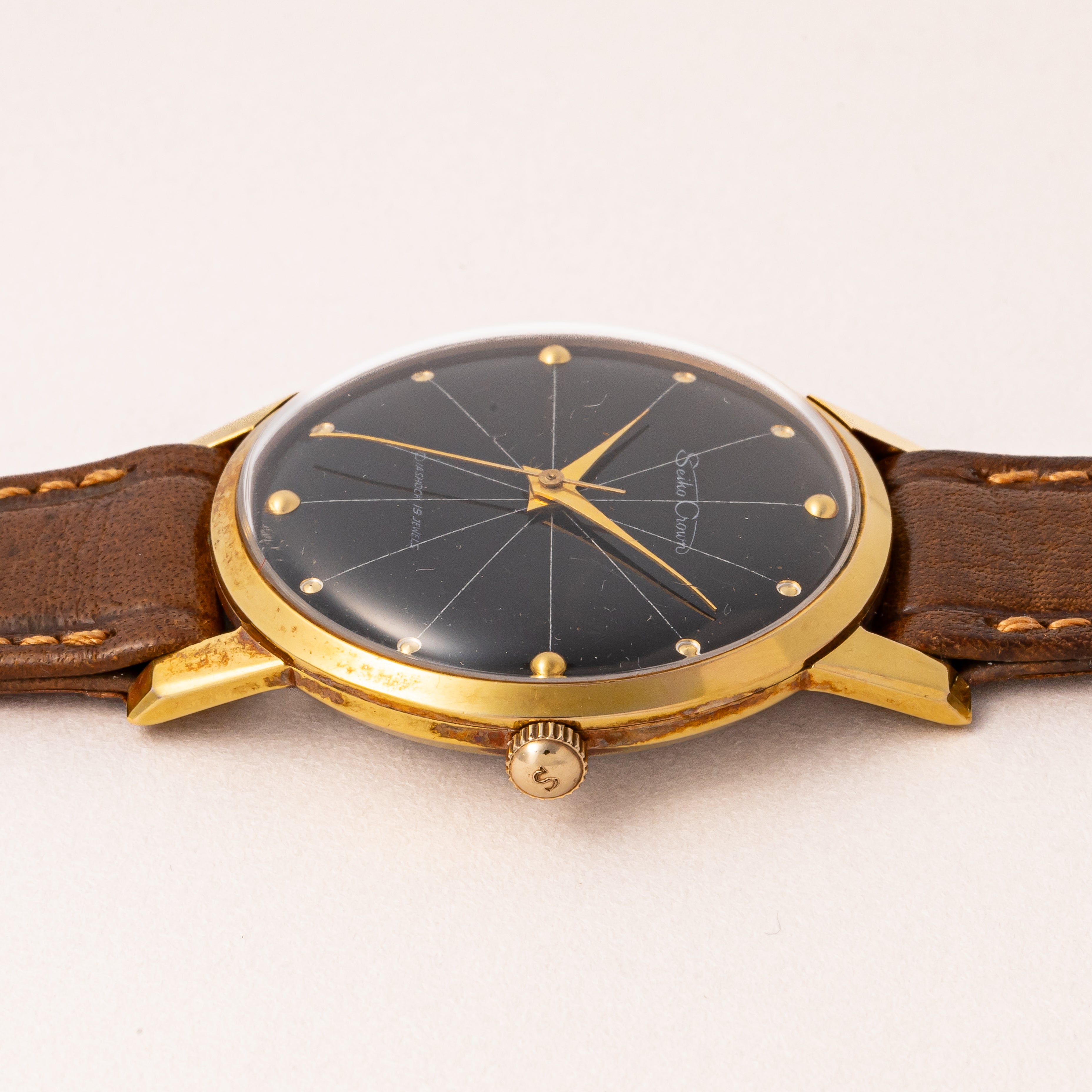 セイコー クラウン 1960年製/昭和35年製 Ref.J14066 タグ、純正ベルト付き オリジナルブラックダイヤル