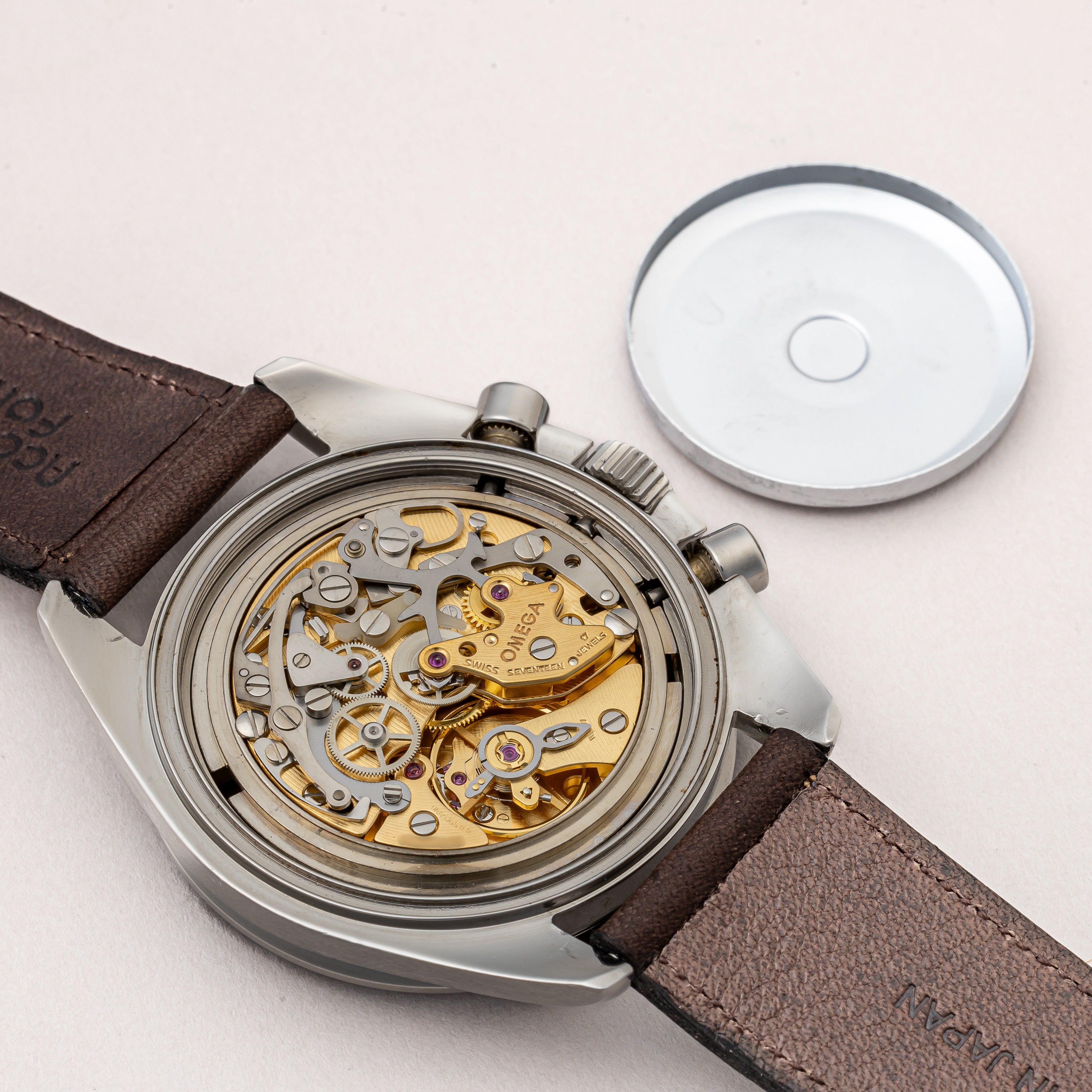- ヴィンテージ時計の特性上、風防・パッキン・リューズ・バネ棒などの消耗部品は後年メンテナンス過程で交換されている場合がございます。オリジナル性を重視しておりますが、必要に応じて適切な部品にて調整されていますので、よりコレクション性重視のお求めのお客様は事前にご確認ください。