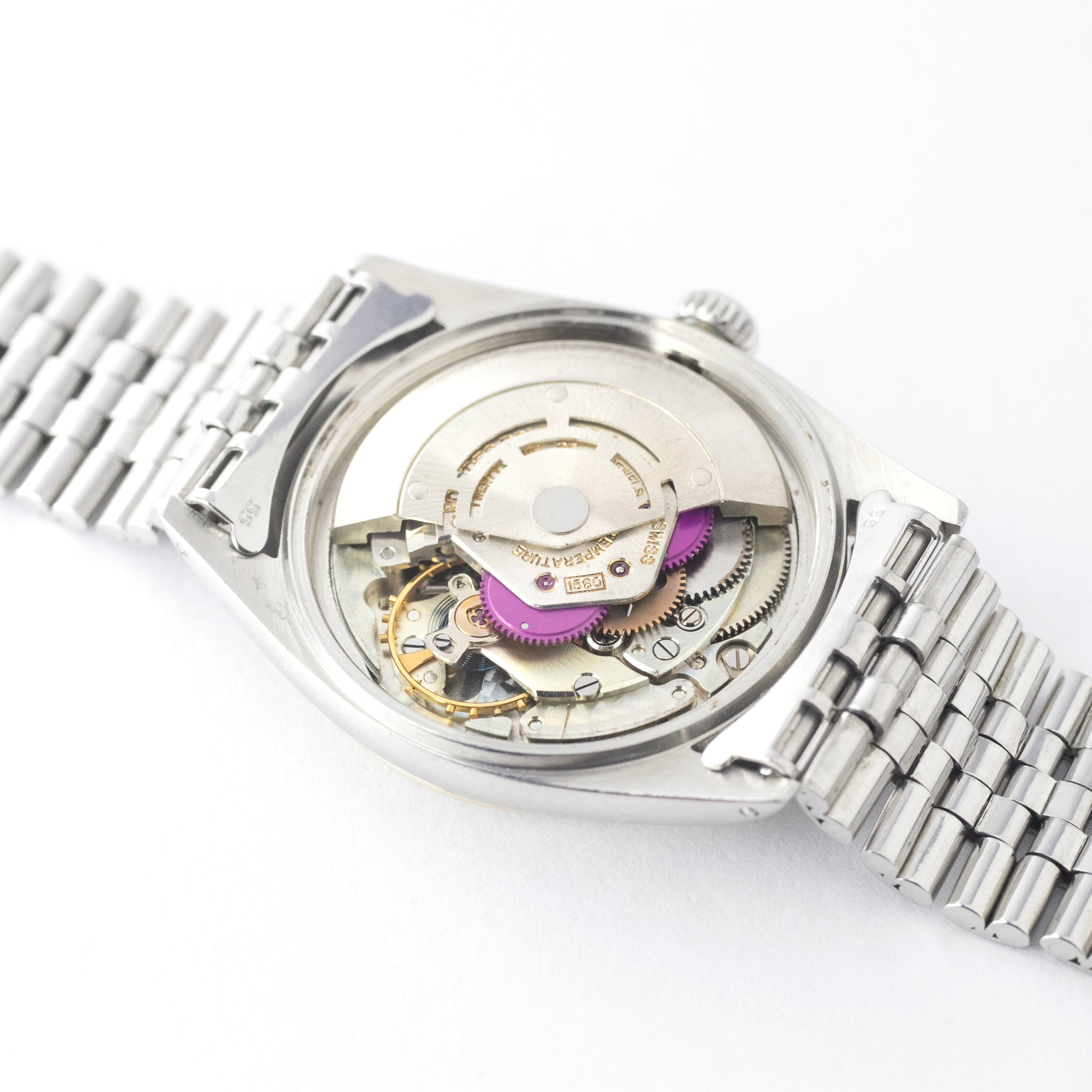 - ヴィンテージ時計の特性上、風防・パッキン・リューズ・バネ棒などの消耗部品は後年メンテナンス過程で交換されている場合がございます。オリジナル性を重視しておりますが、必要に応じて適切な部品にて調整されていますので、よりコレクション性重視のお求めのお客様は事前にご確認ください。