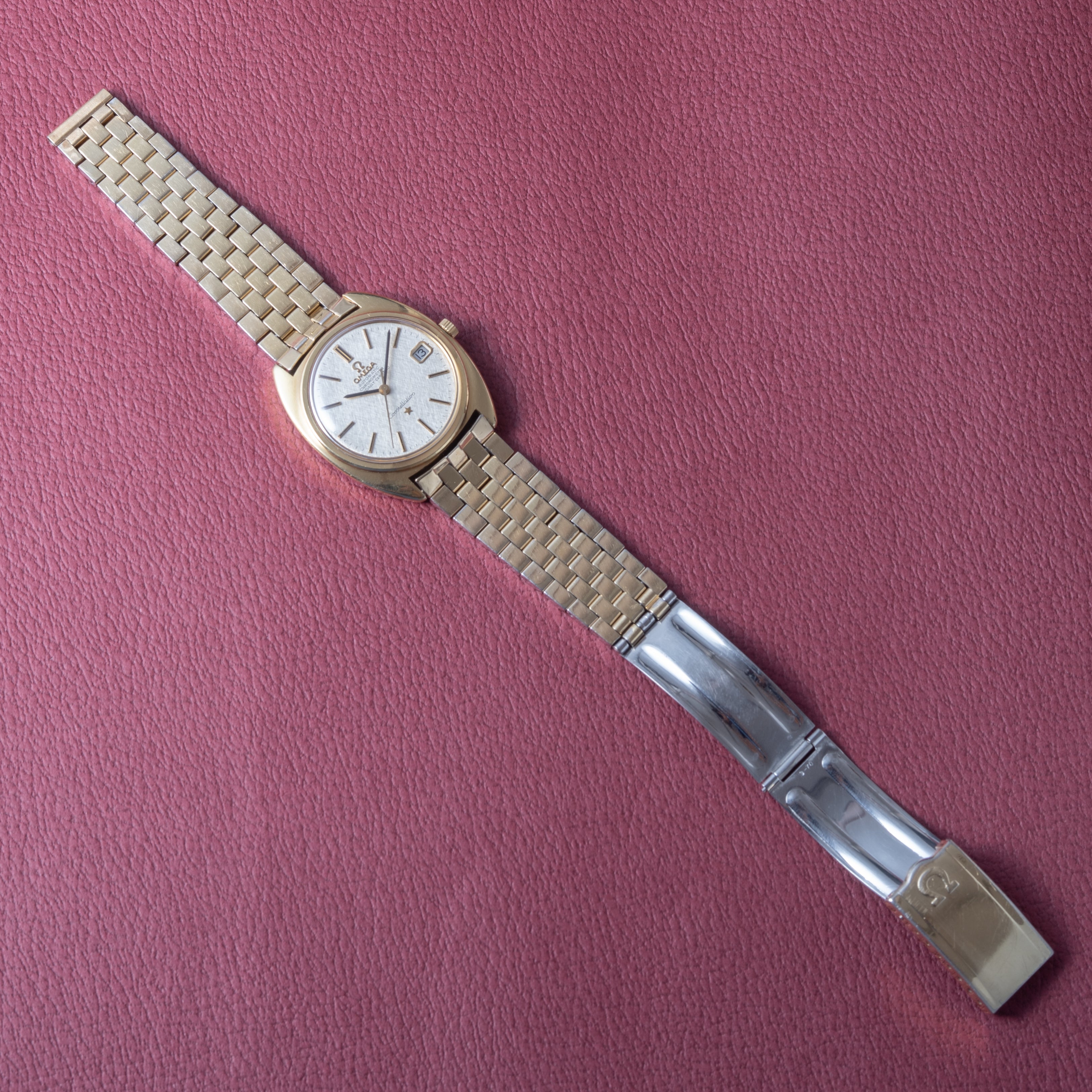 オメガ コンステレーション 金張り 1969年製 リネンダイヤル Ref.168.017SP 純正ブレスレット付き