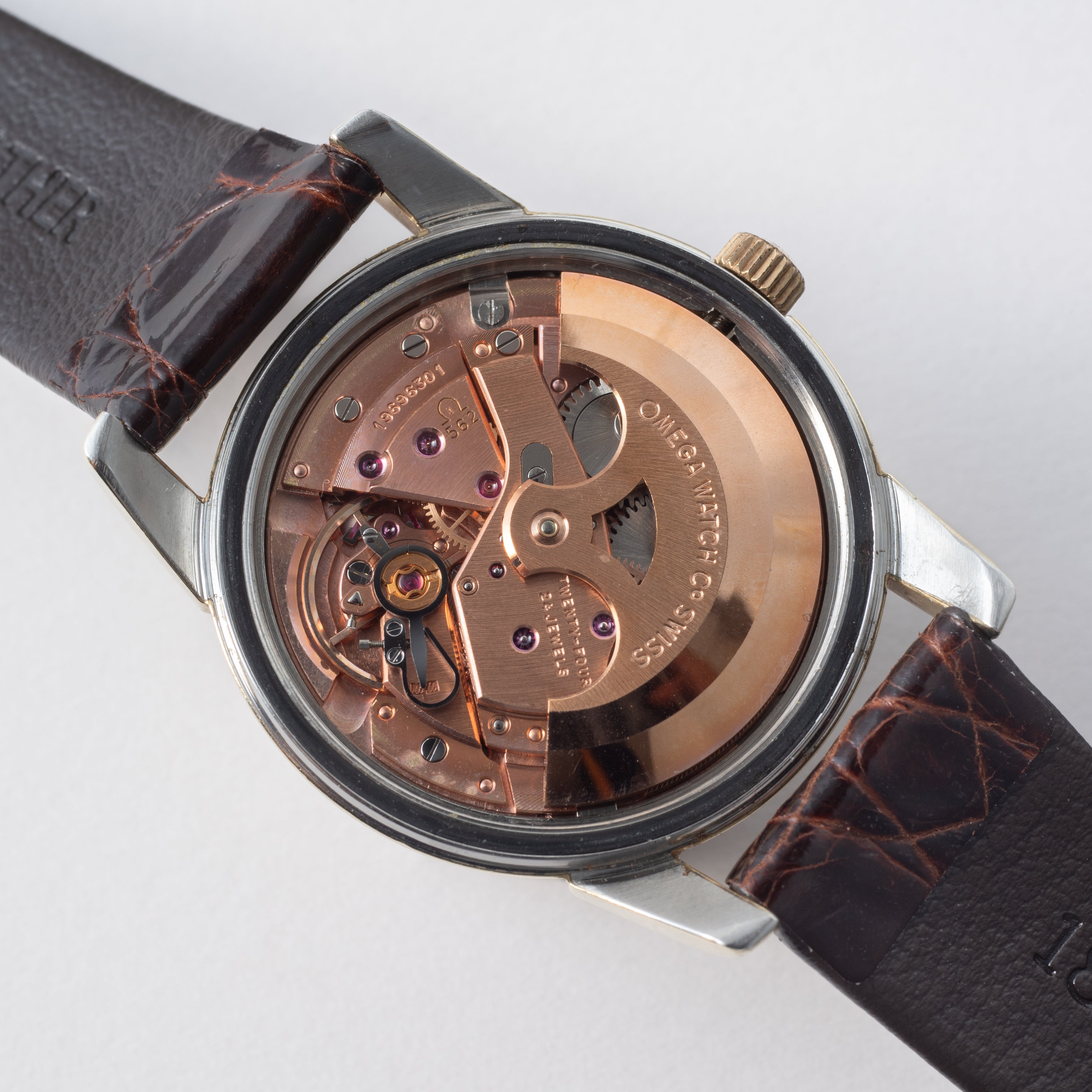 - ヴィンテージ時計の特性上、風防・パッキン・リューズ・バネ棒などの消耗部品は後年メンテナンス過程で交換されている場合がございます。オリジナル性を重視しておりますが、必要に応じて適切な部品にて調整されていますので、よりコレクション性重視のお求めのお客様は事前にご確認ください。