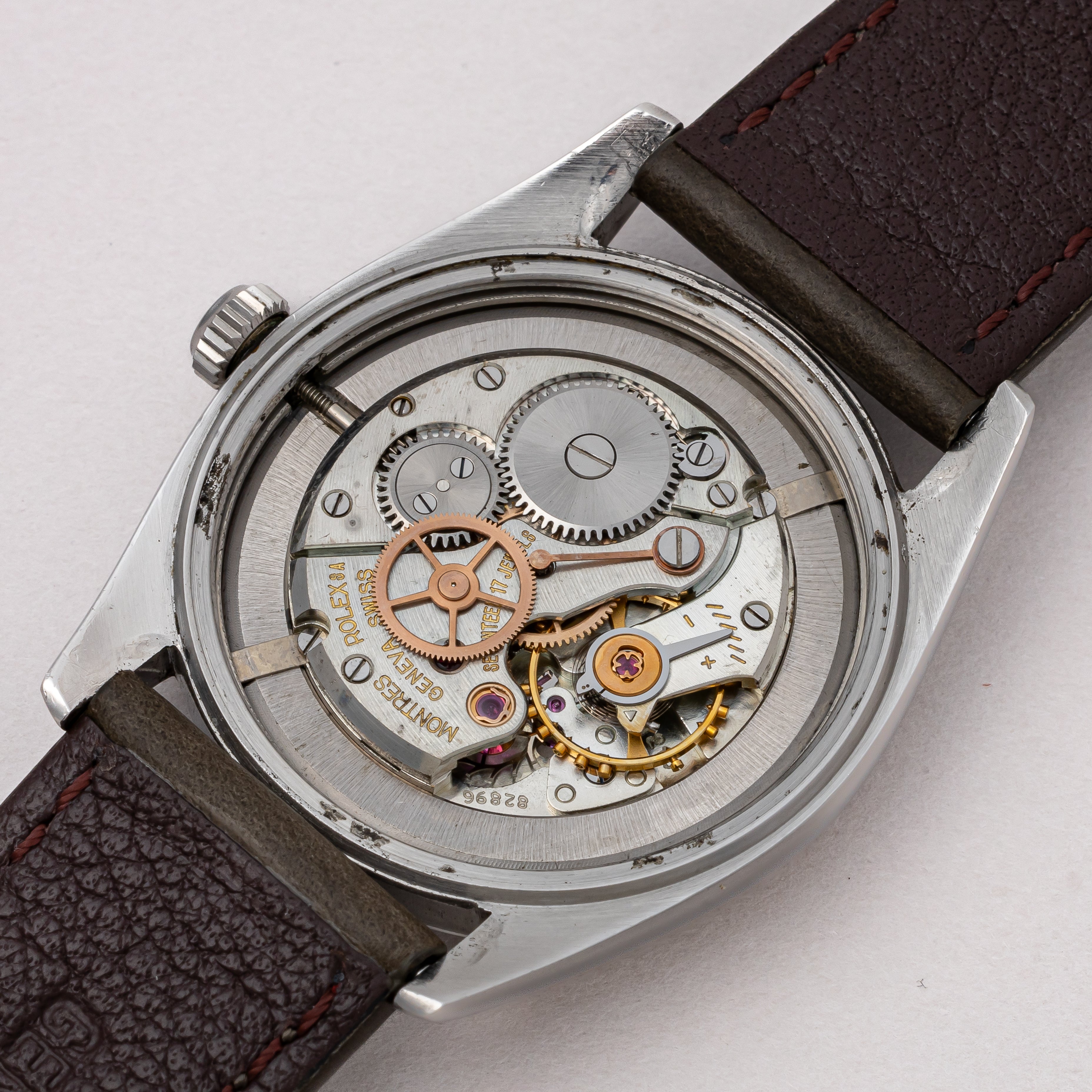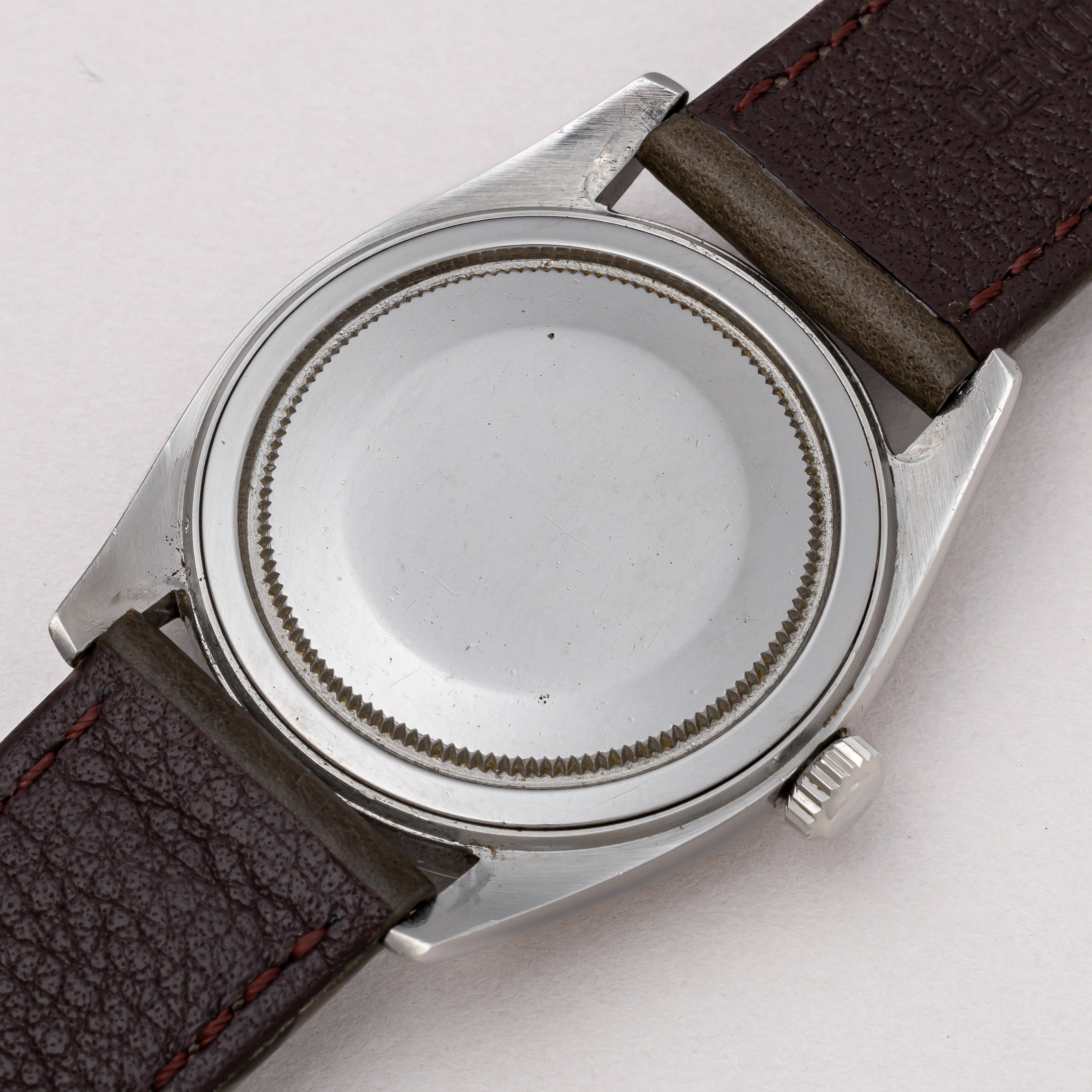 - ヴィンテージ時計の特性上、風防・パッキン・リューズ・バネ棒などの消耗部品は後年メンテナンス過程で交換されている場合がございます。オリジナル性を重視しておりますが、必要に応じて適切な部品にて調整されていますので、よりコレクション性重視のお求めのお客様は事前にご確認ください。