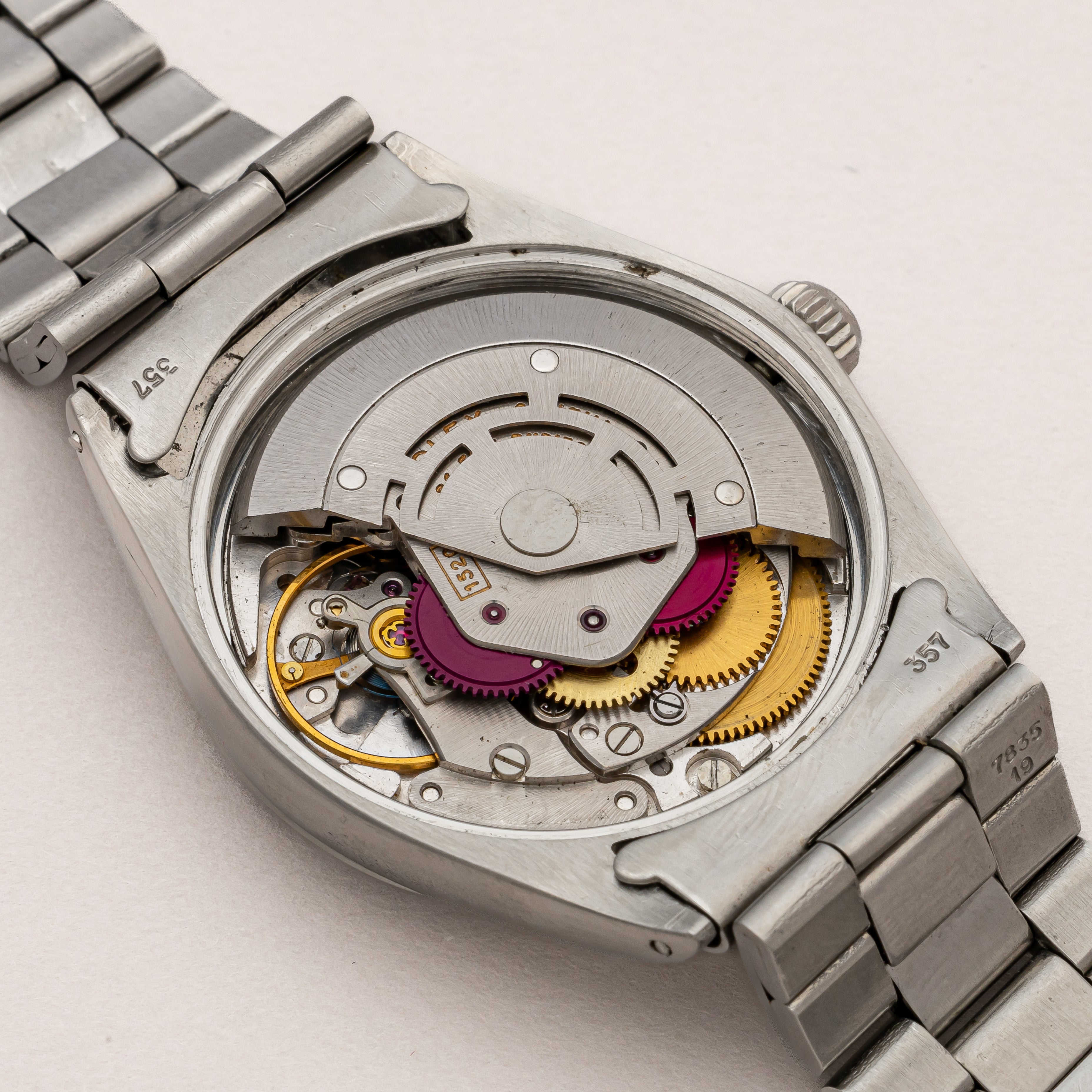 - ヴィンテージ時計の特性上、風防・パッキン・リューズ・バネ棒などの消耗部品は後年メンテナンス過程で交換されている場合がございます。オリジナル性を重視しておりますが、必要に応じて適切な部品にて調整されていますので、よりコレクション性重視のお求めのお客様は事前にご確認ください。