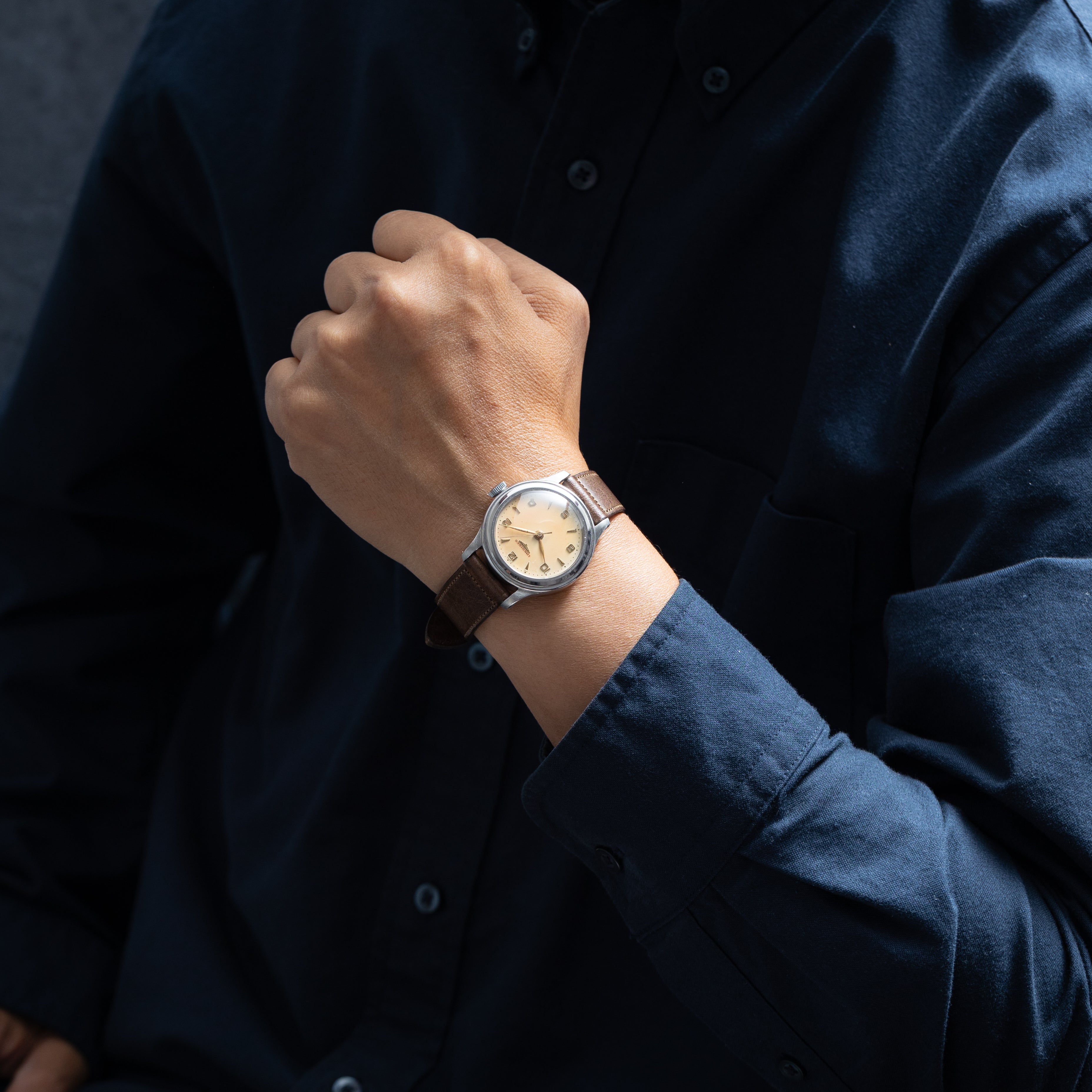 - ヴィンテージ時計の特性上、風防・パッキン・リューズ・バネ棒などの消耗部品は後年メンテナンス過程で交換されている場合がございます。オリジナル性を重視しておりますが、必要に応じて適切な部品にて調整されていますので、よりコレクション性重視のお求めのお客様は事前にご確認ください。