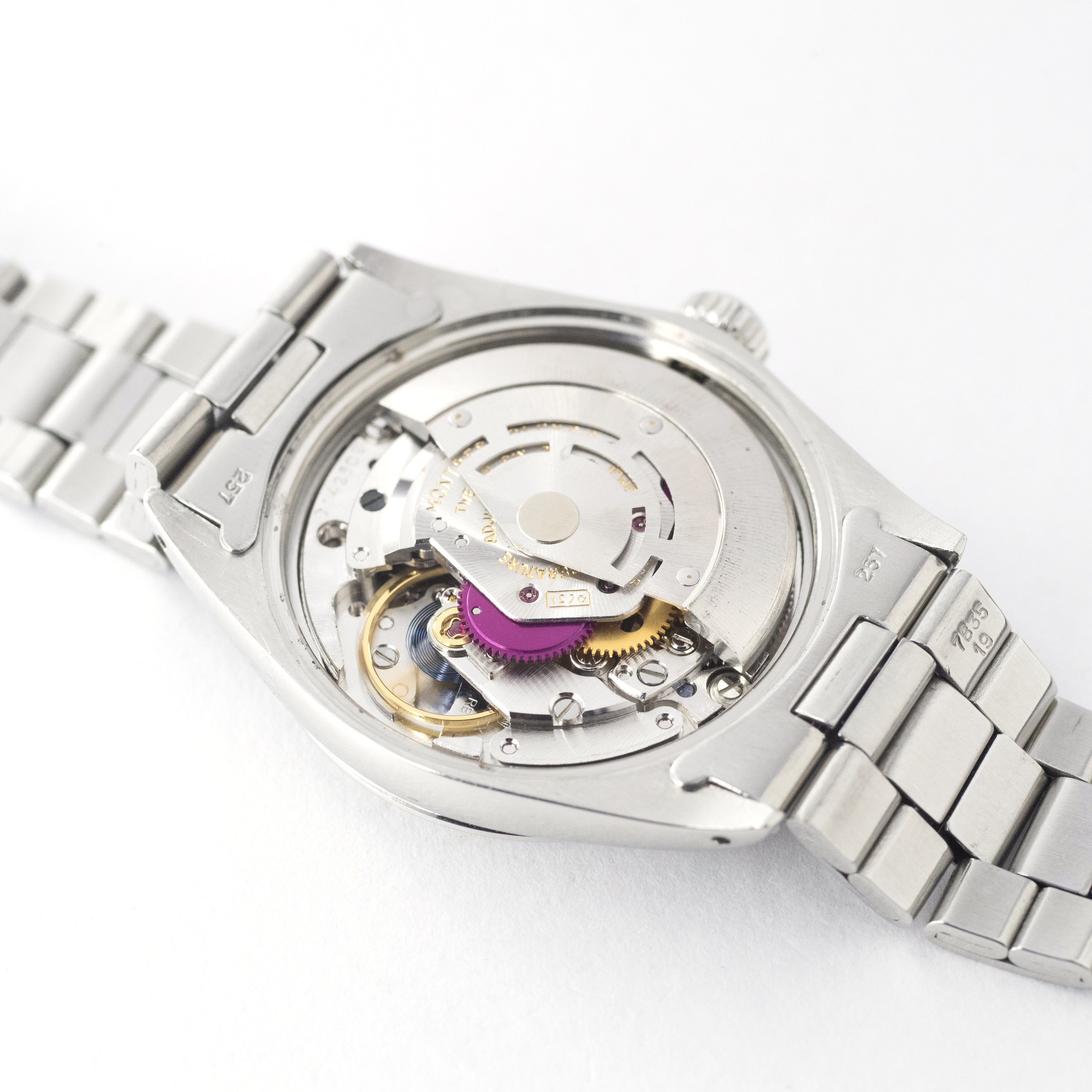 - ヴィンテージ時計の特性上、風防・パッキン・リューズ・バネ棒などの消耗部品は後年メンテナンス過程で交換されている場合がございます。オリジナル性を重視しておりますが、必要に応じて適切な部品にて調整されていますので、よりコレクション性重視のお求めのお客様は事前にご確認ください。