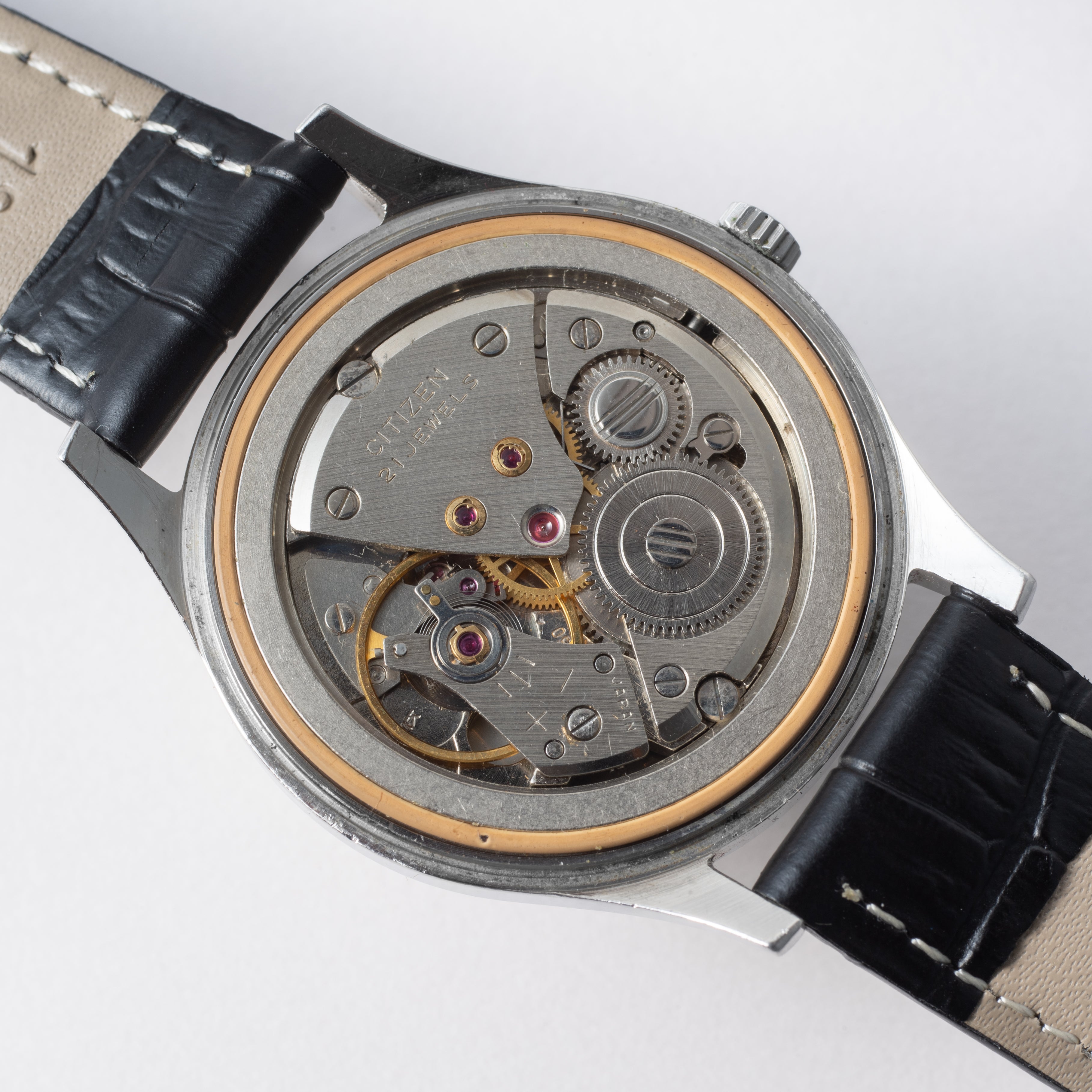 - ヴィンテージ時計の特性上、風防・パッキン・リューズ・バネ棒などの消耗部品は後年メンテナンス過程で交換されている場合がございます。オリジナル性を重視しておりますが、必要に応じて適切な部品にて調整されていますので、よりコレクション性重視のお求めのお客様は事前にご確認ください。