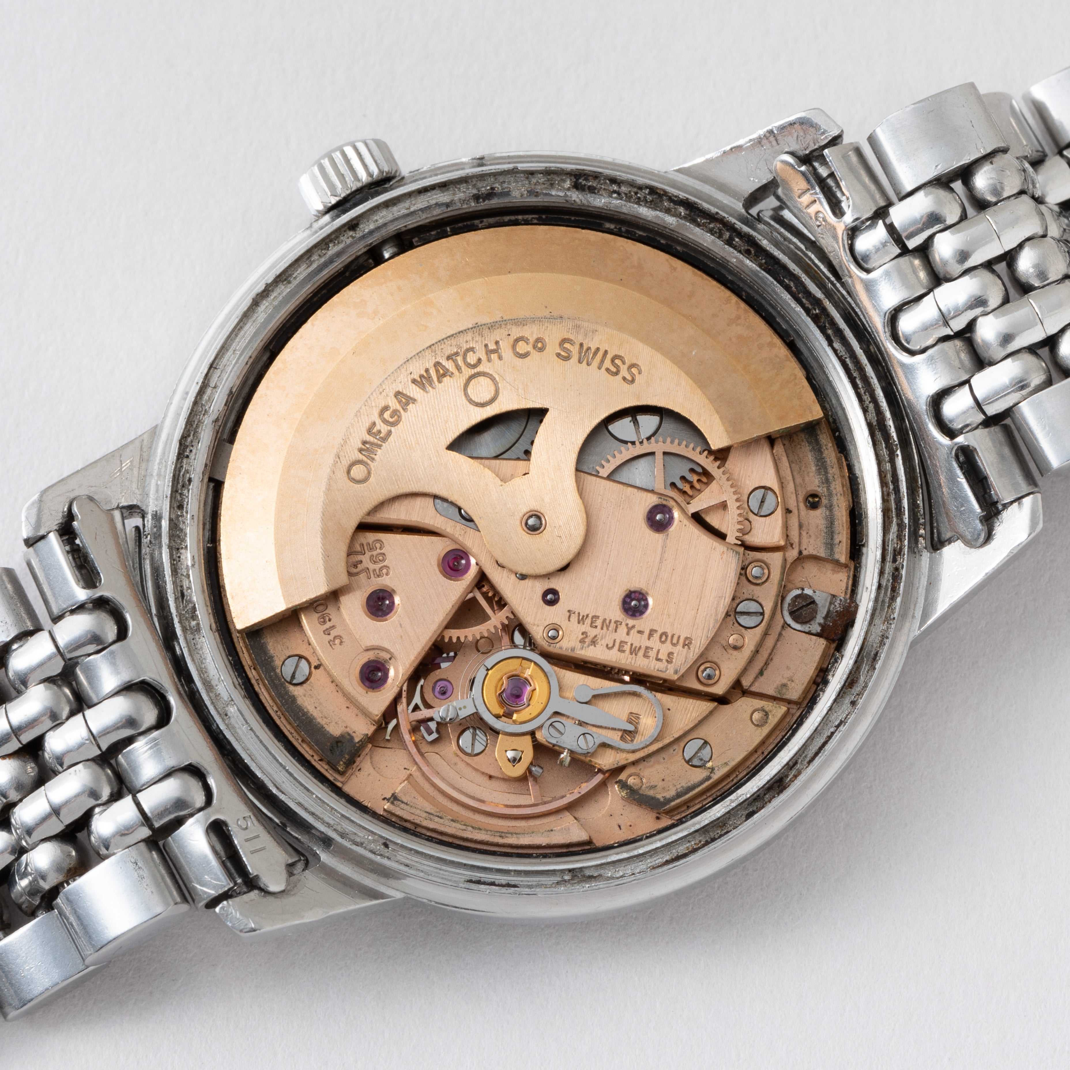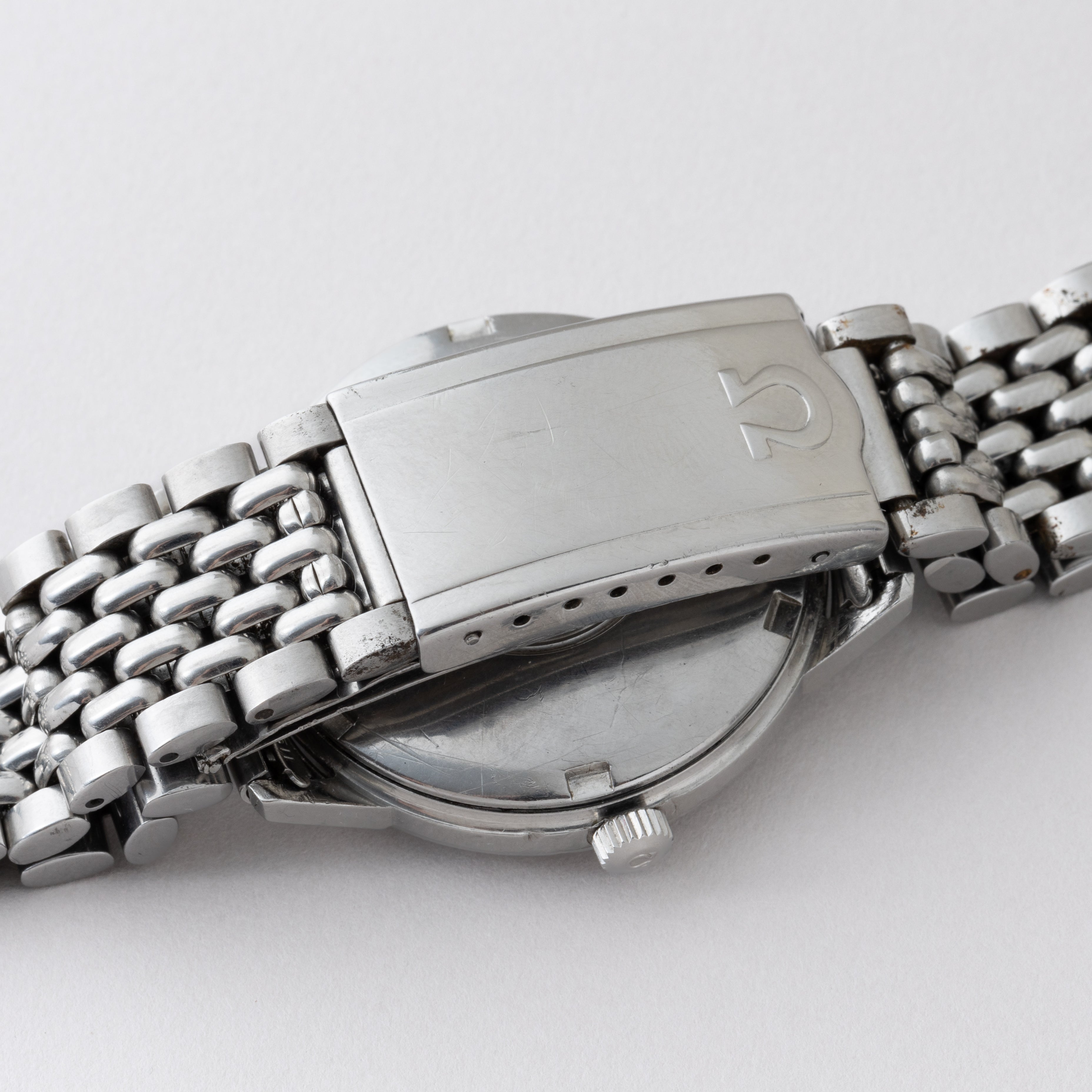 - ヴィンテージ時計の特性上、風防・パッキン・リューズ・バネ棒などの消耗部品は後年メンテナンス過程で交換されている場合がございます。オリジナル性を重視しておりますが、必要に応じて適切な部品にて調整されていますので、よりコレクション性重視のお求めのお客様は事前にご確認ください。