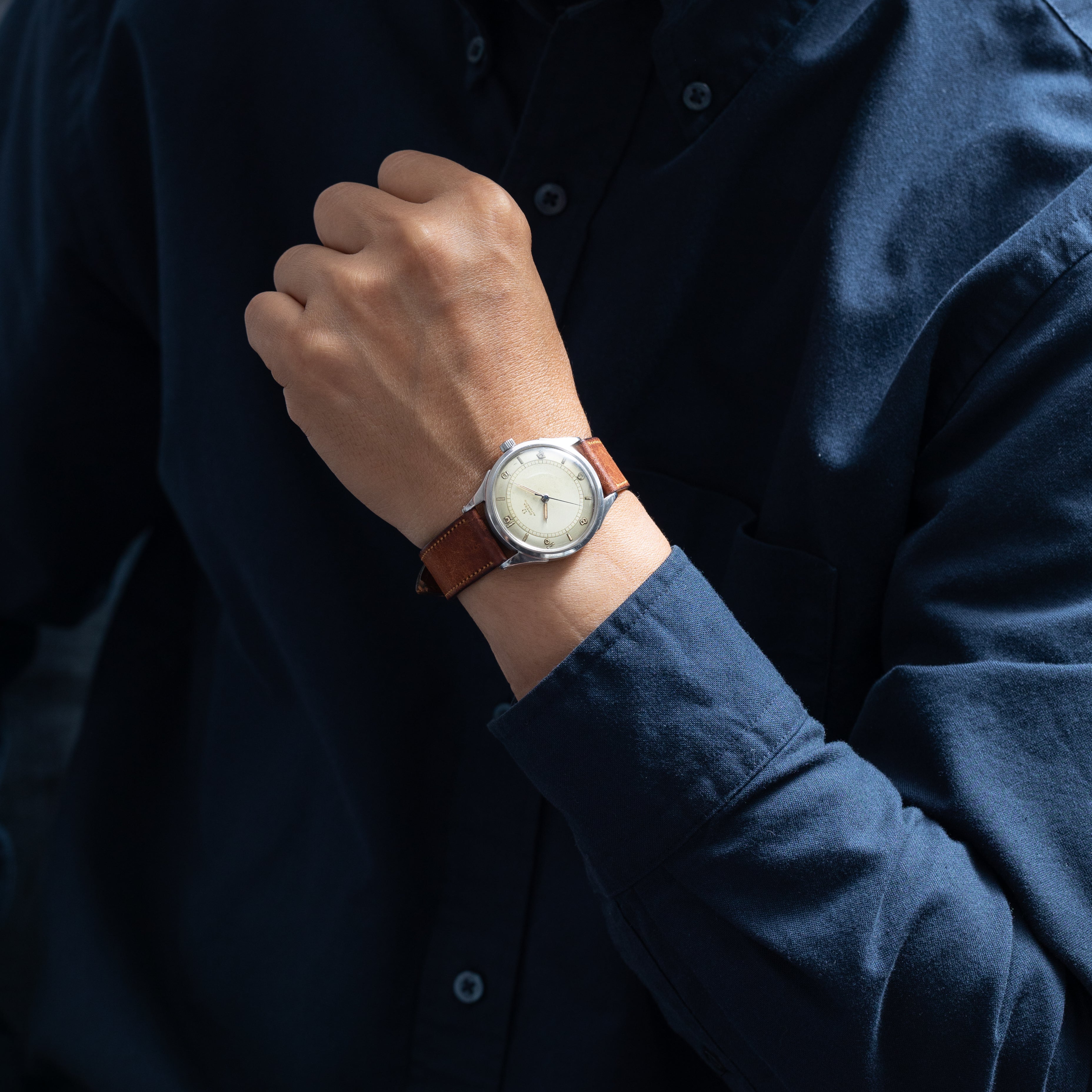 - ヴィンテージ時計の特性上、風防・パッキン・リューズ・バネ棒などの消耗部品は後年メンテナンス過程で交換されている場合がございます。オリジナル性を重視しておりますが、必要に応じて適切な部品にて調整されていますので、よりコレクション性重視のお求めのお客様は事前にご確認ください。
