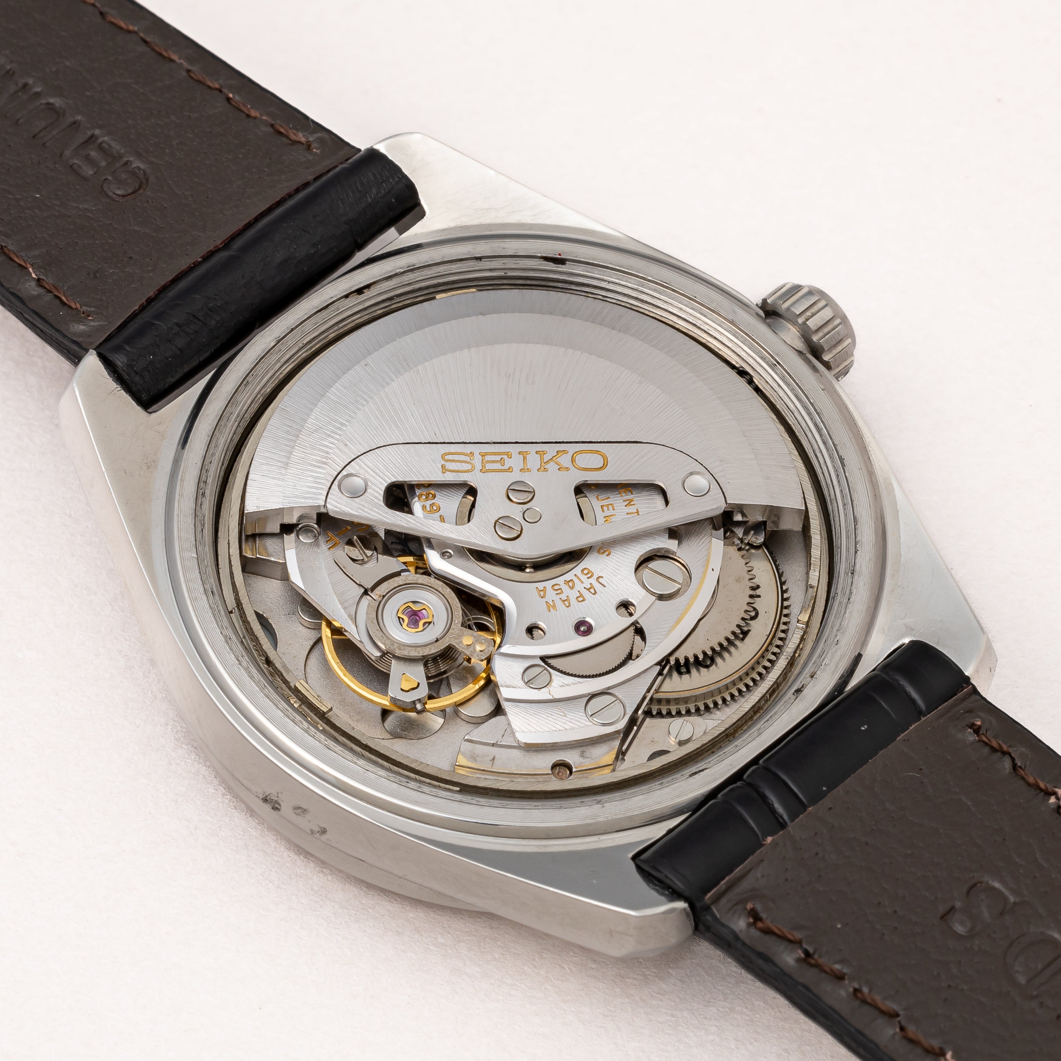 - ヴィンテージ時計の特性上、風防・パッキン・リューズ・バネ棒などの消耗部品は後年メンテナンス過程で交換されている場合がございます。オリジナル性を重視しておりますが、必要に応じて適切な部品にて調整されていますので、よりコレクション性重視のお求めのお客様は事前にご確認ください。