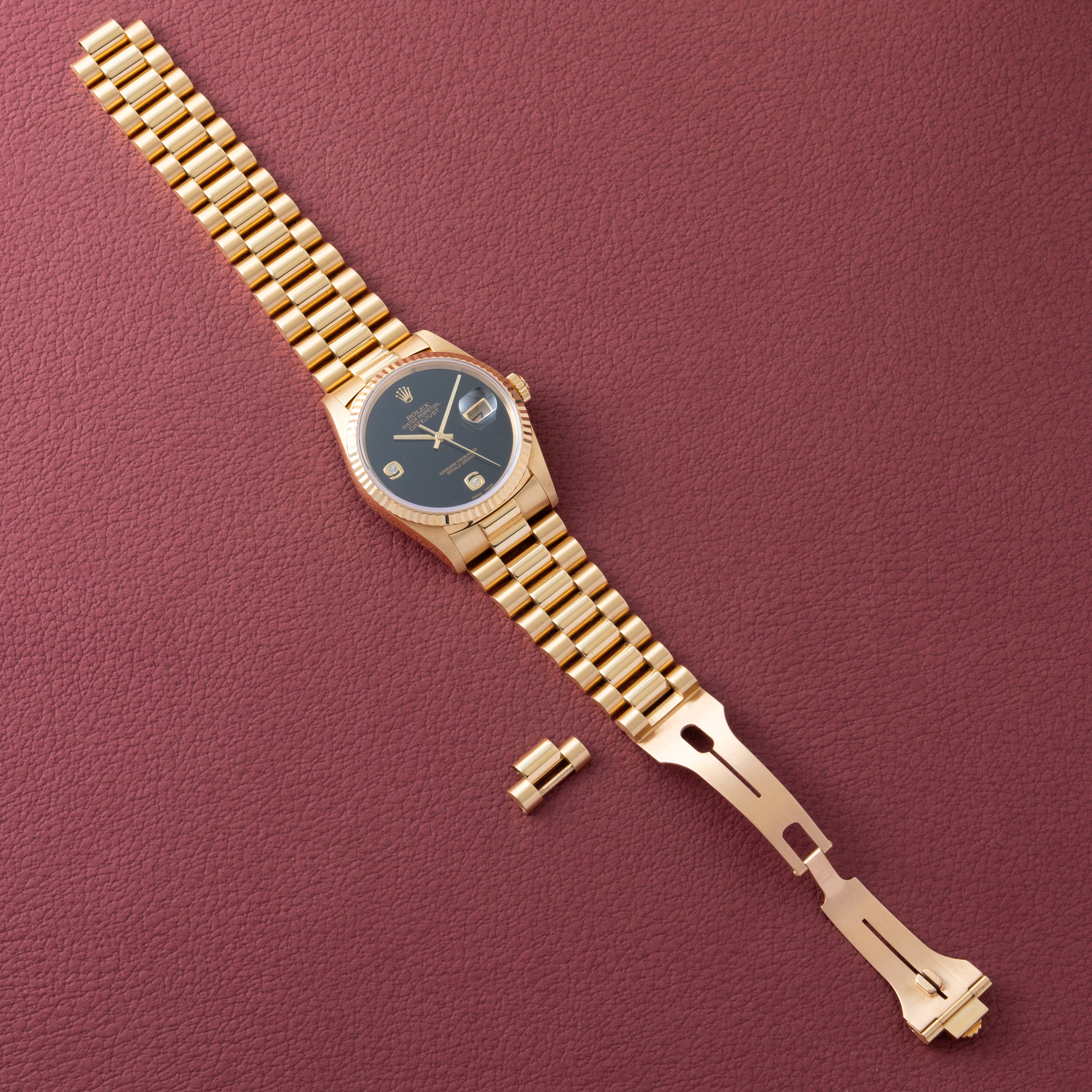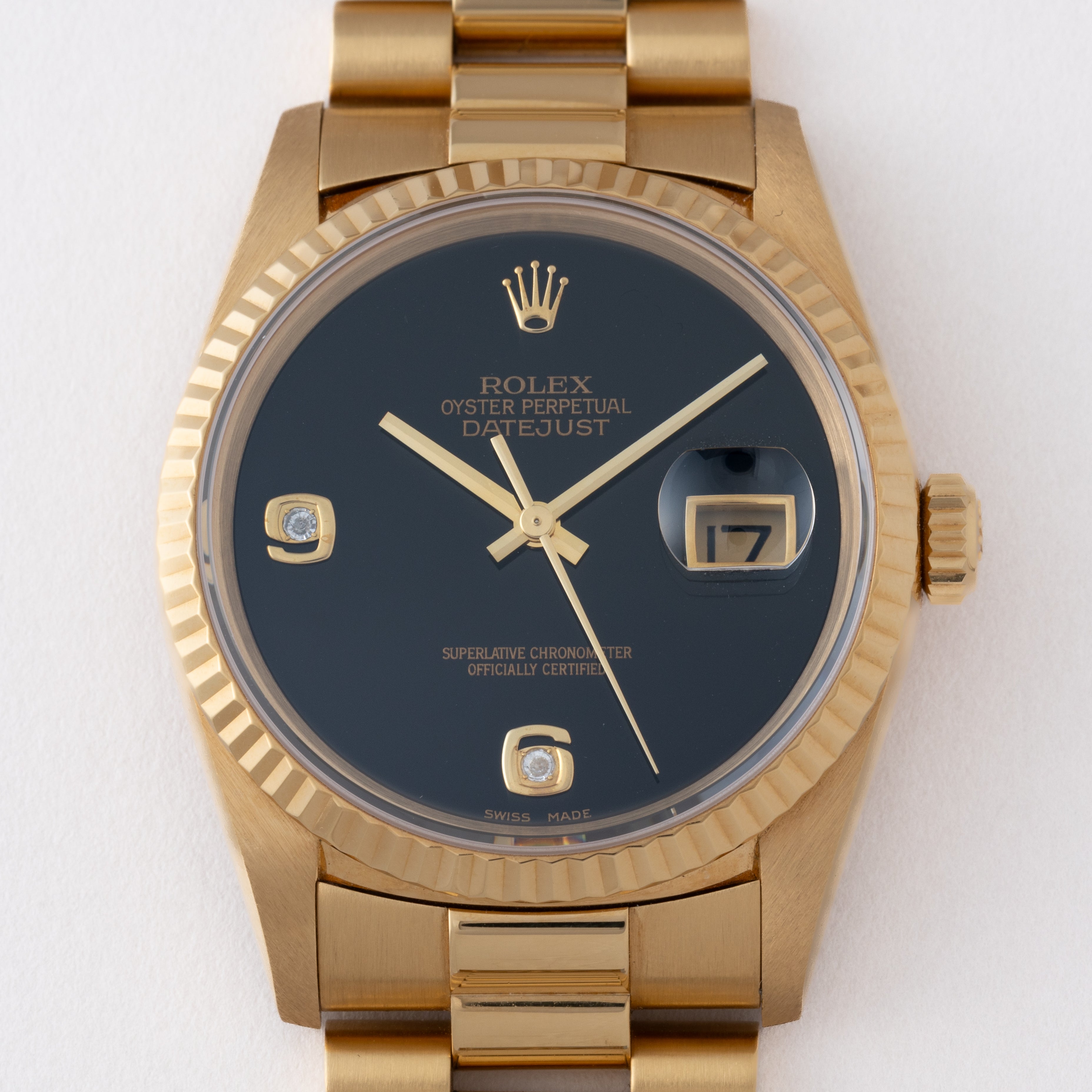 ロレックス デイトジャスト 1996年製 18金無垢 オニキスダイヤルダイヤインデックス Ref.16238 国際サービス保証書、コマ付き