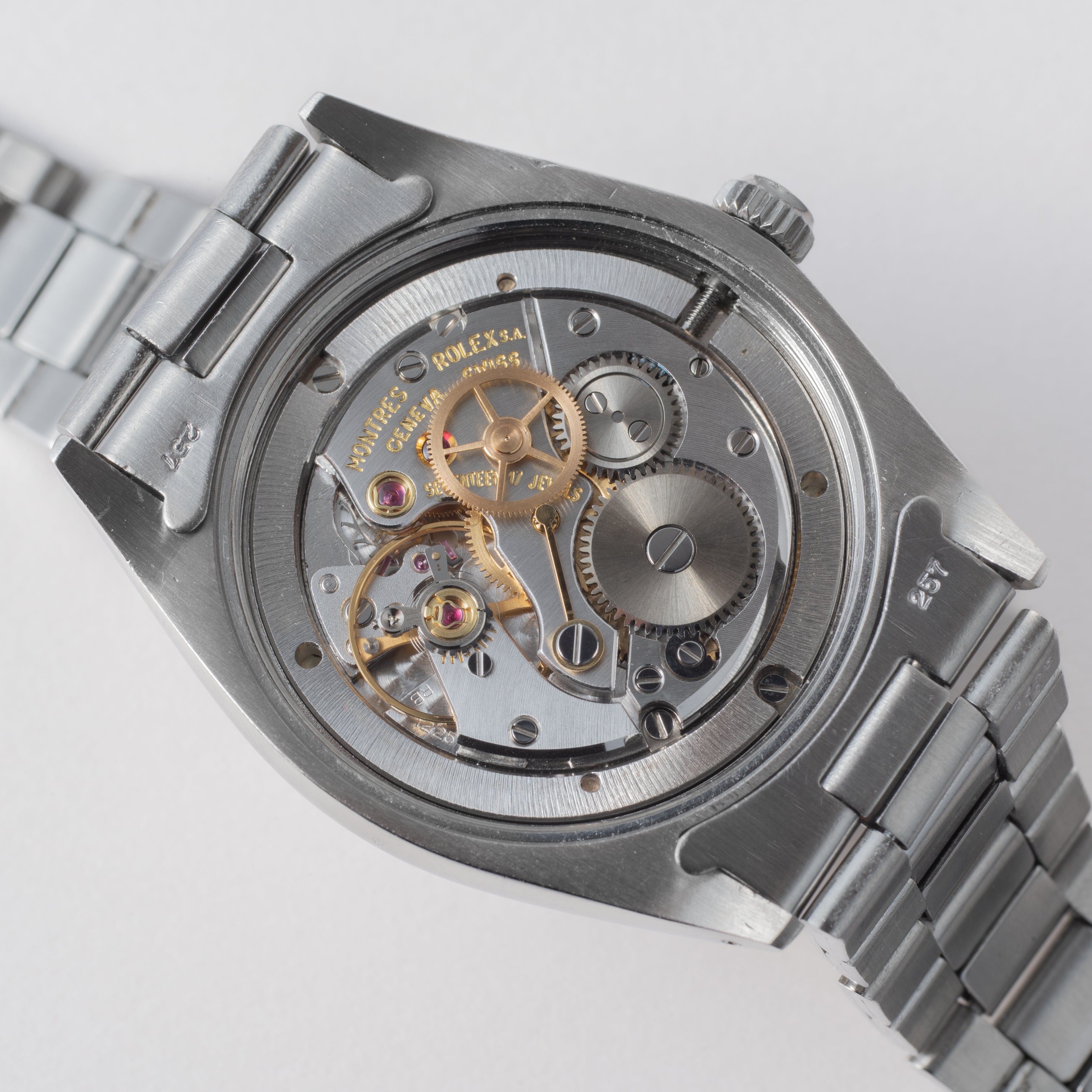 - ヴィンテージ時計の特性上、風防・パッキン・リューズ・バネ棒などの消耗部品は後年メンテナンス過程で交換されている場合がございます。オリジナル性を重視しておりますが、必要に応じて適切な部品にて調整されていますので、よりコレクション性重視のお求めのお客様は事前にご確認ください。