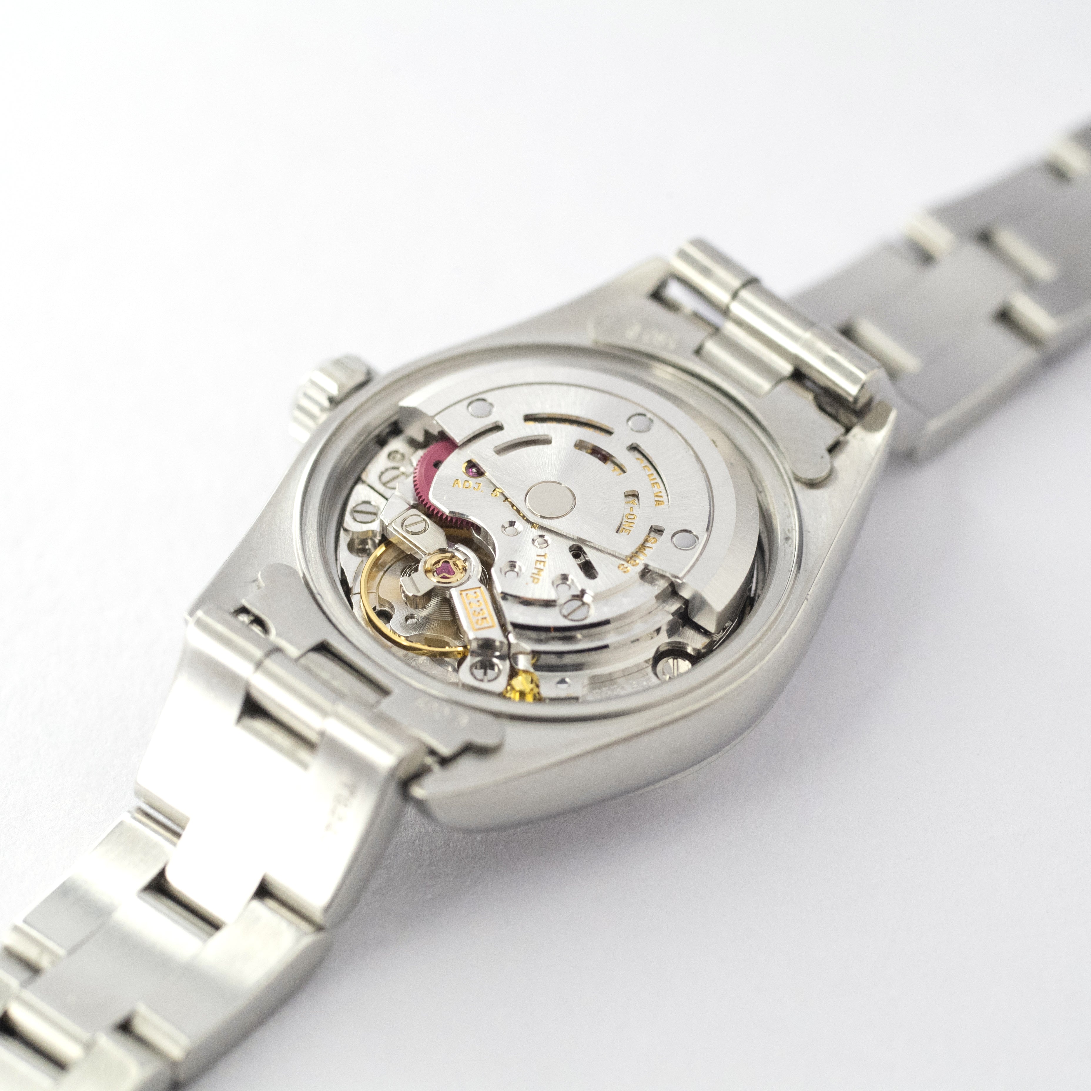 - ヴィンテージ時計の特性上、風防・パッキン・リューズ・バネ棒などの消耗部品は後年メンテナンス過程で交換されている場合がございます。オリジナル性を重視しておりますが、必要に応じて適切な部品にて調整されていますので、よりコレクション性重視のお求めのお客様は事前にご確認ください。
