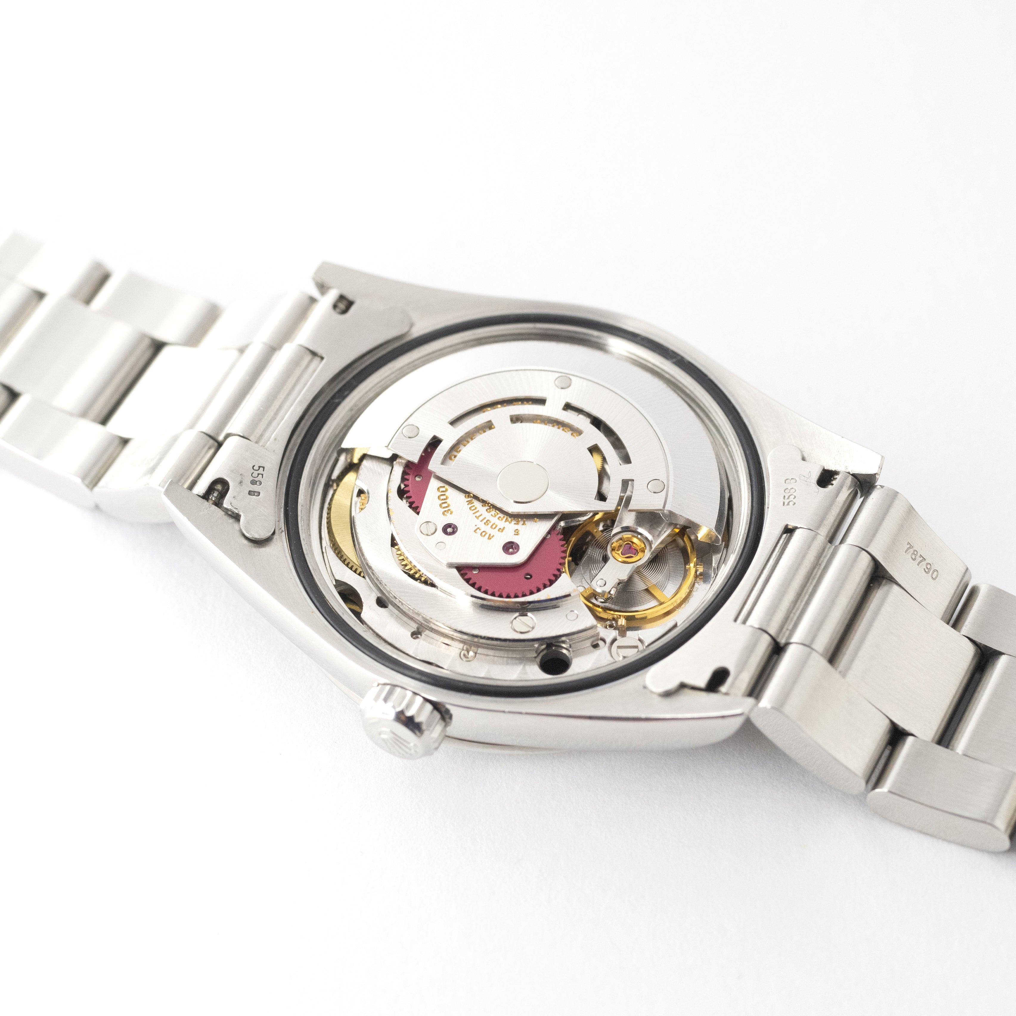 - ヴィンテージ時計の特性上、風防・パッキン・リューズ・バネ棒などの消耗部品は後年メンテナンス過程で交換されている場合がございます。オリジナル性を重視しておりますが、必要に応じて適切な部品にて調整されていますので、よりコレクション性重視のお求めのお客様は事前にご確認ください。