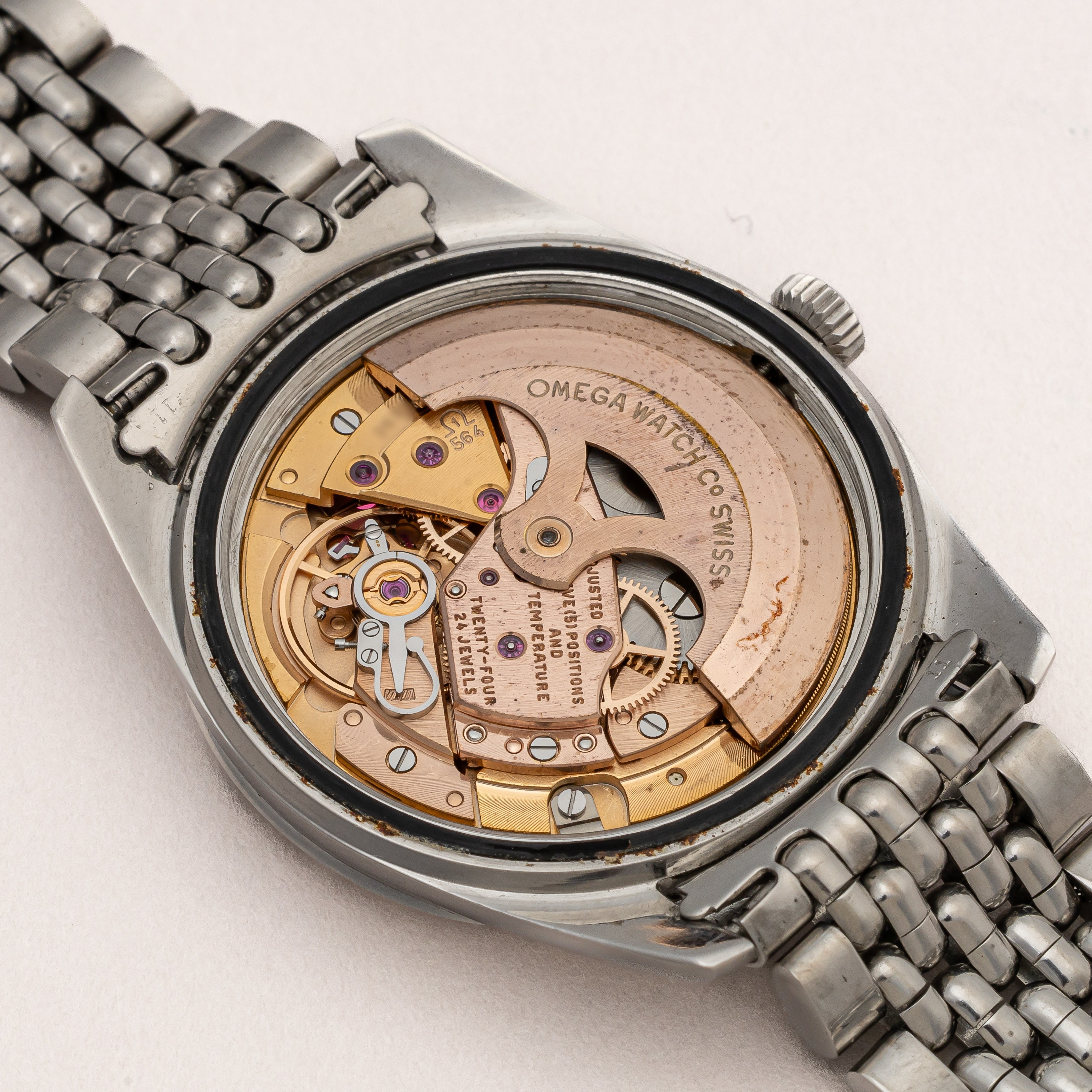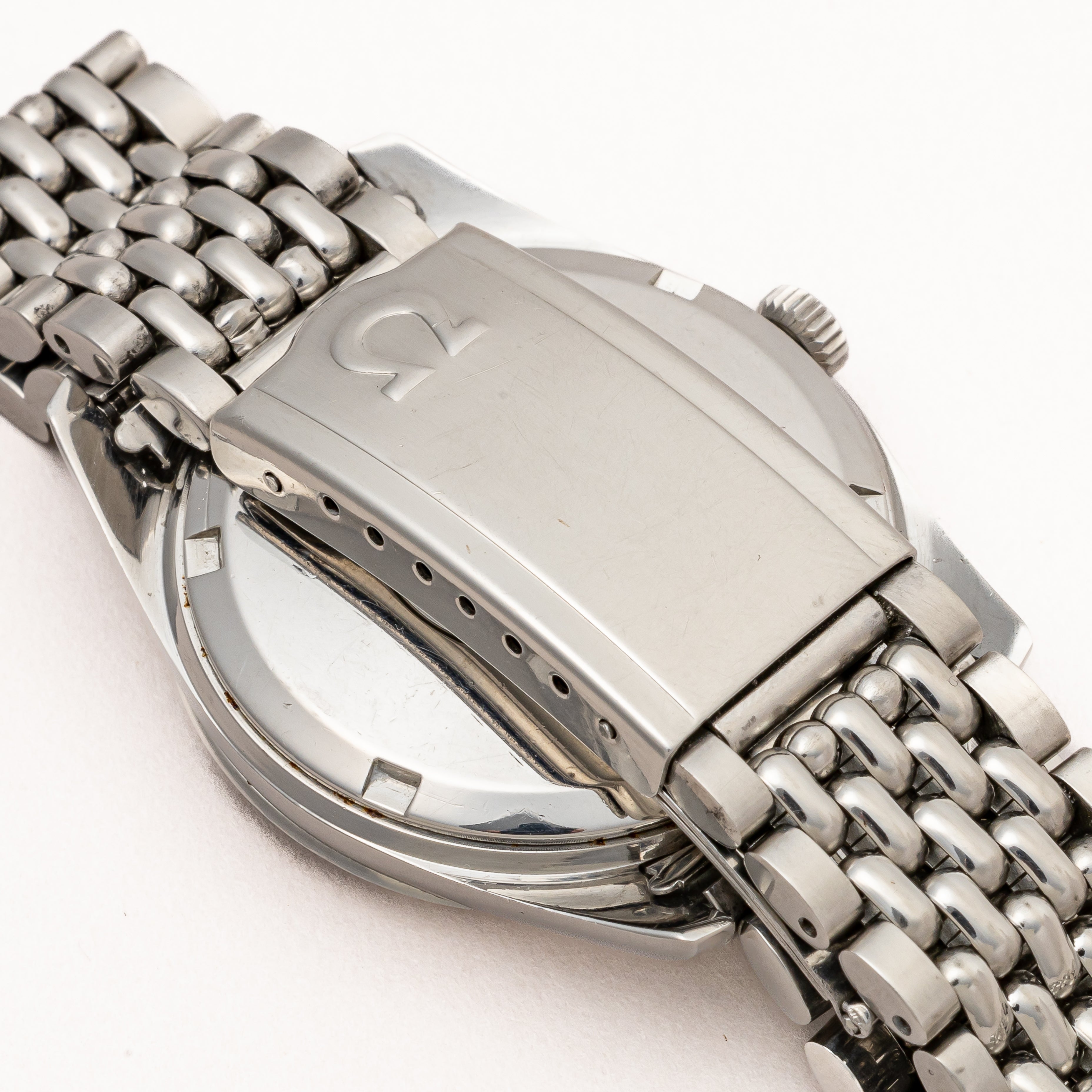 - ヴィンテージ時計の特性上、風防・パッキン・リューズ・バネ棒などの消耗部品は後年メンテナンス過程で交換されている場合がございます。オリジナル性を重視しておりますが、必要に応じて適切な部品にて調整されていますので、よりコレクション性重視のお求めのお客様は事前にご確認ください。