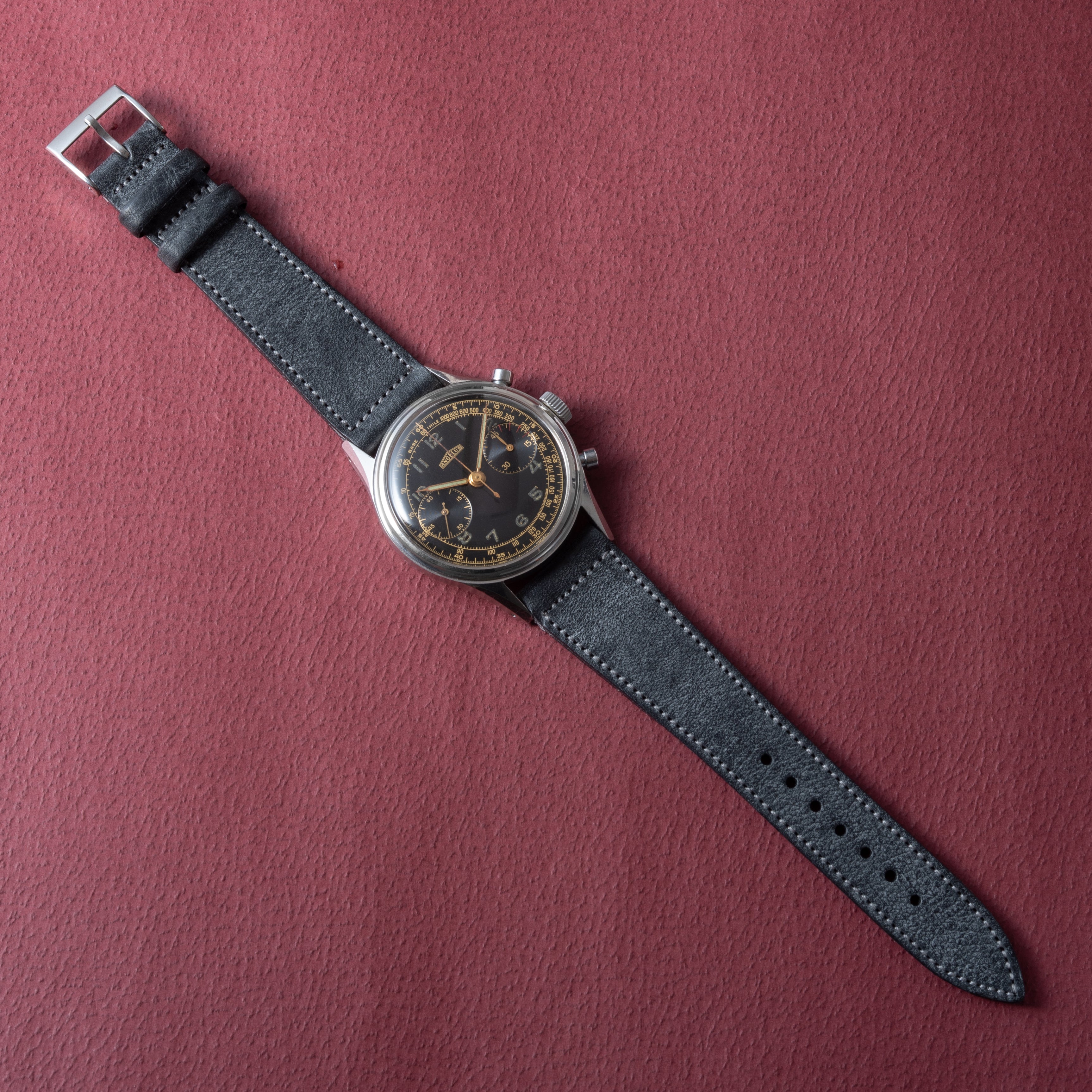 - ヴィンテージ時計の特性上、風防・パッキン・リューズ・バネ棒などの消耗部品は後年メンテナンス過程で交換されている場合がございます。オリジナル性を重視しておりますが、必要に応じて適切な部品にて調整されていますので、よりコレクション性重視のお求めのお客様は事前にご確認ください。