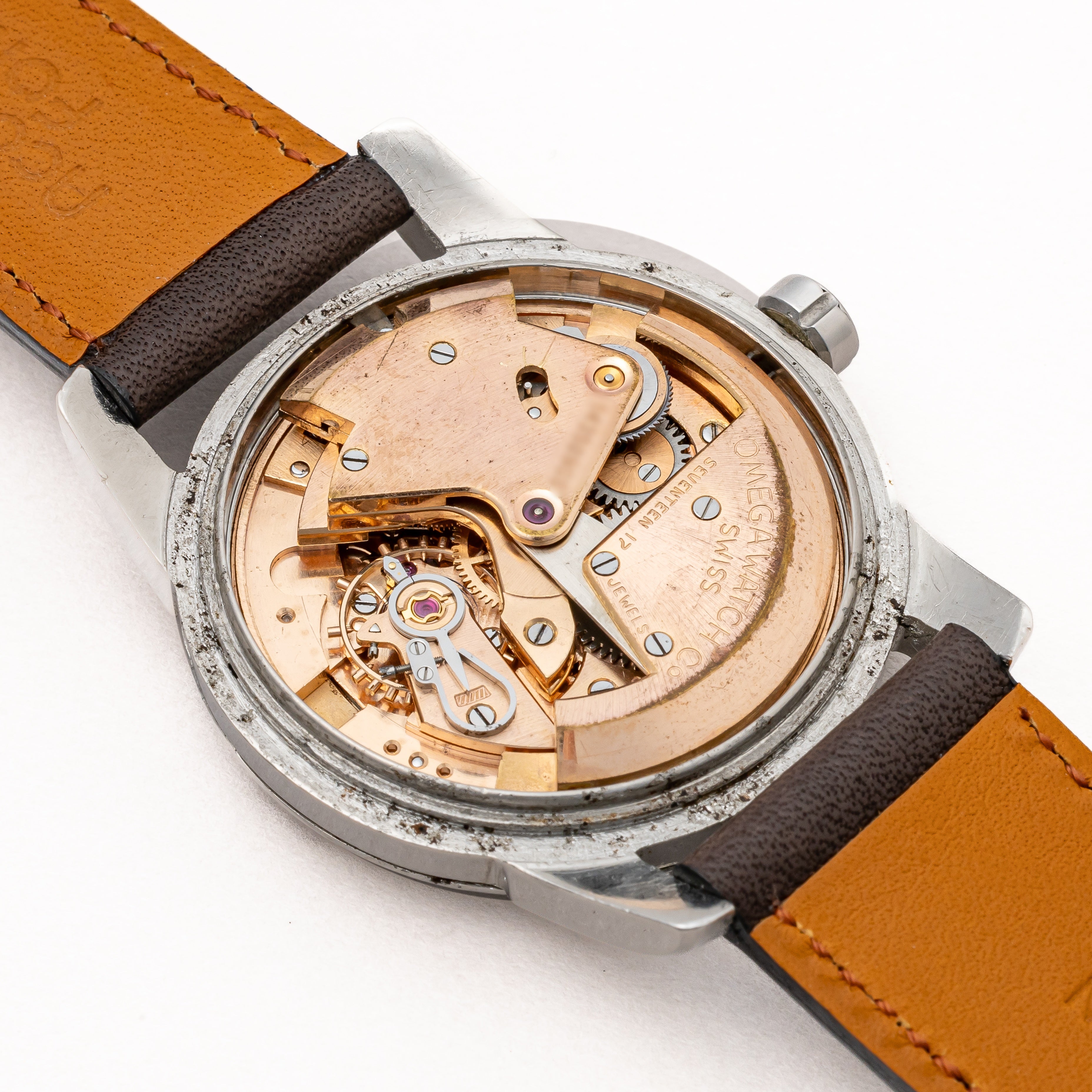 - ヴィンテージ時計の特性上、風防・パッキン・リューズ・バネ棒などの消耗部品は後年メンテナンス過程で交換されている場合がございます。オリジナル性を重視しておりますが、必要に応じて適切な部品にて調整されていますので、よりコレクション性重視のお求めのお客様は事前にご確認ください。
