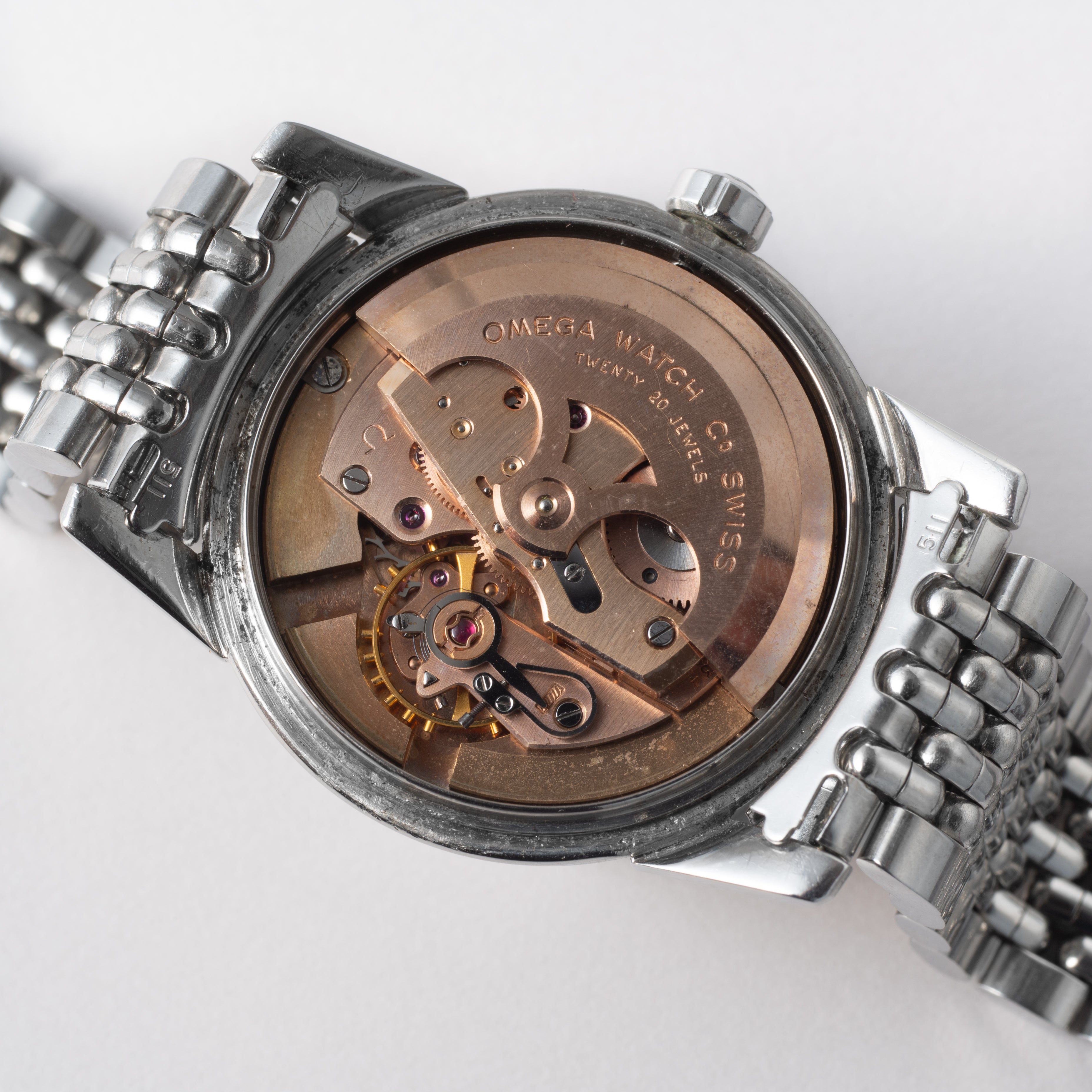 - ヴィンテージ時計の特性上、風防・パッキン・リューズ・バネ棒などの消耗部品は後年メンテナンス過程で交換されている場合がございます。オリジナル性を重視しておりますが、必要に応じて適切な部品にて調整されていますので、よりコレクション性重視のお求めのお客様は事前にご確認ください。