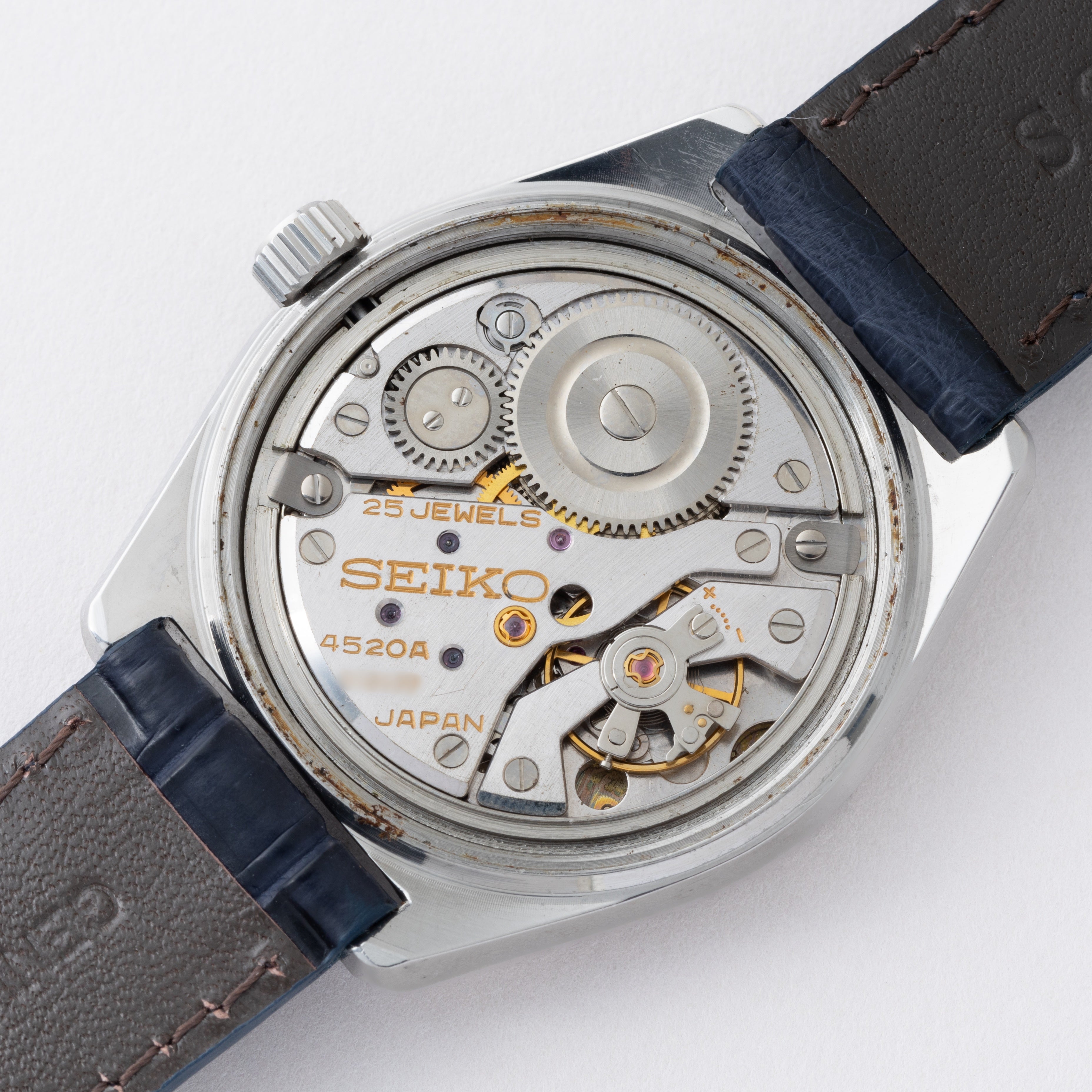 - ヴィンテージ時計の特性上、風防・パッキン・リューズ・バネ棒などの消耗部品は後年メンテナンス過程で交換されている場合がございます。オリジナル性を重視しておりますが、必要に応じて適切な部品にて調整されていますので、よりコレクション性重視のお求めのお客様は事前にご確認ください。