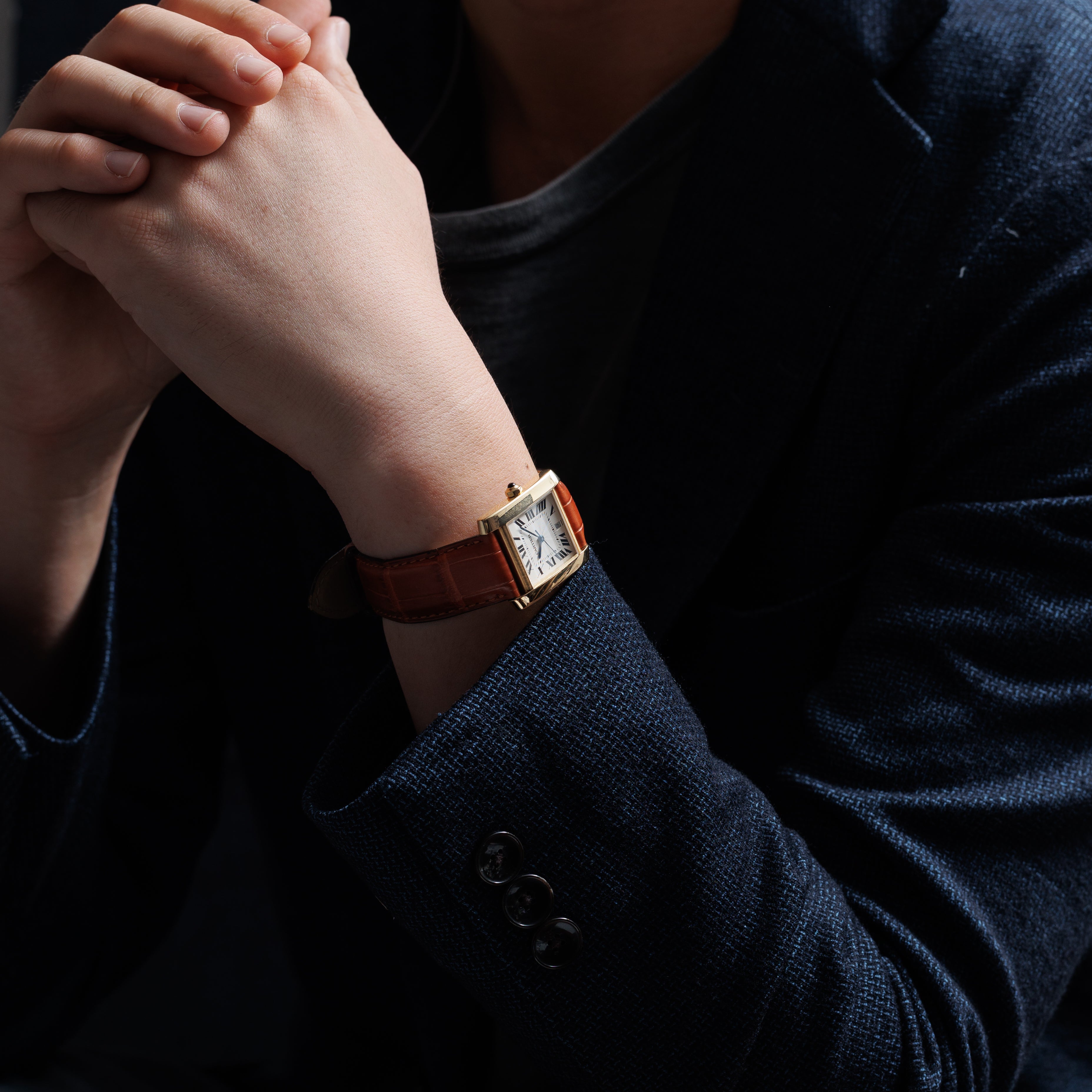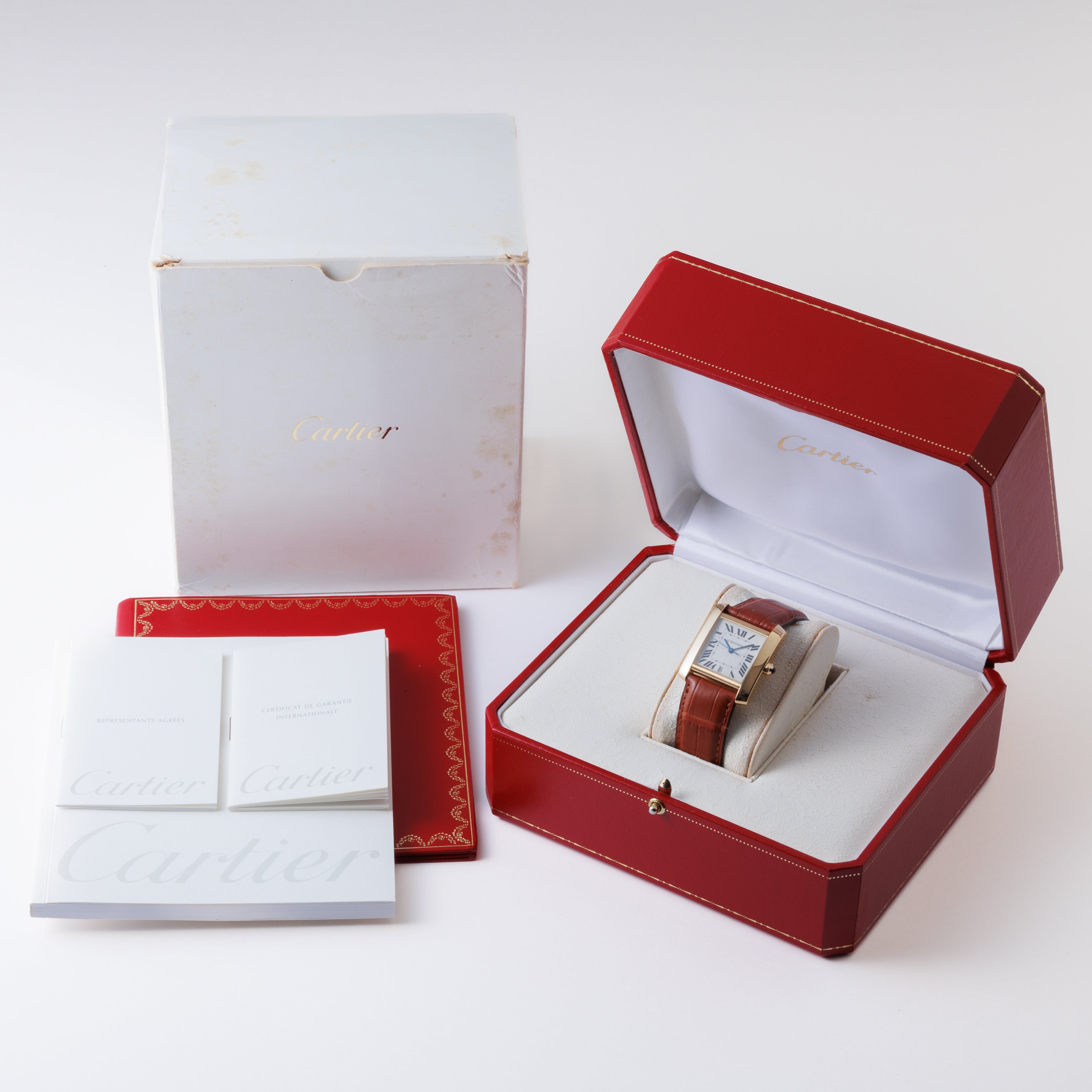 カルティエ タンク フランセーズ 1990年代製 Ref.1840 LMサイズ 18金イエローゴールド ギョーシェダイヤル 箱、ギャラ付き