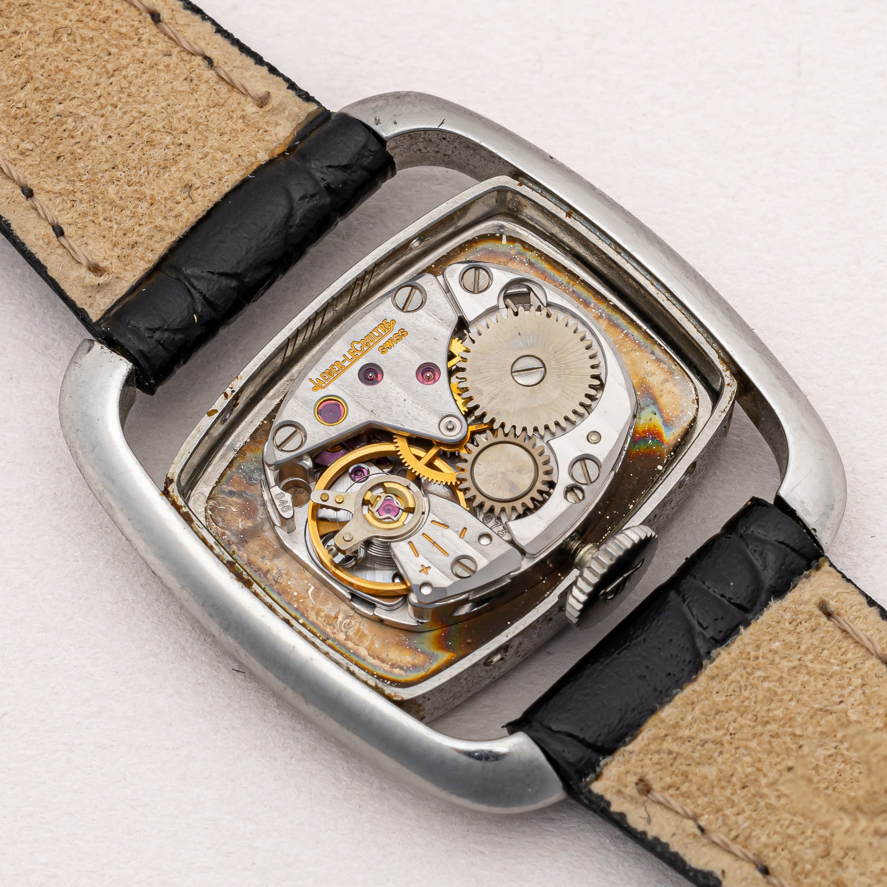 - ヴィンテージ時計の特性上、風防・パッキン・リューズ・バネ棒などの消耗部品は後年メンテナンス過程で交換されている場合がございます。オリジナル性を重視しておりますが、必要に応じて適切な部品にて調整されていますので、よりコレクション性重視のお求めのお客様は事前にご確認ください。