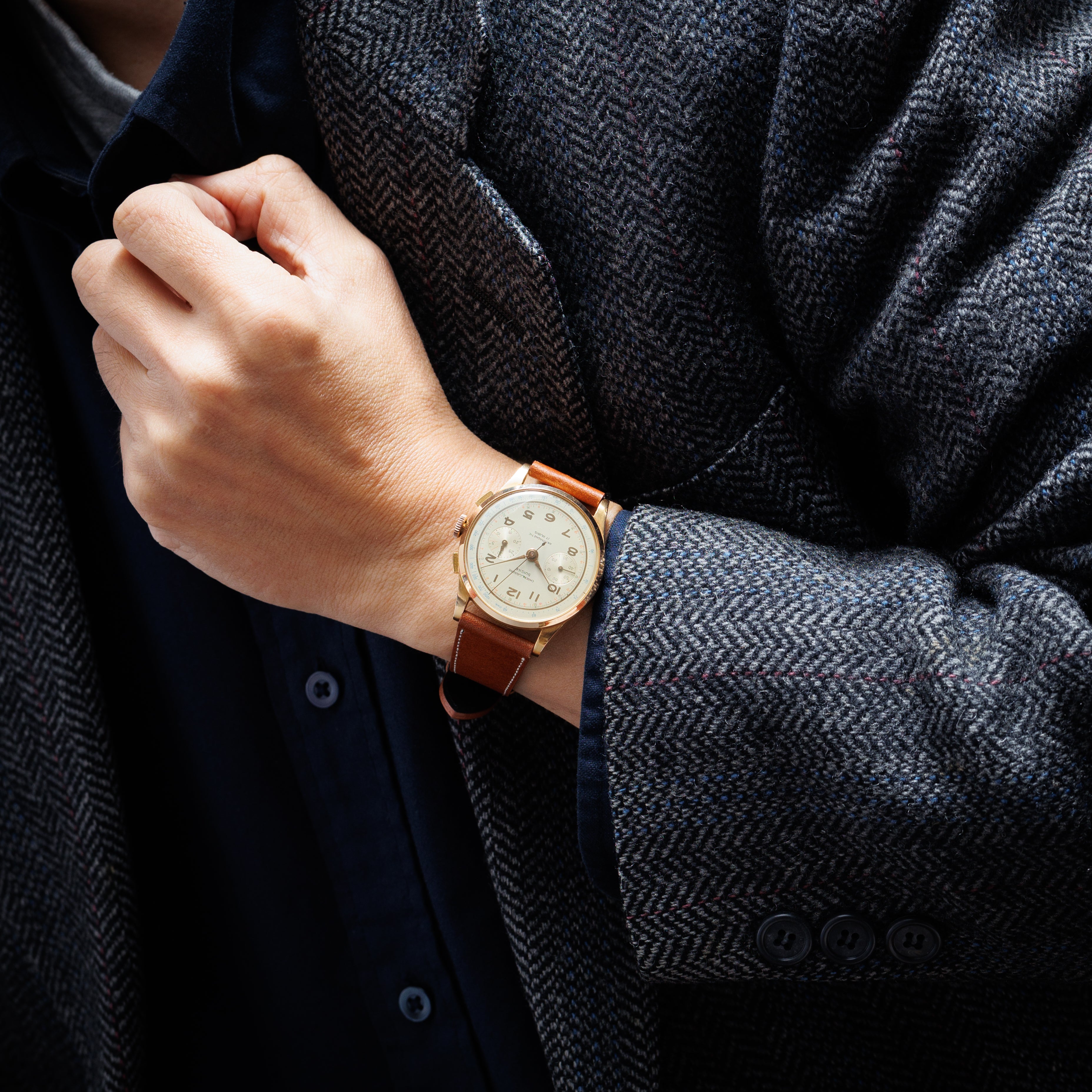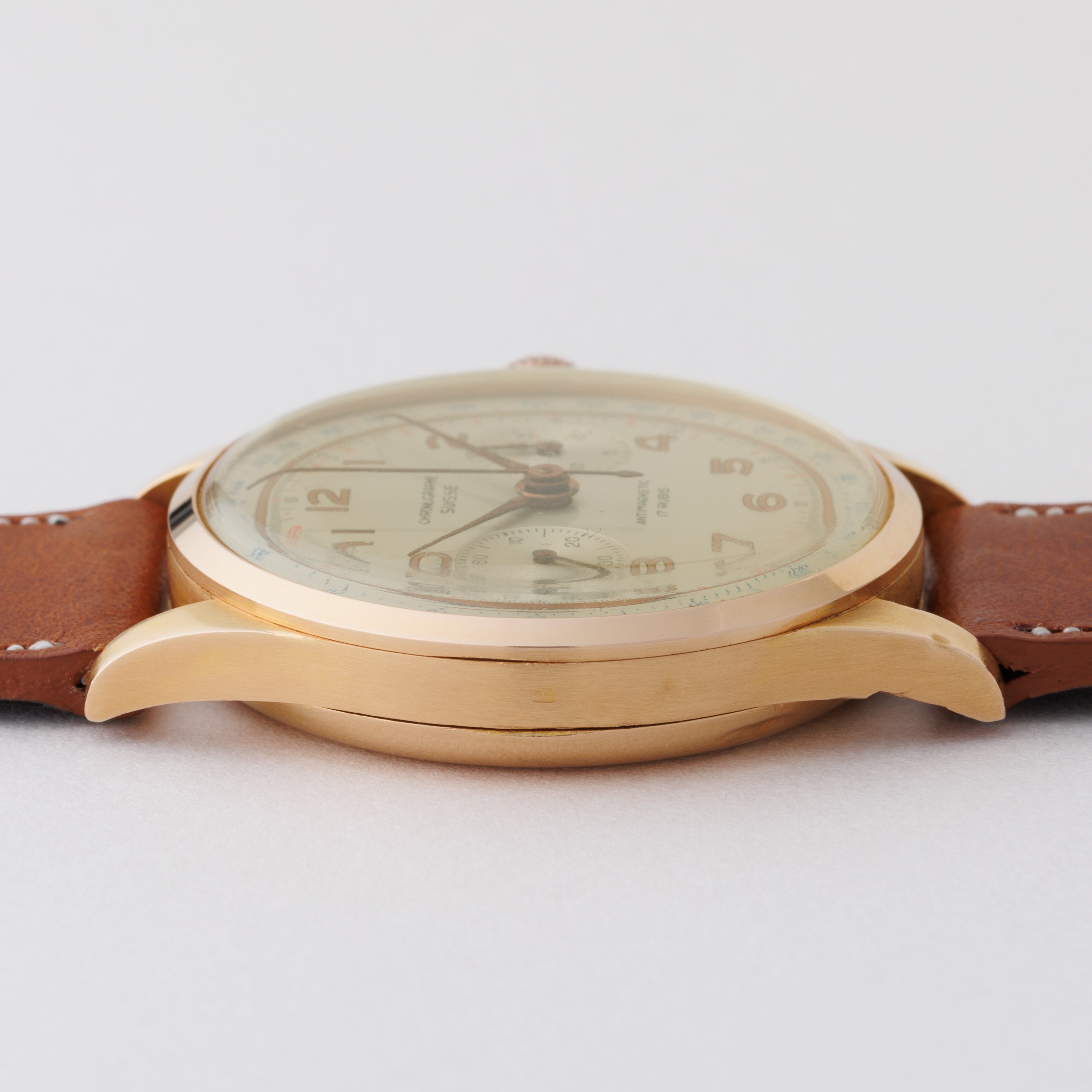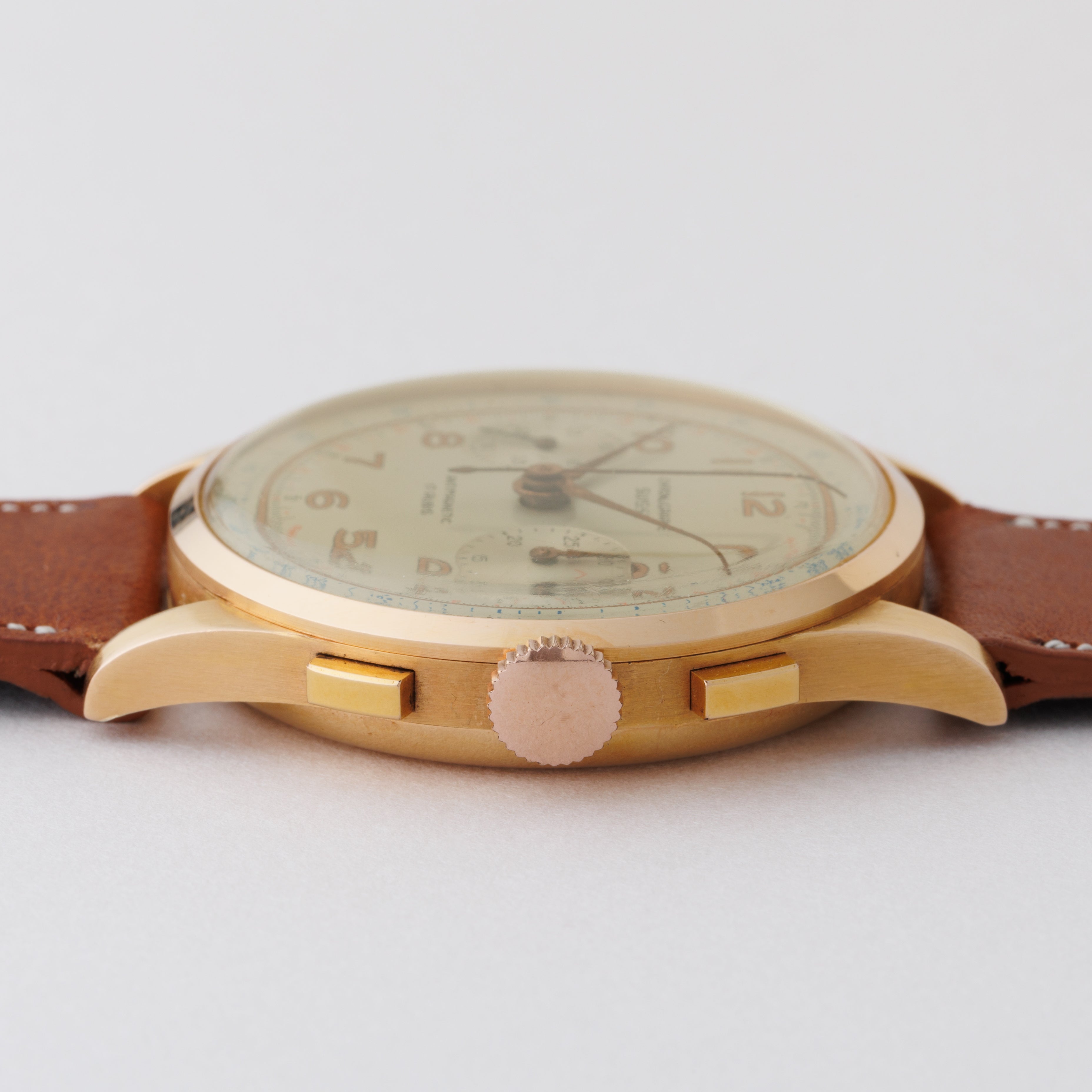 - ヴィンテージ時計の特性上、風防・パッキン・リューズ・バネ棒などの消耗部品は後年メンテナンス過程で交換されている場合がございます。オリジナル性を重視しておりますが、必要に応じて適切な部品にて調整されていますので、よりコレクション性重視のお求めのお客様は事前にご確認ください。