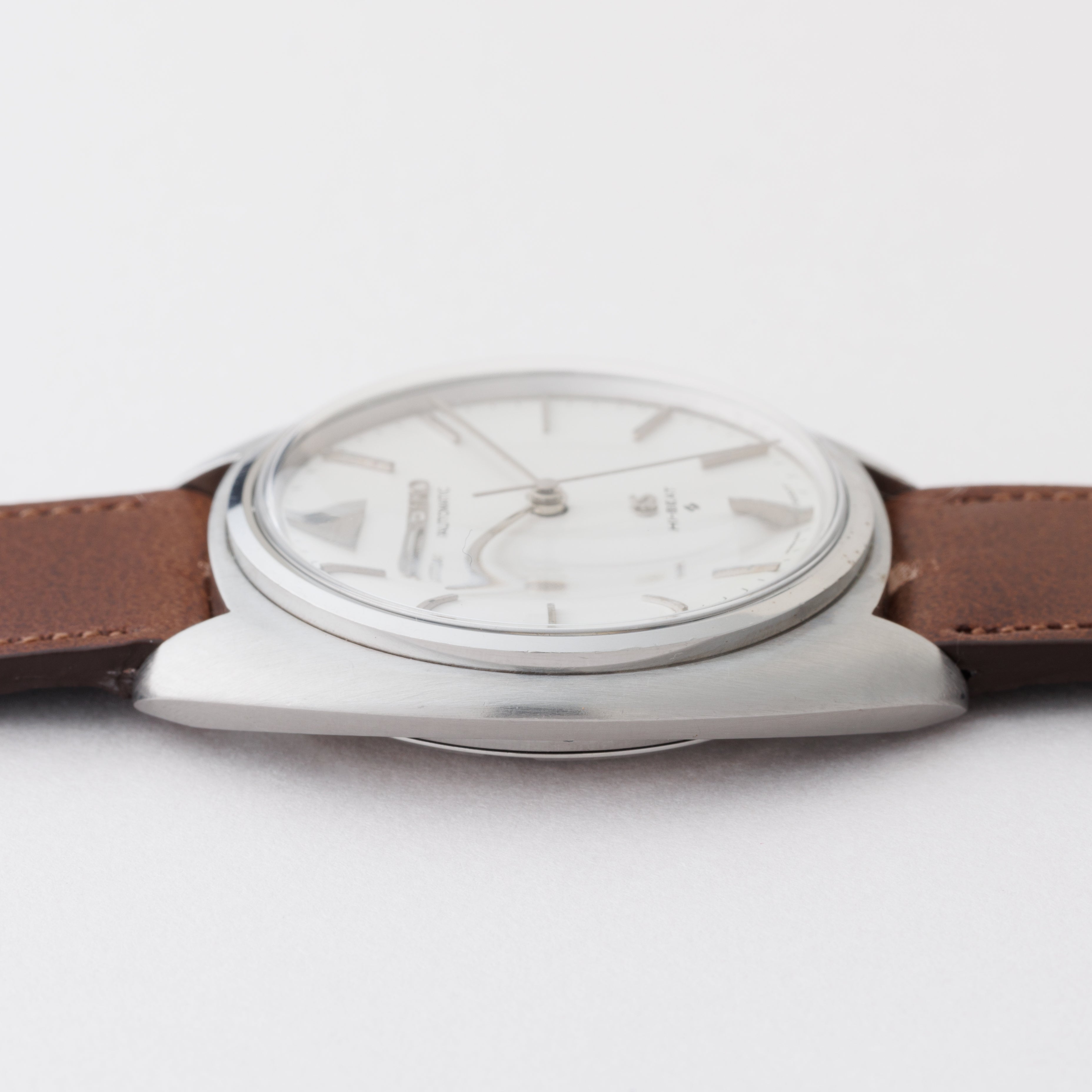 - ヴィンテージ時計の特性上、風防・パッキン・リューズ・バネ棒などの消耗部品は後年メンテナンス過程で交換されている場合がございます。オリジナル性を重視しておりますが、必要に応じて適切な部品にて調整されていますので、よりコレクション性重視のお求めのお客様は事前にご確認ください。