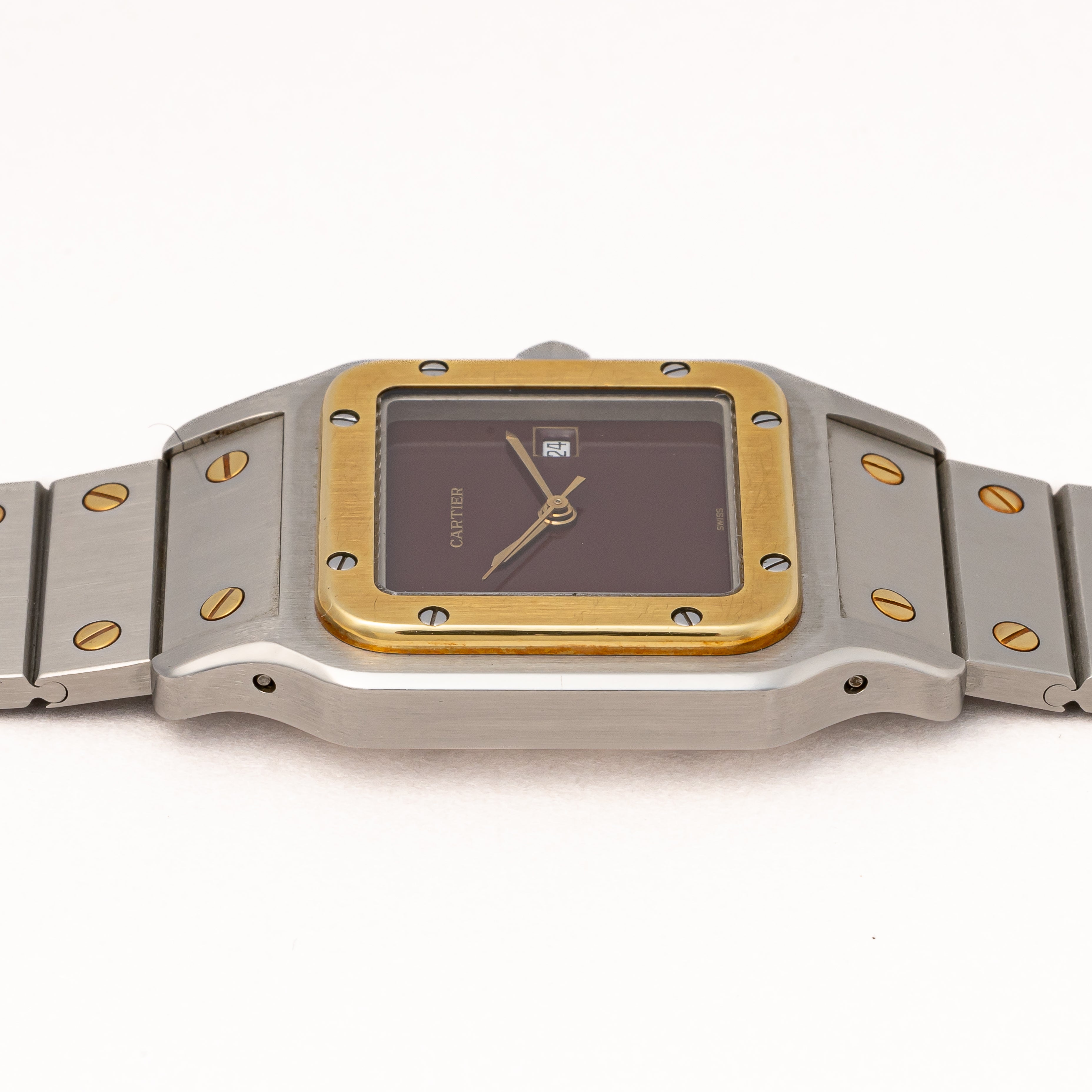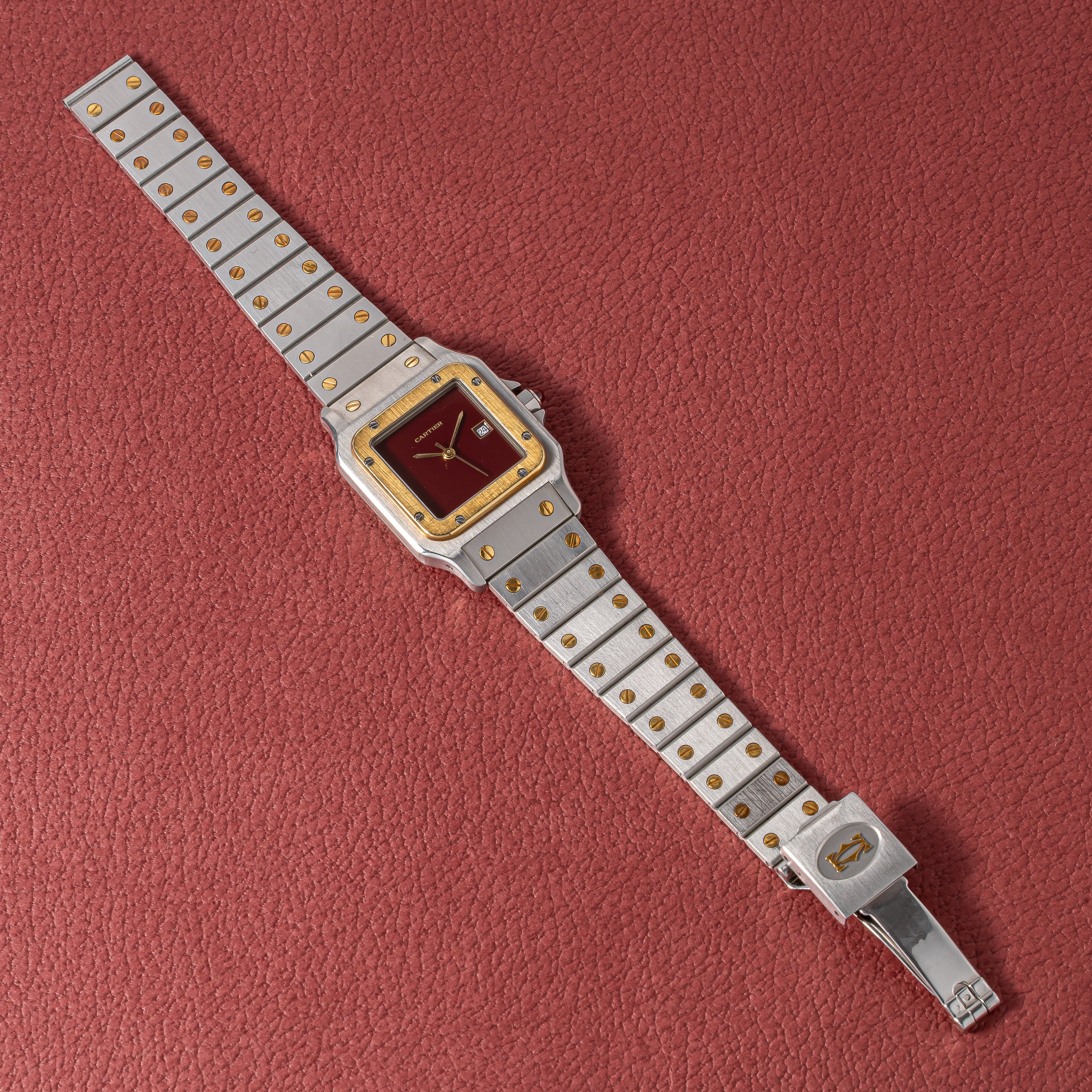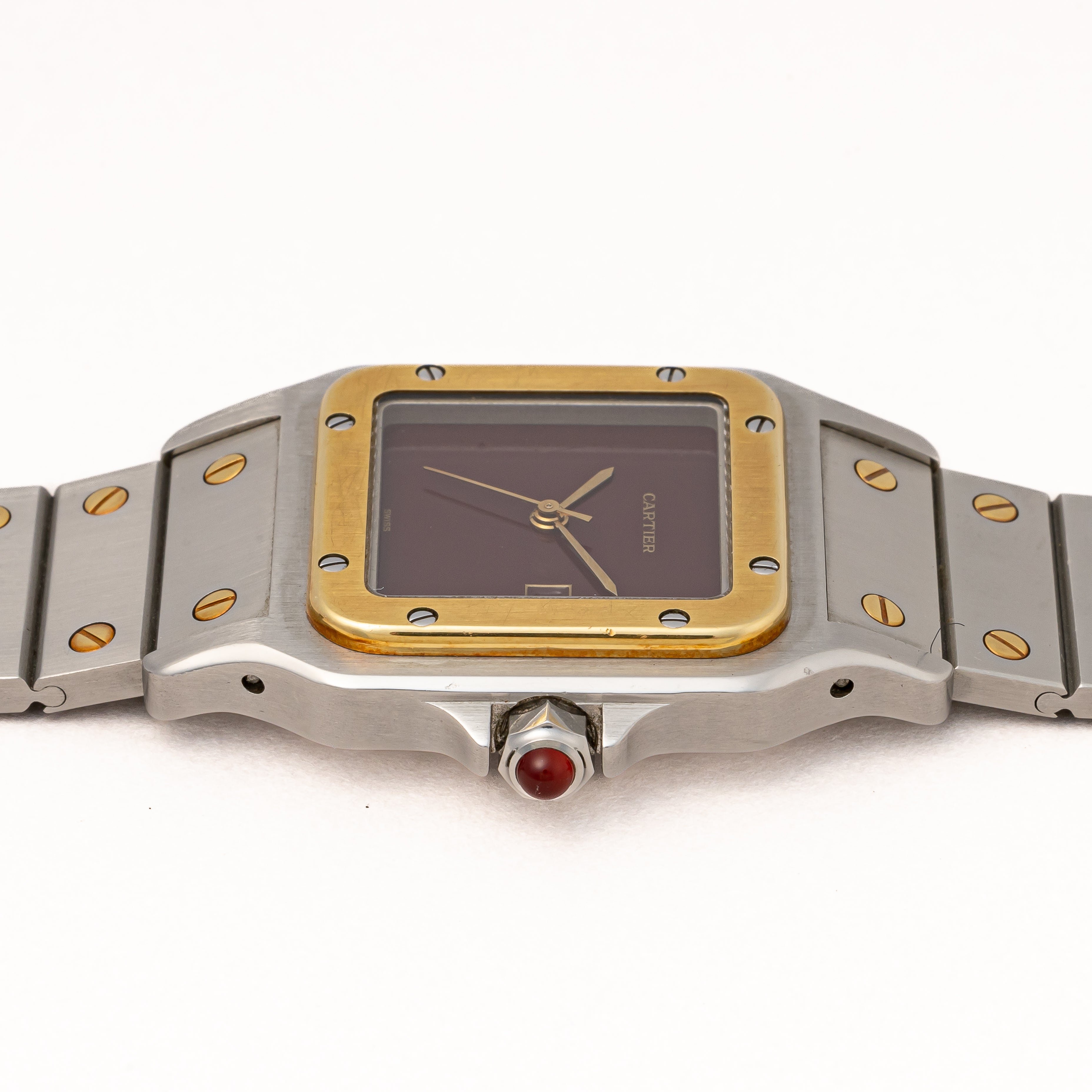 カルティエ サントス 1980年代製 Ref.2961 LMサイズ コンビ ガーネットダイヤル 箱、ギャラ付き