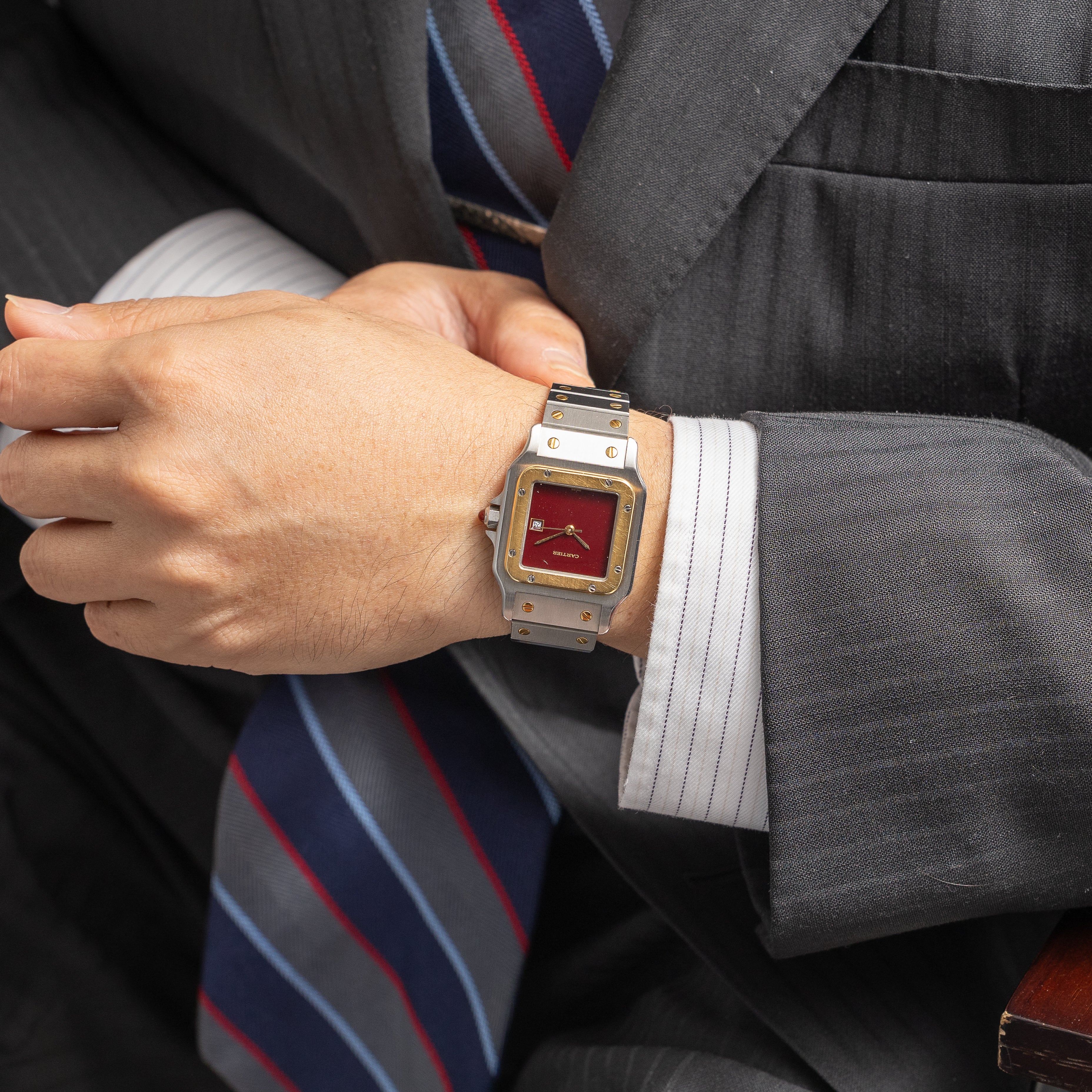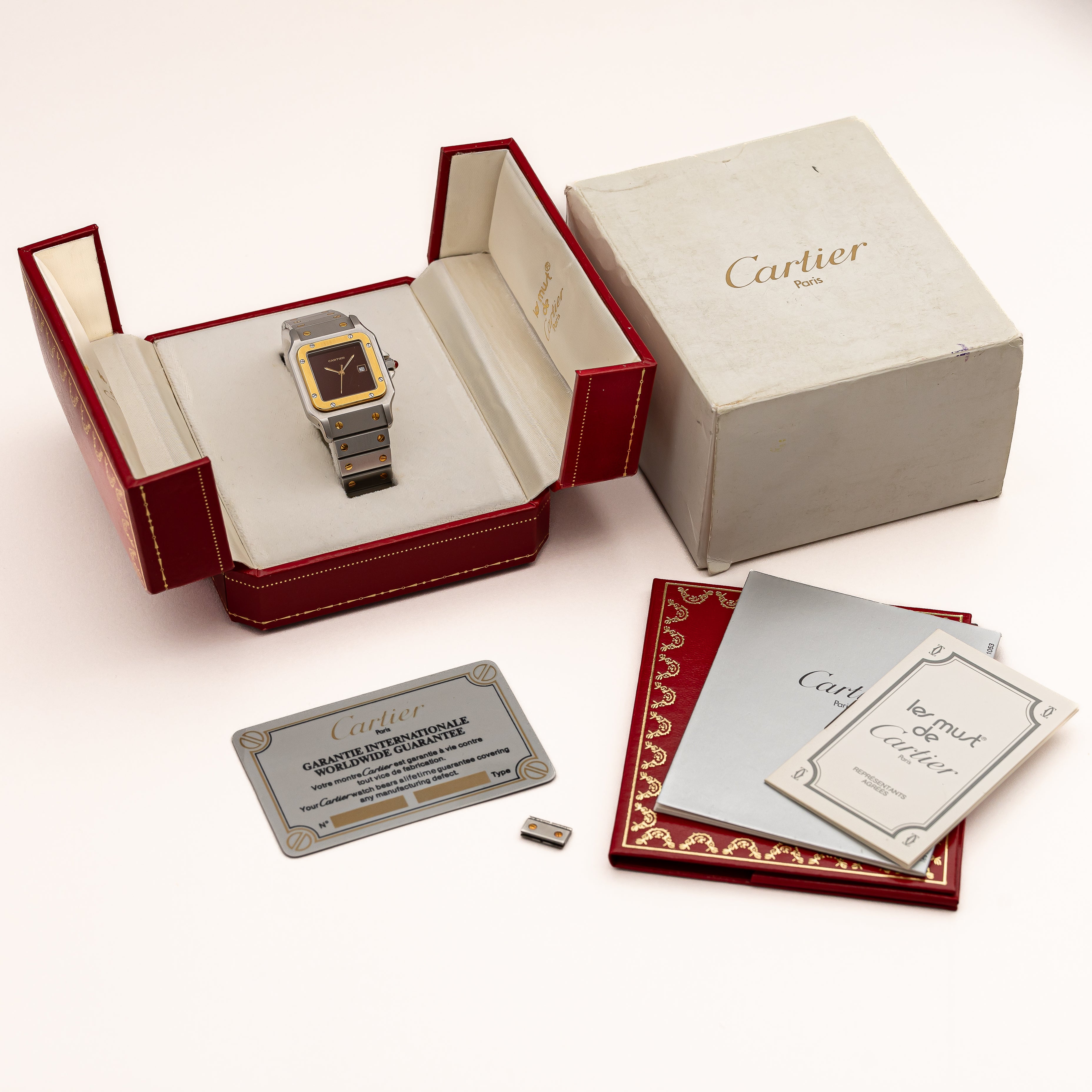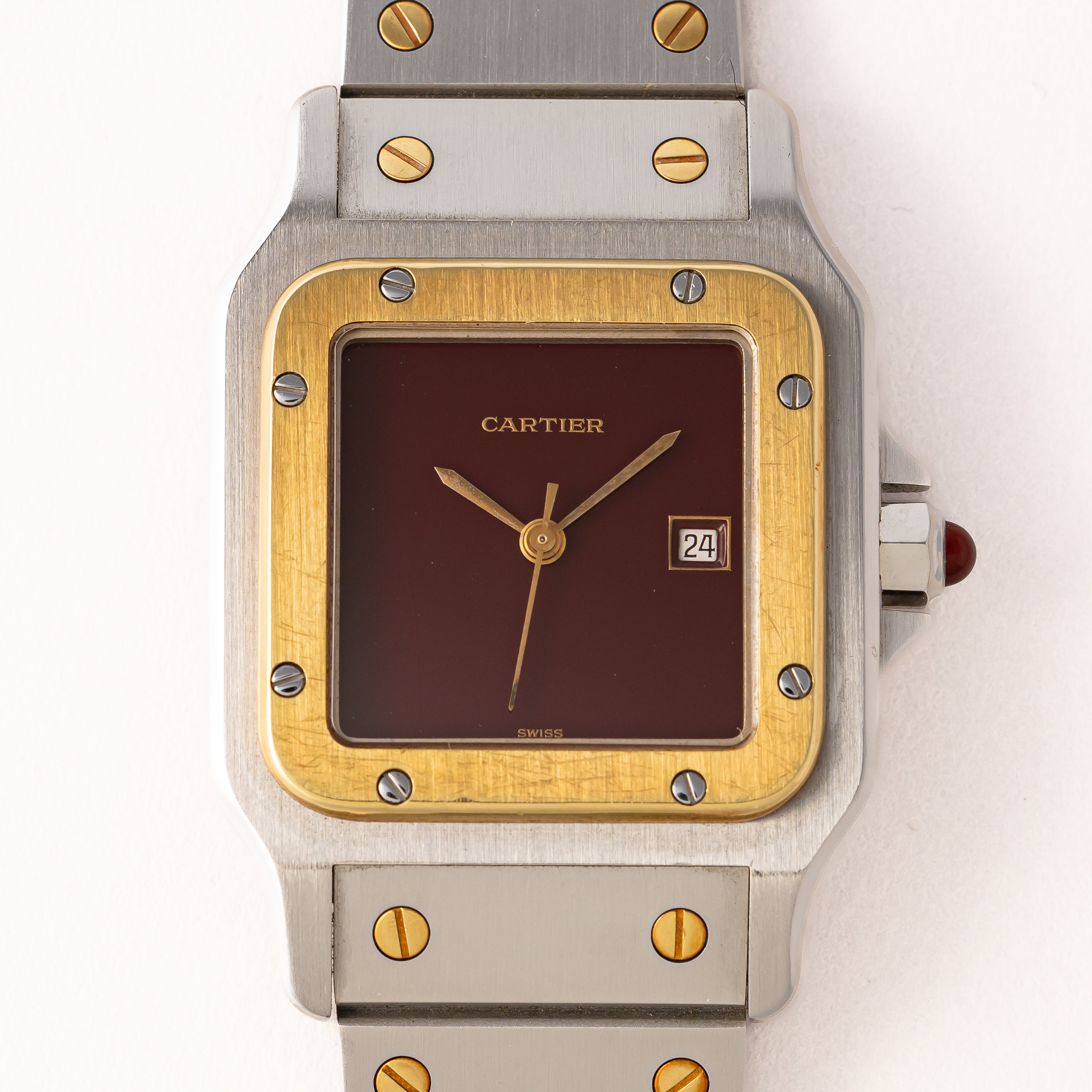 カルティエ サントス 1980年代製 Ref.2961 LMサイズ コンビ ガーネットダイヤル 箱、ギャラ付き