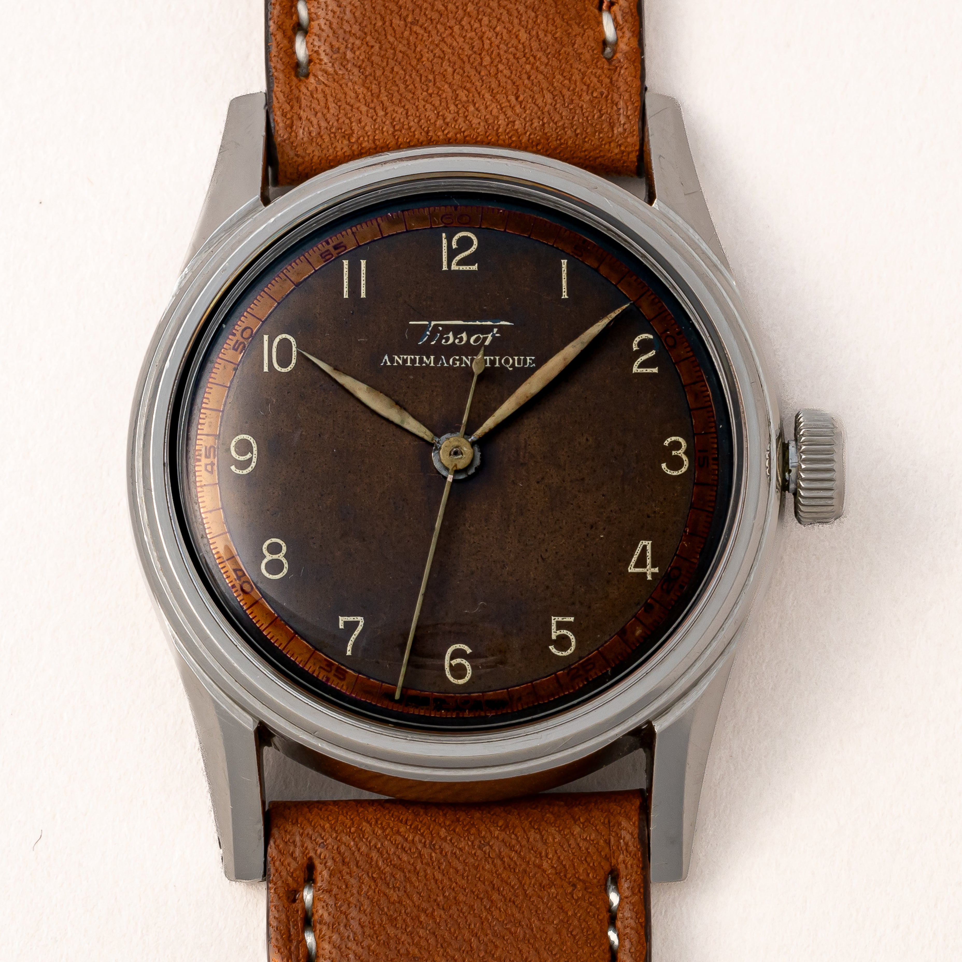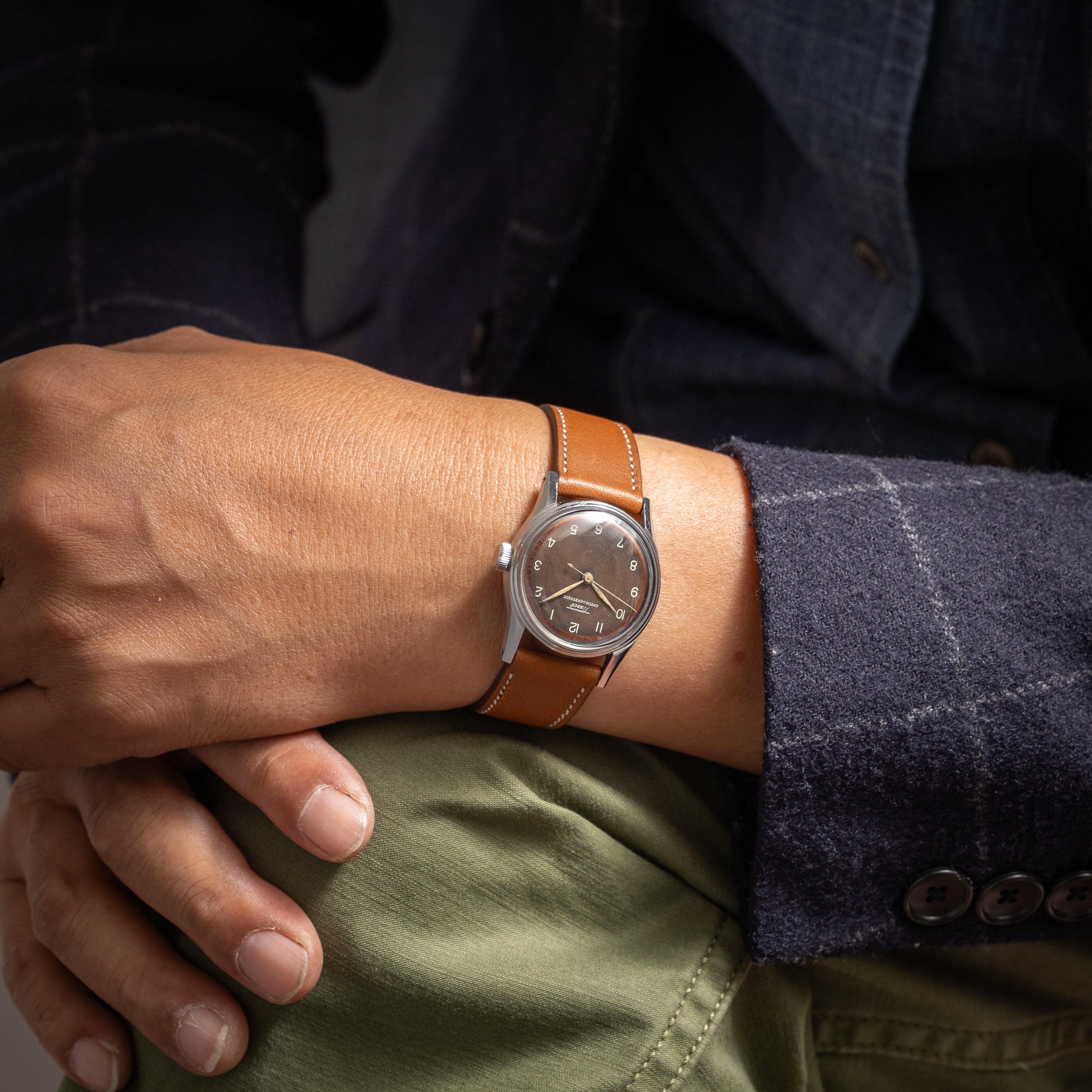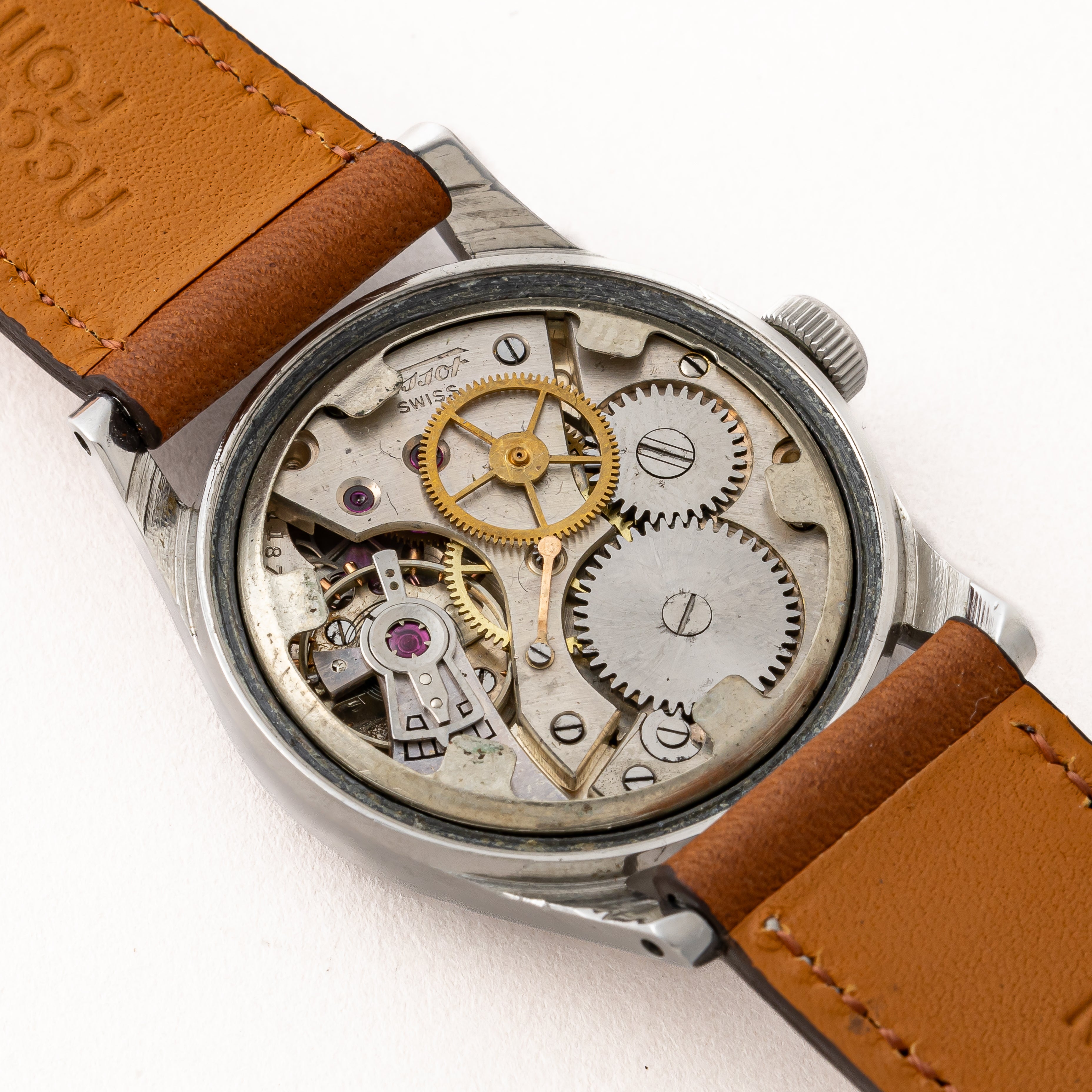 - ヴィンテージ時計の特性上、風防・パッキン・リューズ・バネ棒などの消耗部品は後年メンテナンス過程で交換されている場合がございます。オリジナル性を重視しておりますが、必要に応じて適切な部品にて調整されていますので、よりコレクション性重視のお求めのお客様は事前にご確認ください。