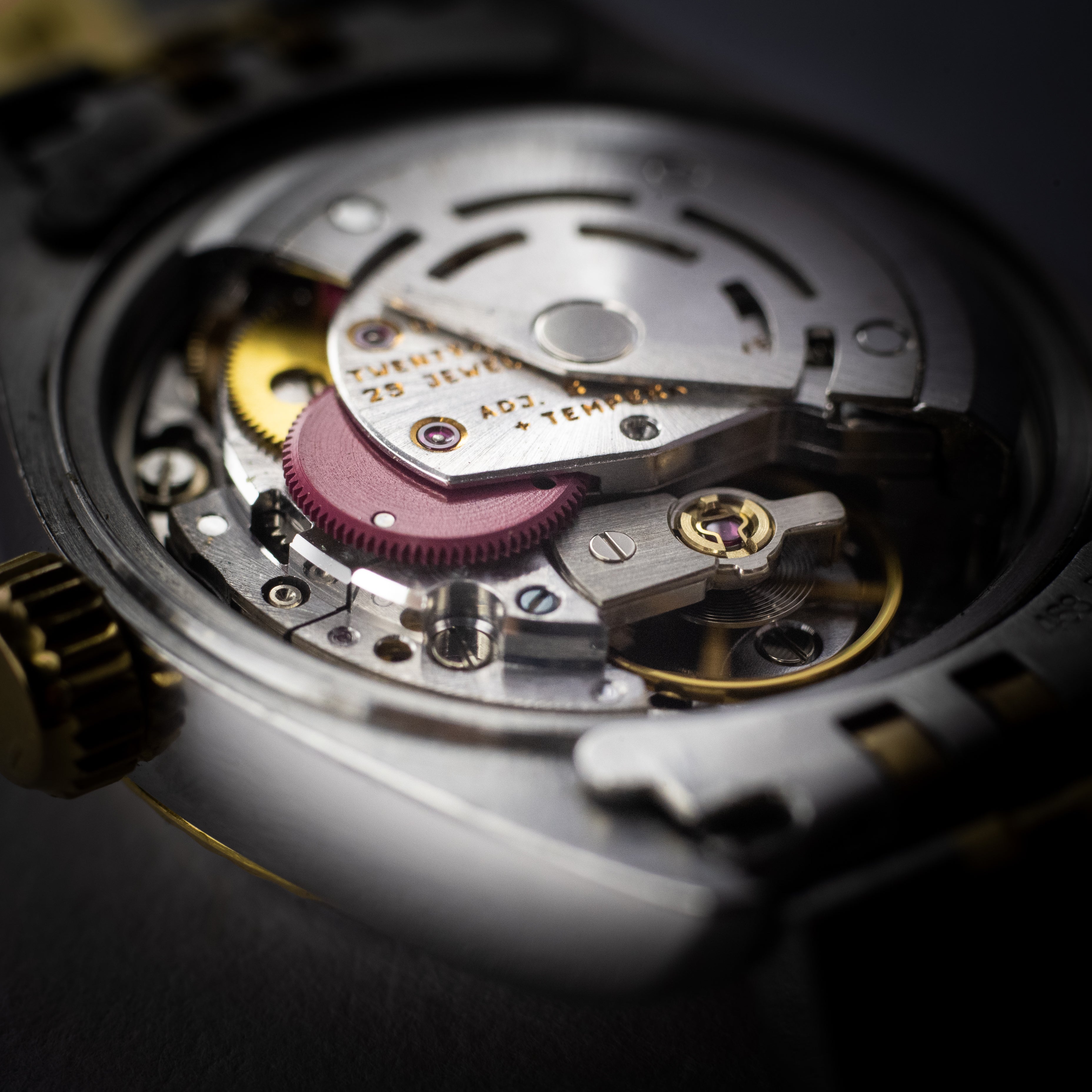 - ヴィンテージ時計の特性上、風防・パッキン・リューズ・バネ棒などの消耗部品は後年メンテナンス過程で交換されている場合がございます。オリジナル性を重視しておりますが、必要に応じて適切な部品にて調整されていますので、よりコレクション性重視のお求めのお客様は事前にご確認ください。