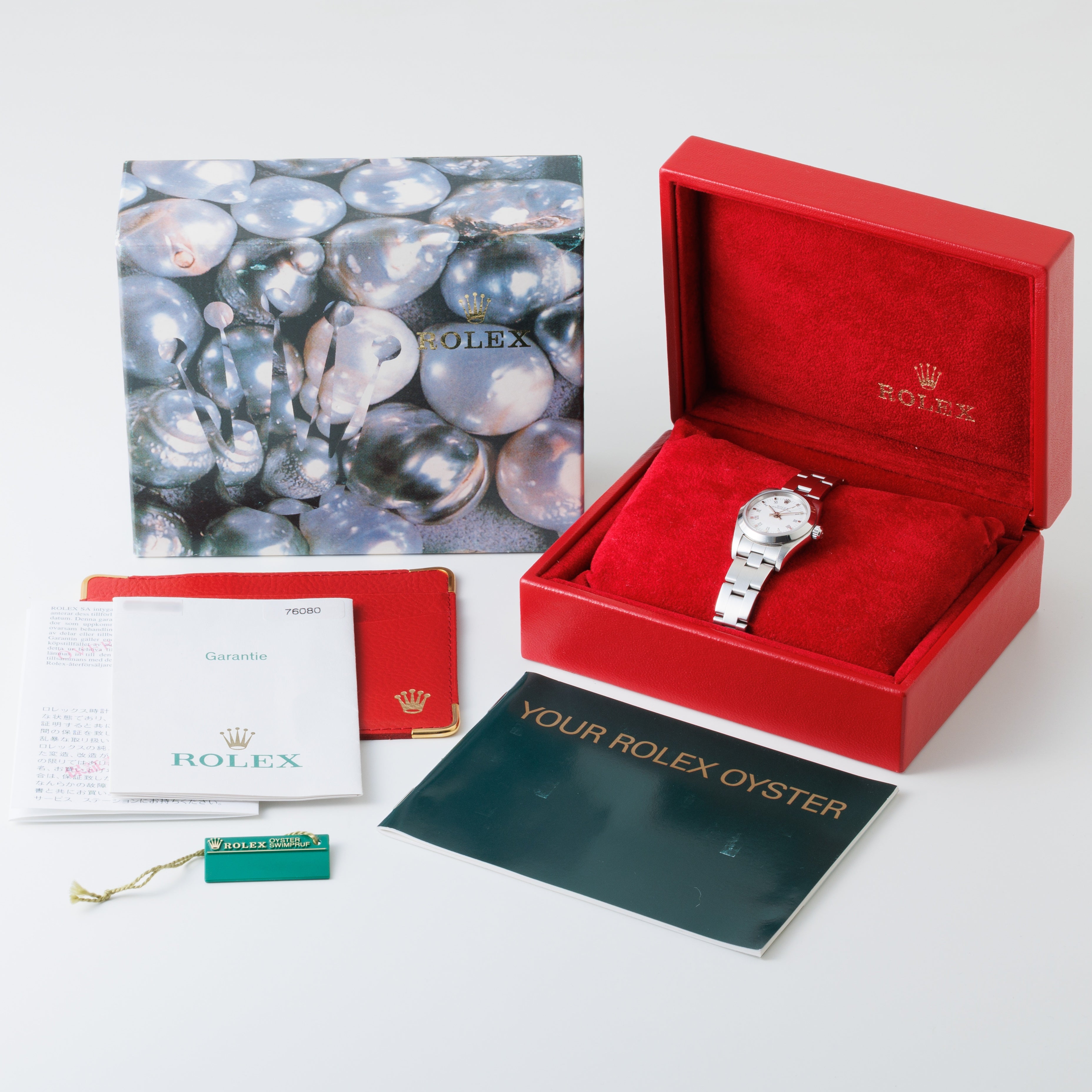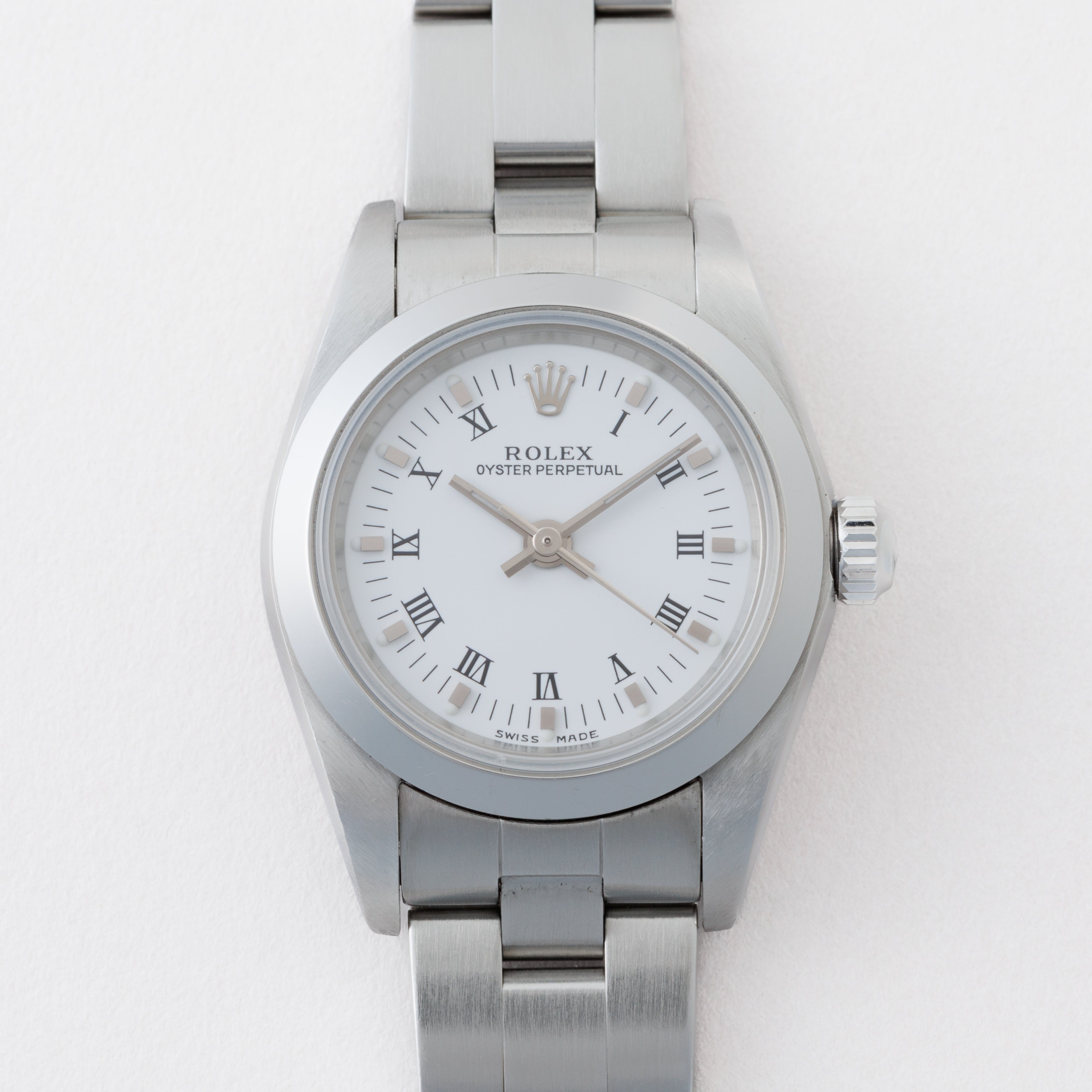 ロレックス レディース オイスターパーペチュアル 2004年製 Ref.76080 ホワイトローマンダイヤル 箱、ギャラ付き