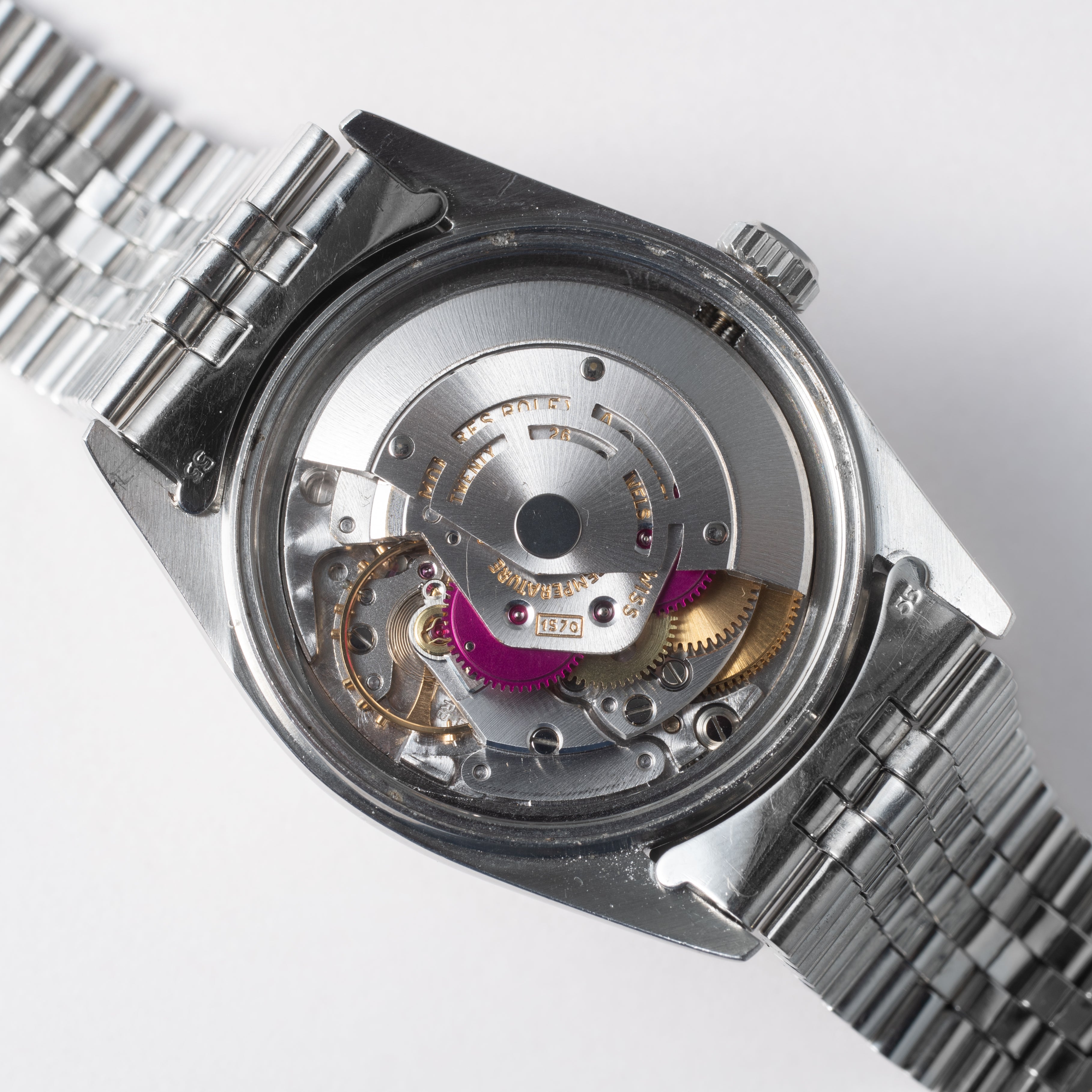 - ヴィンテージ時計の特性上、風防・パッキン・リューズ・バネ棒などの消耗部品は後年メンテナンス過程で交換されている場合がございます。オリジナル性を重視しておりますが、必要に応じて適切な部品にて調整されていますので、よりコレクション性重視のお求めのお客様は事前にご確認ください。