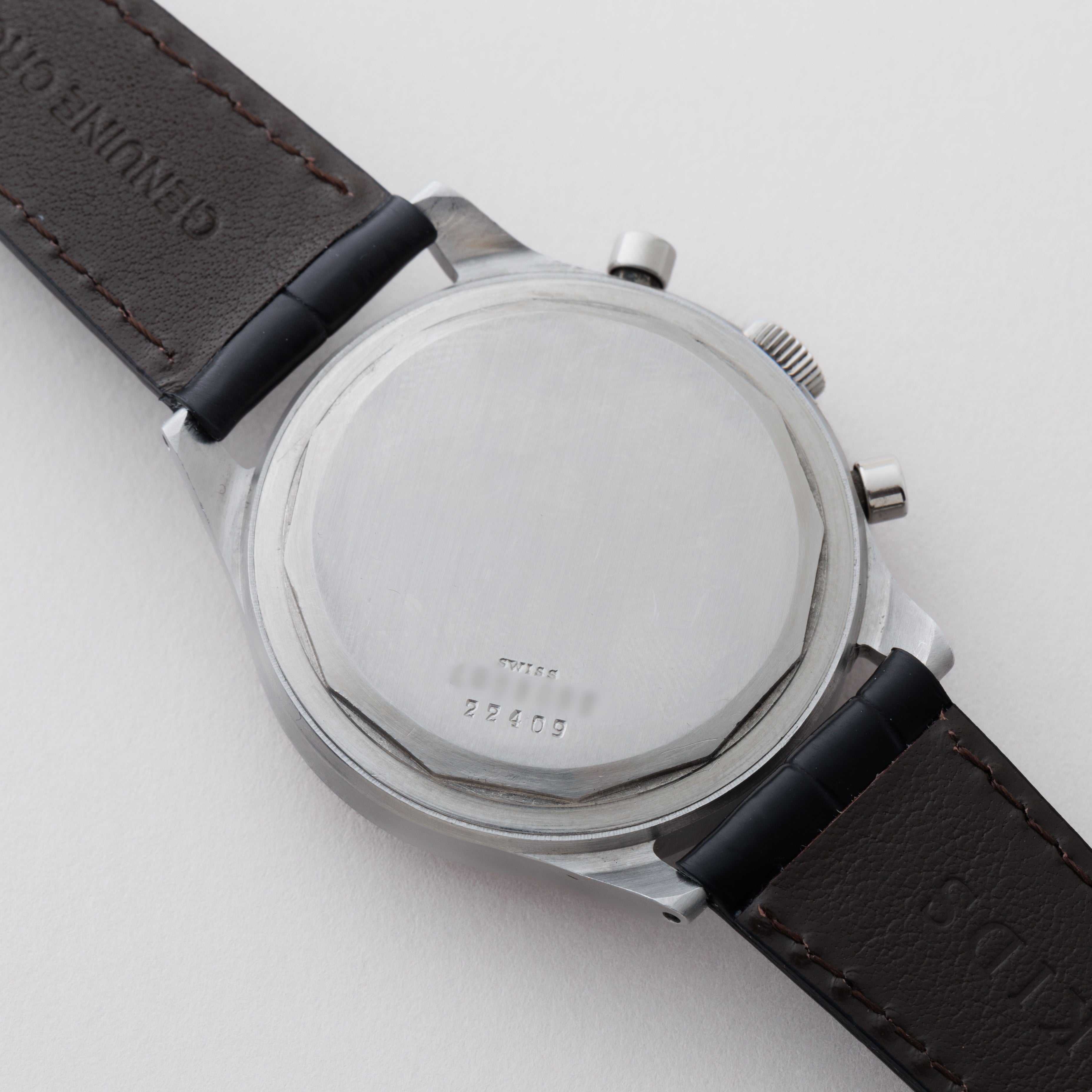 - ヴィンテージ時計の特性上、風防・パッキン・リューズ・バネ棒などの消耗部品は後年メンテナンス過程で交換されている場合がございます。オリジナル性を重視しておりますが、必要に応じて適切な部品にて調整されていますので、よりコレクション性重視のお求めのお客様は事前にご確認ください。