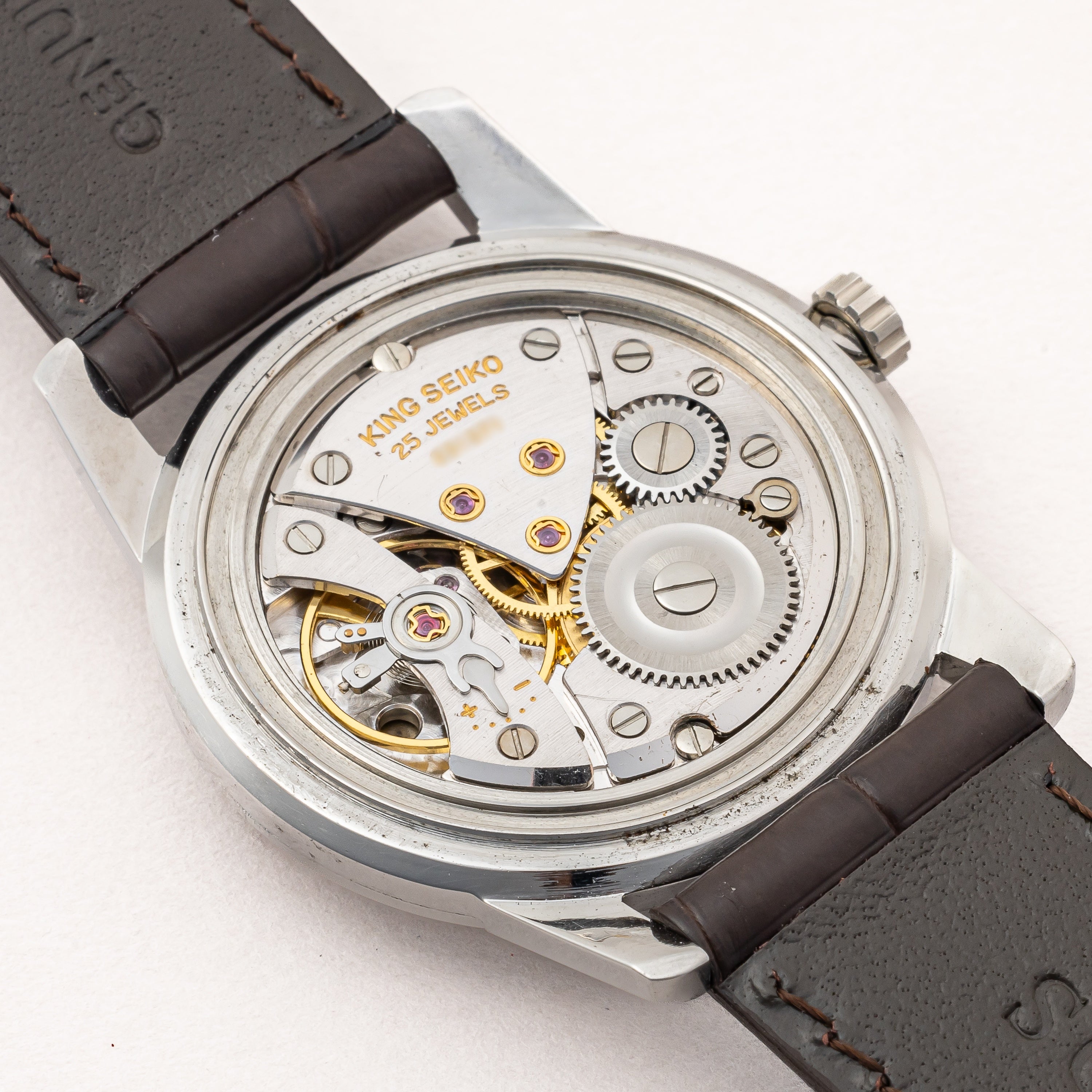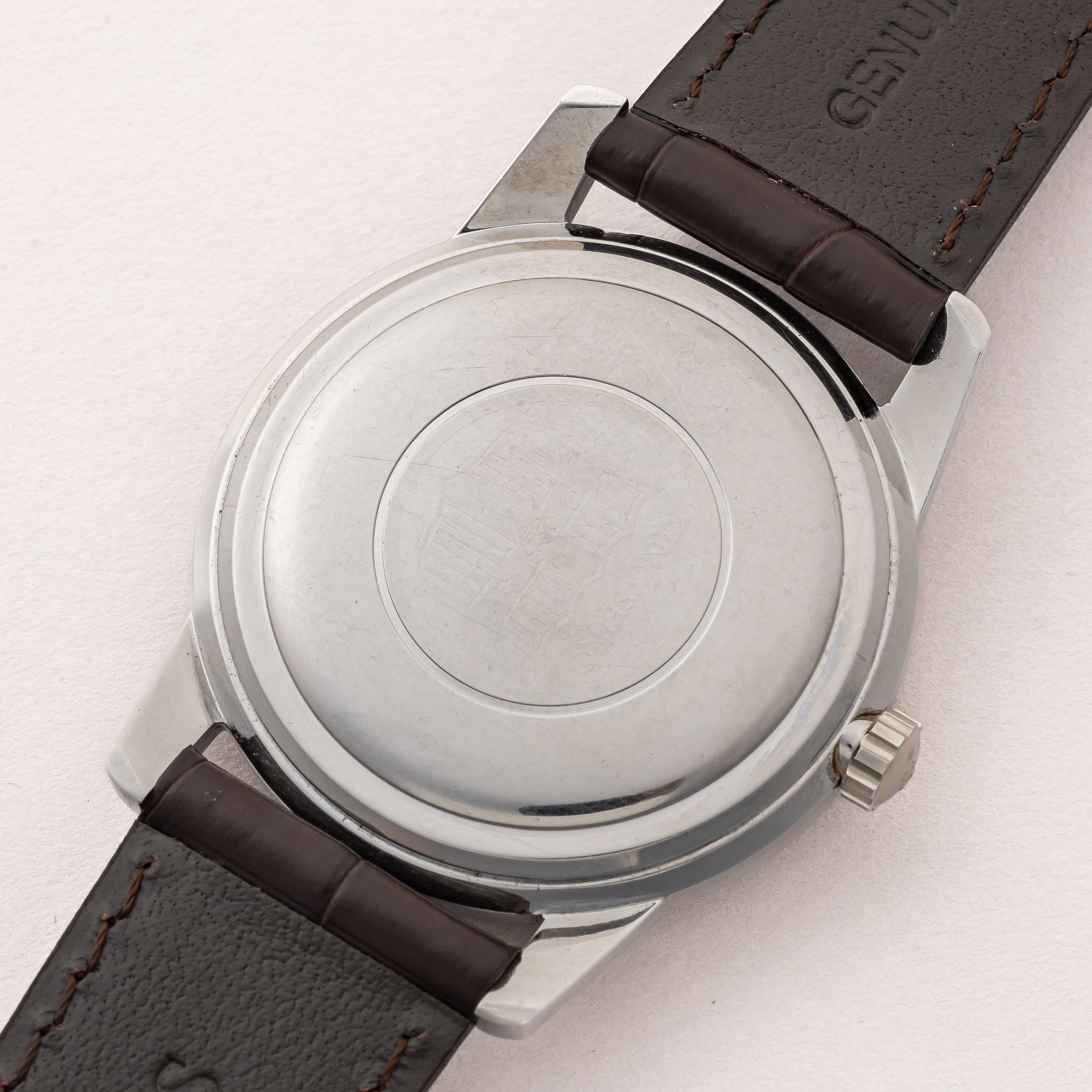 - ヴィンテージ時計の特性上、風防・パッキン・リューズ・バネ棒などの消耗部品は後年メンテナンス過程で交換されている場合がございます。オリジナル性を重視しておりますが、必要に応じて適切な部品にて調整されていますので、よりコレクション性重視のお求めのお客様は事前にご確認ください。
