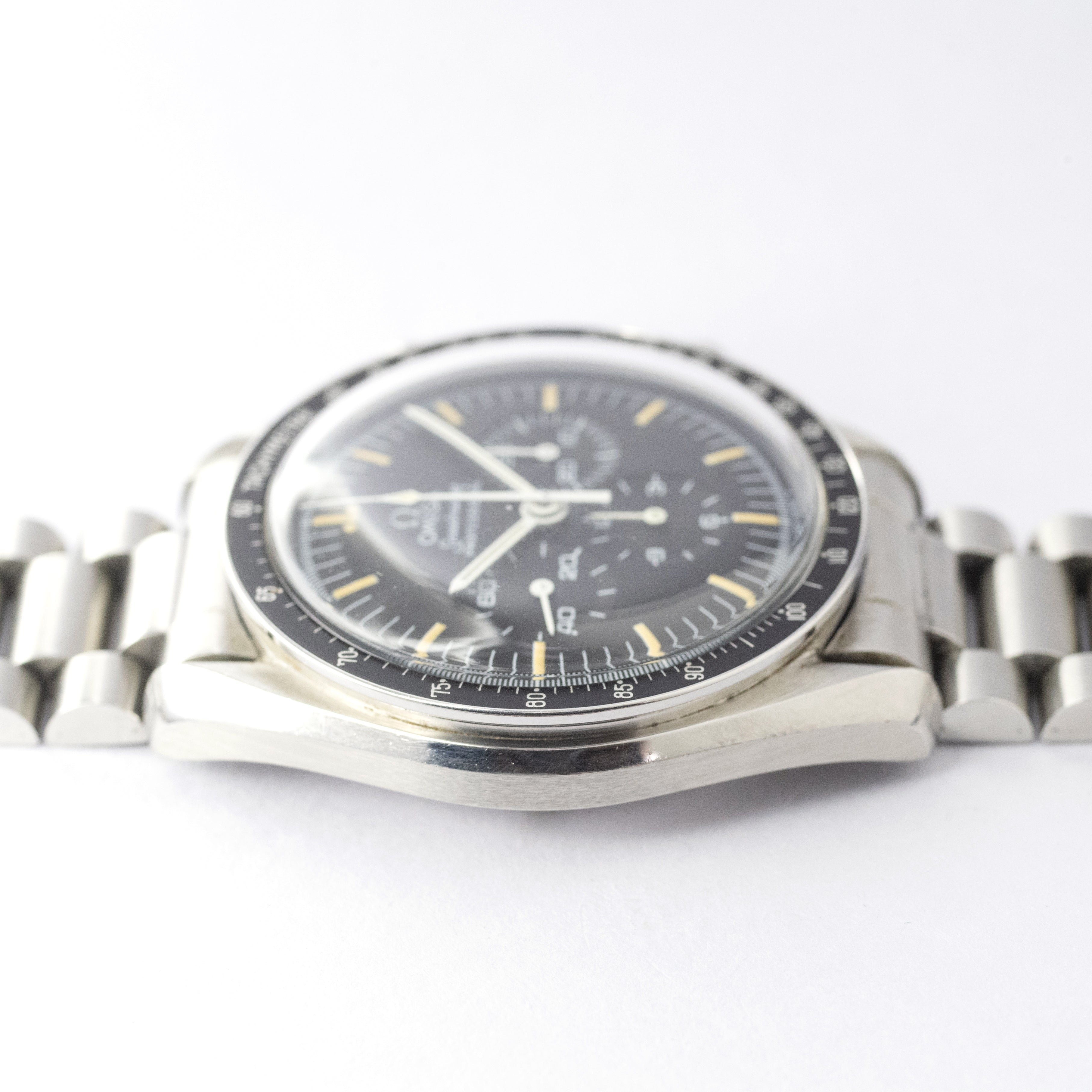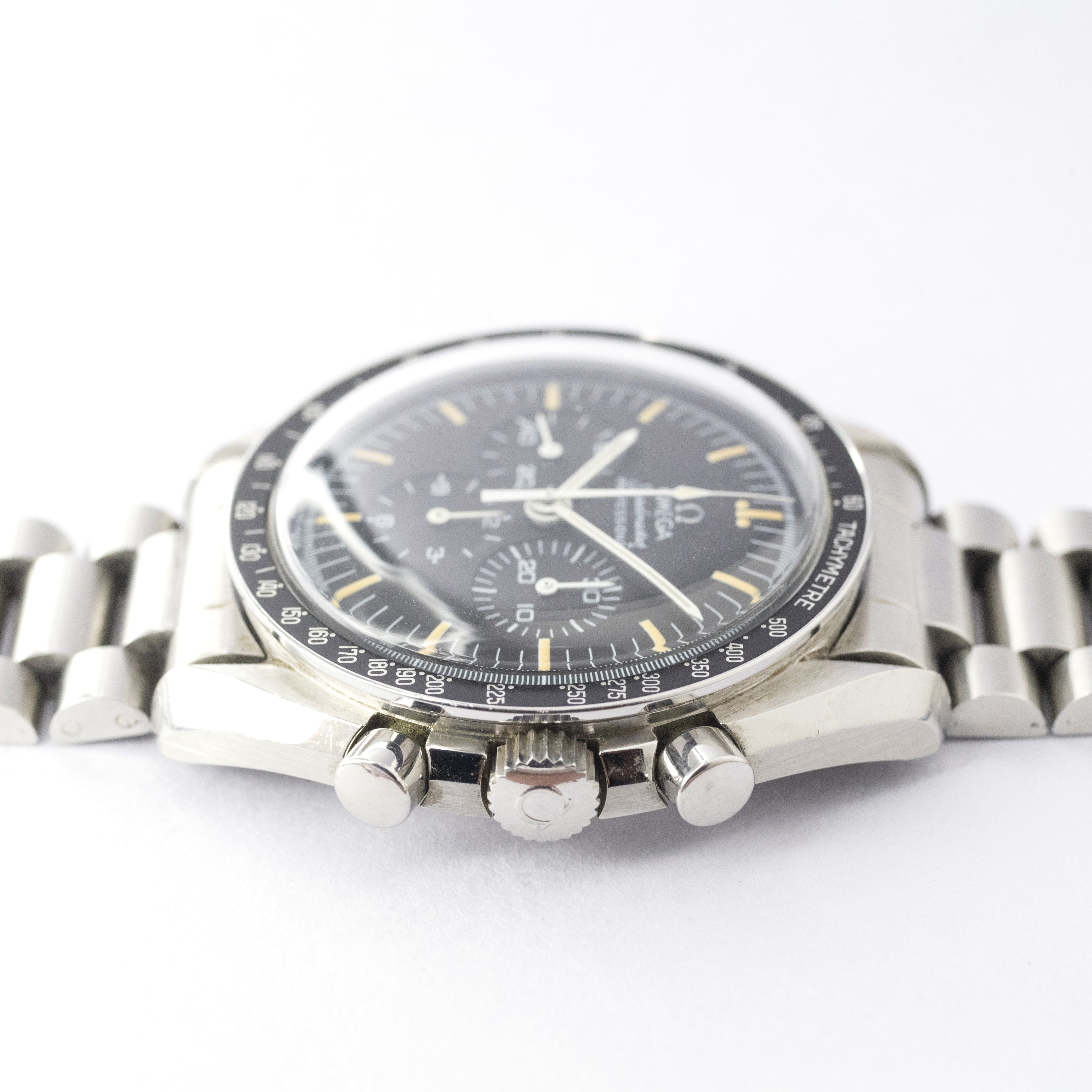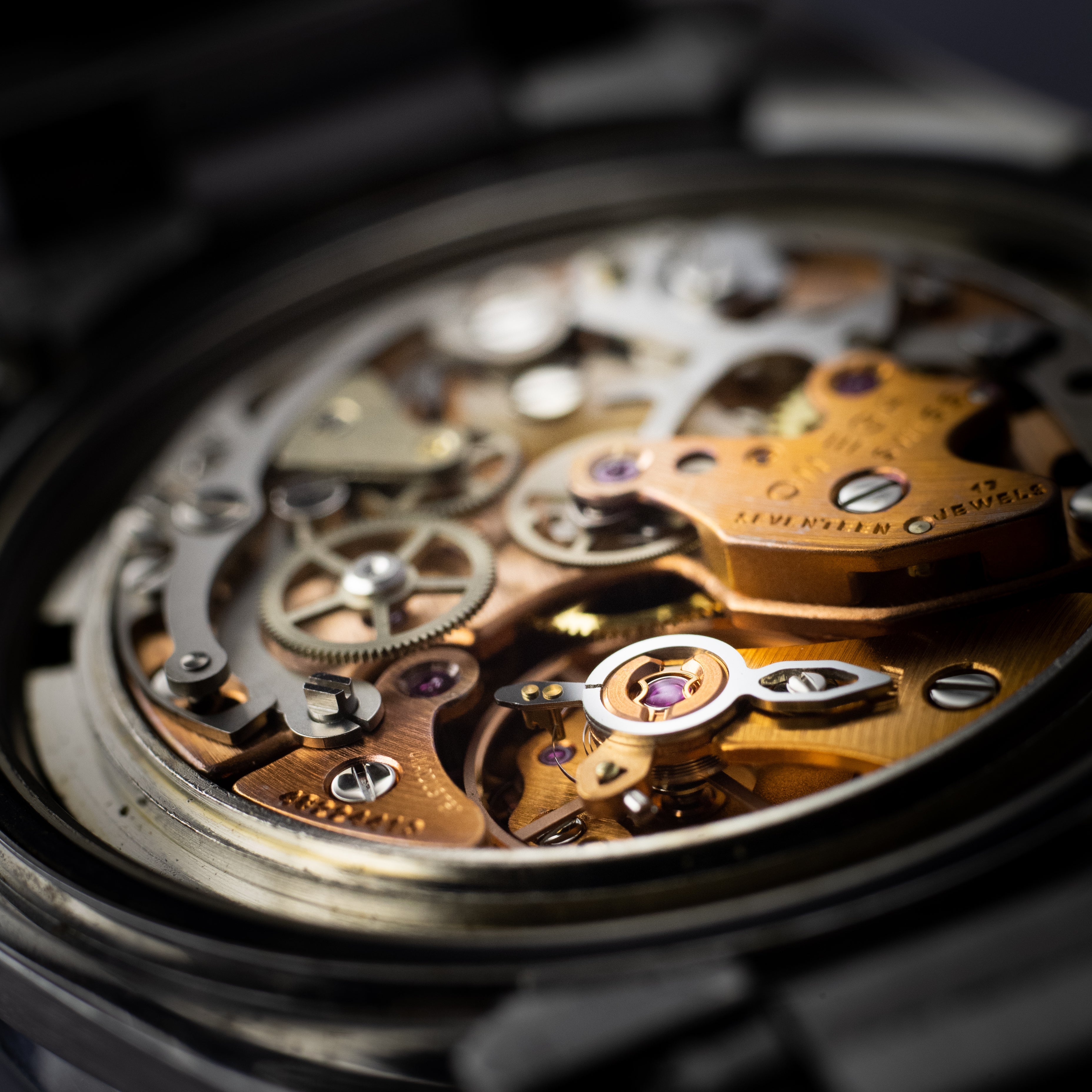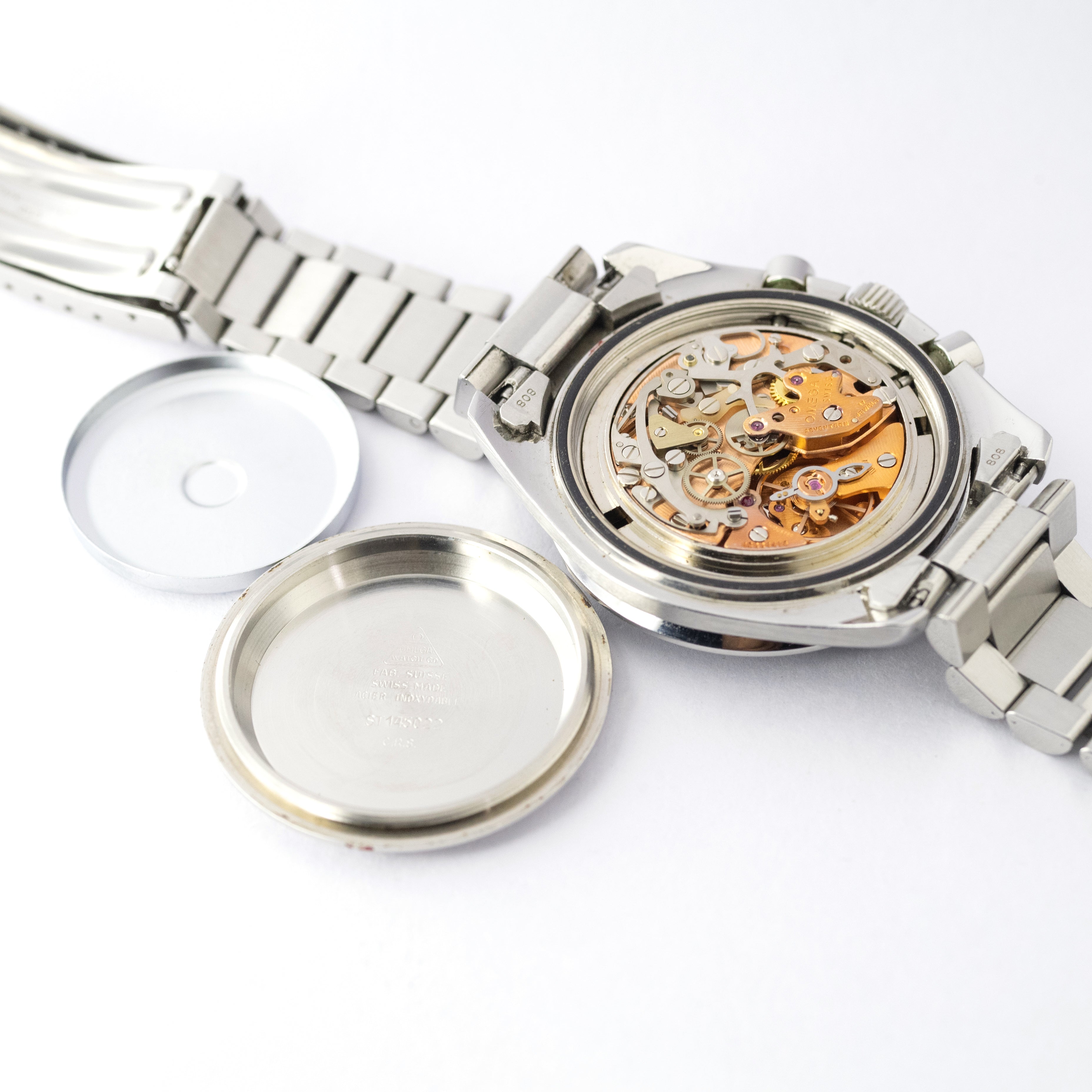 - ヴィンテージ時計の特性上、風防・パッキン・リューズ・バネ棒などの消耗部品は後年メンテナンス過程で交換されている場合がございます。オリジナル性を重視しておりますが、必要に応じて適切な部品にて調整されていますので、よりコレクション性重視のお求めのお客様は事前にご確認ください。