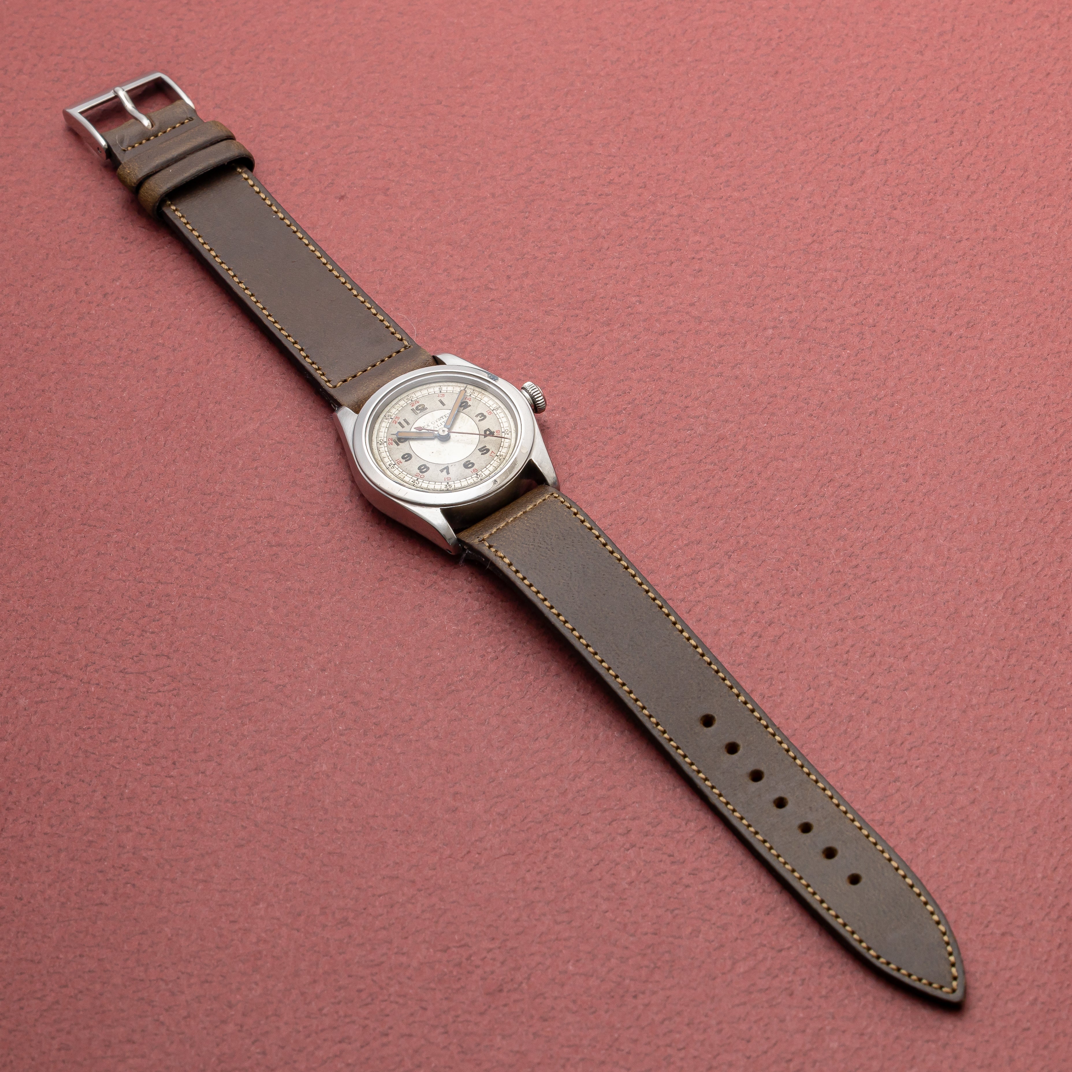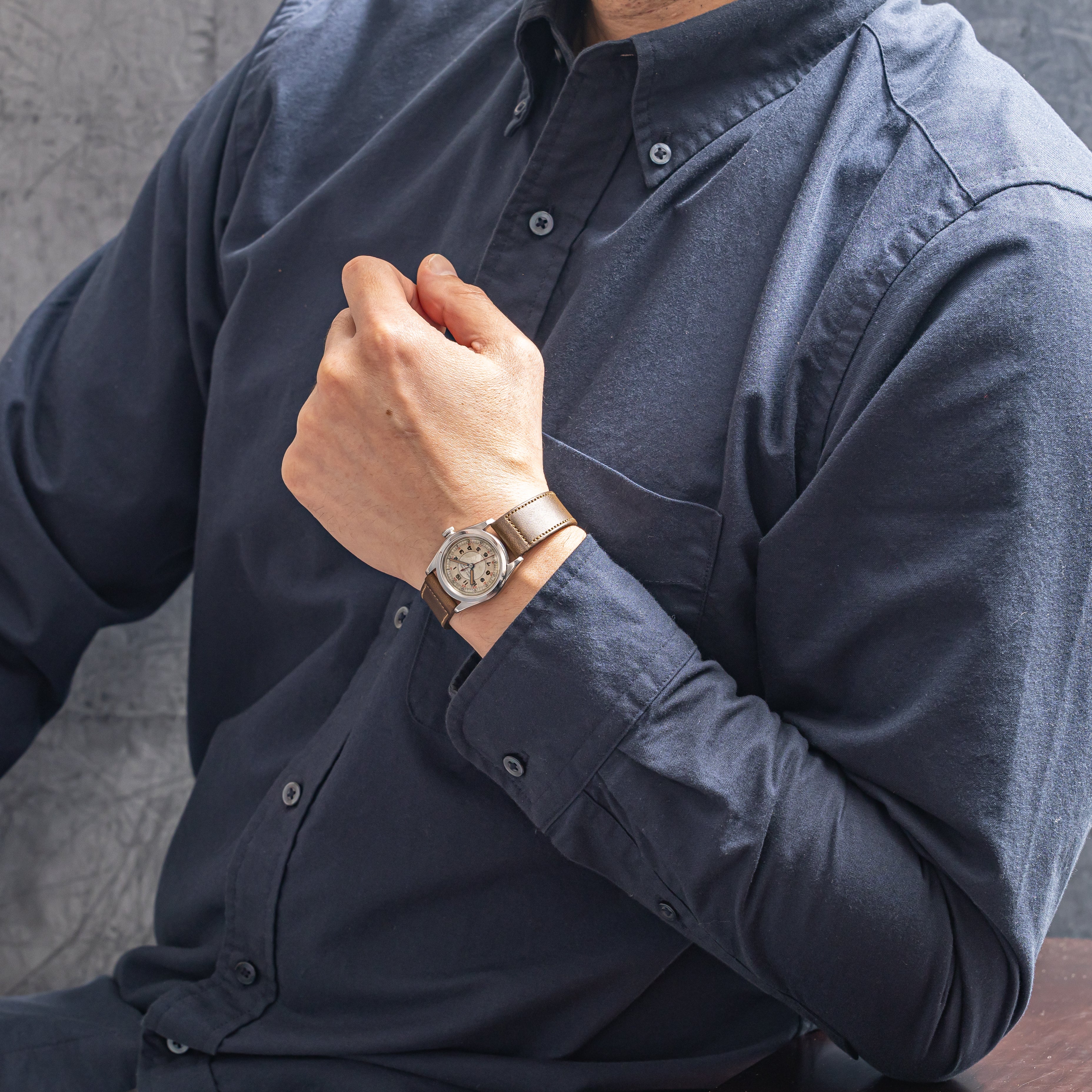 - ヴィンテージ時計の特性上、風防・パッキン・リューズ・バネ棒などの消耗部品は後年メンテナンス過程で交換されている場合がございます。オリジナル性を重視しておりますが、必要に応じて適切な部品にて調整されていますので、よりコレクション性重視のお求めのお客様は事前にご確認ください。