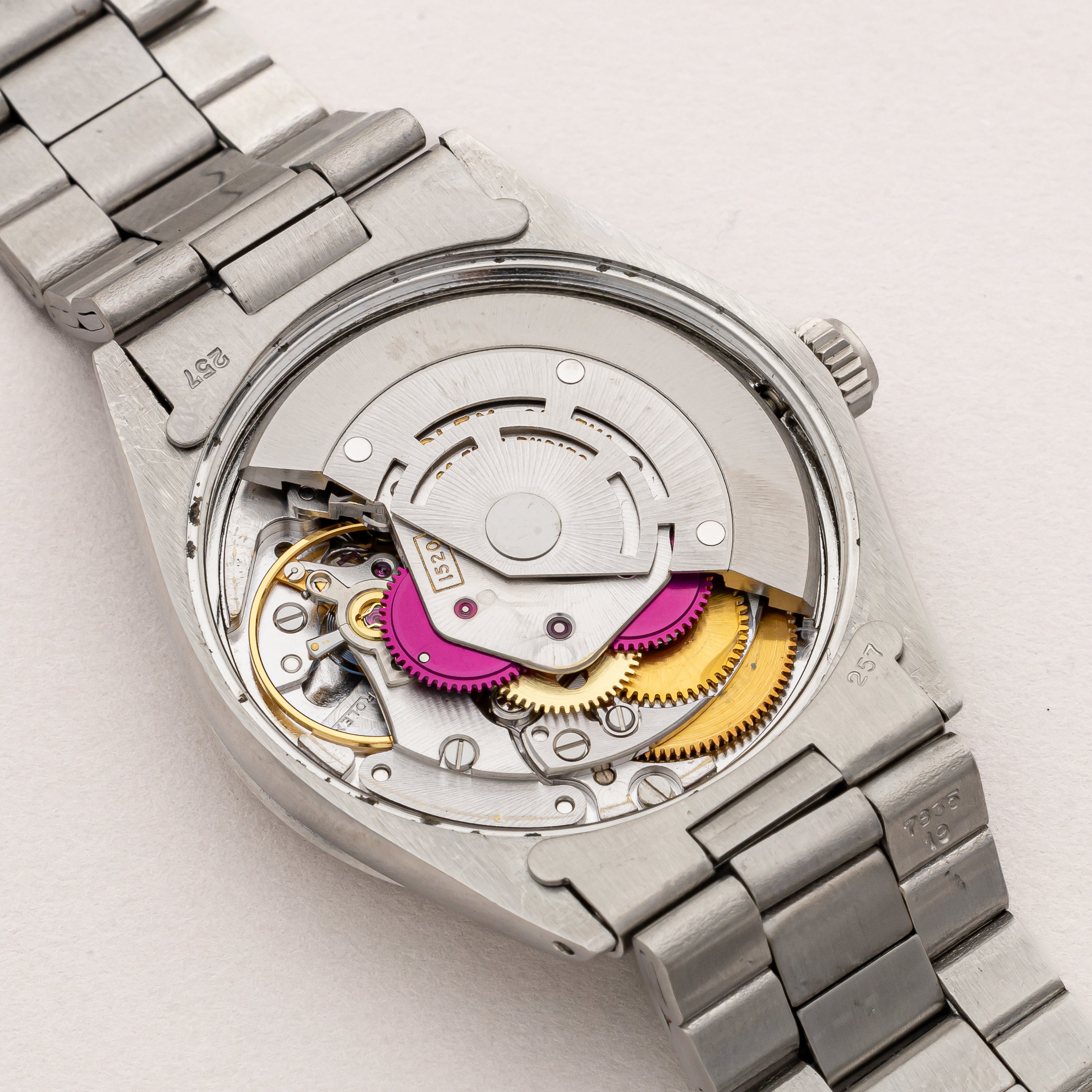 - ヴィンテージ時計の特性上、風防・パッキン・リューズ・バネ棒などの消耗部品は後年メンテナンス過程で交換されている場合がございます。オリジナル性を重視しておりますが、必要に応じて適切な部品にて調整されていますので、よりコレクション性重視のお求めのお客様は事前にご確認ください。