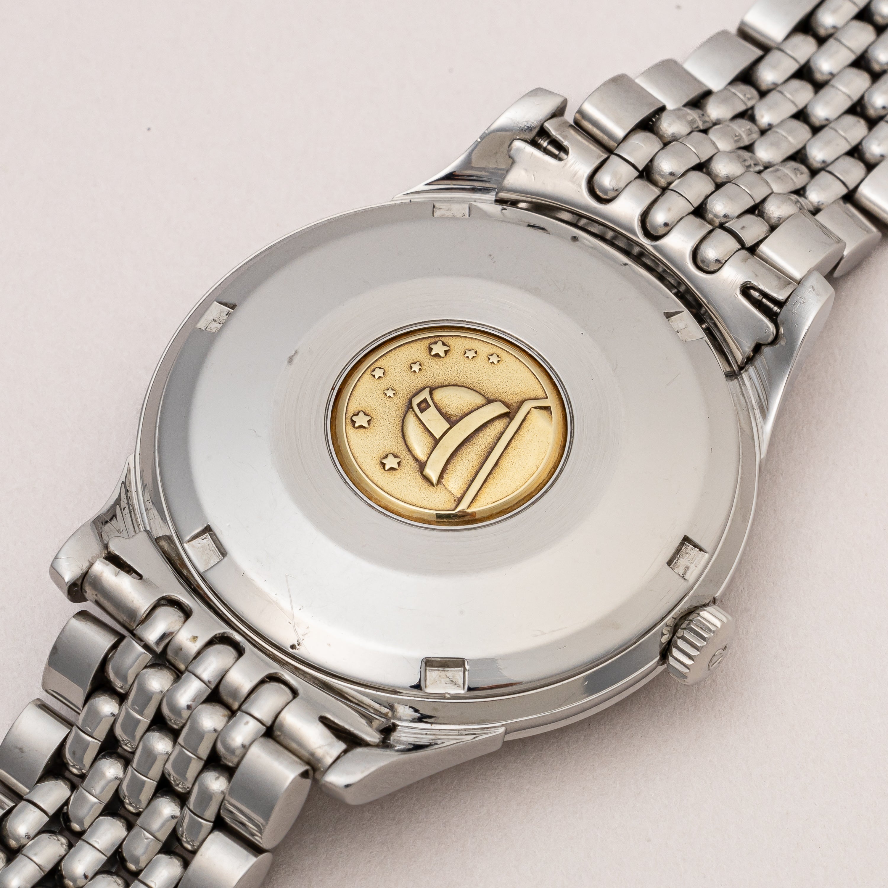- ヴィンテージ時計の特性上、風防・パッキン・リューズ・バネ棒などの消耗部品は後年メンテナンス過程で交換されている場合がございます。オリジナル性を重視しておりますが、必要に応じて適切な部品にて調整されていますので、よりコレクション性重視のお求めのお客様は事前にご確認ください。