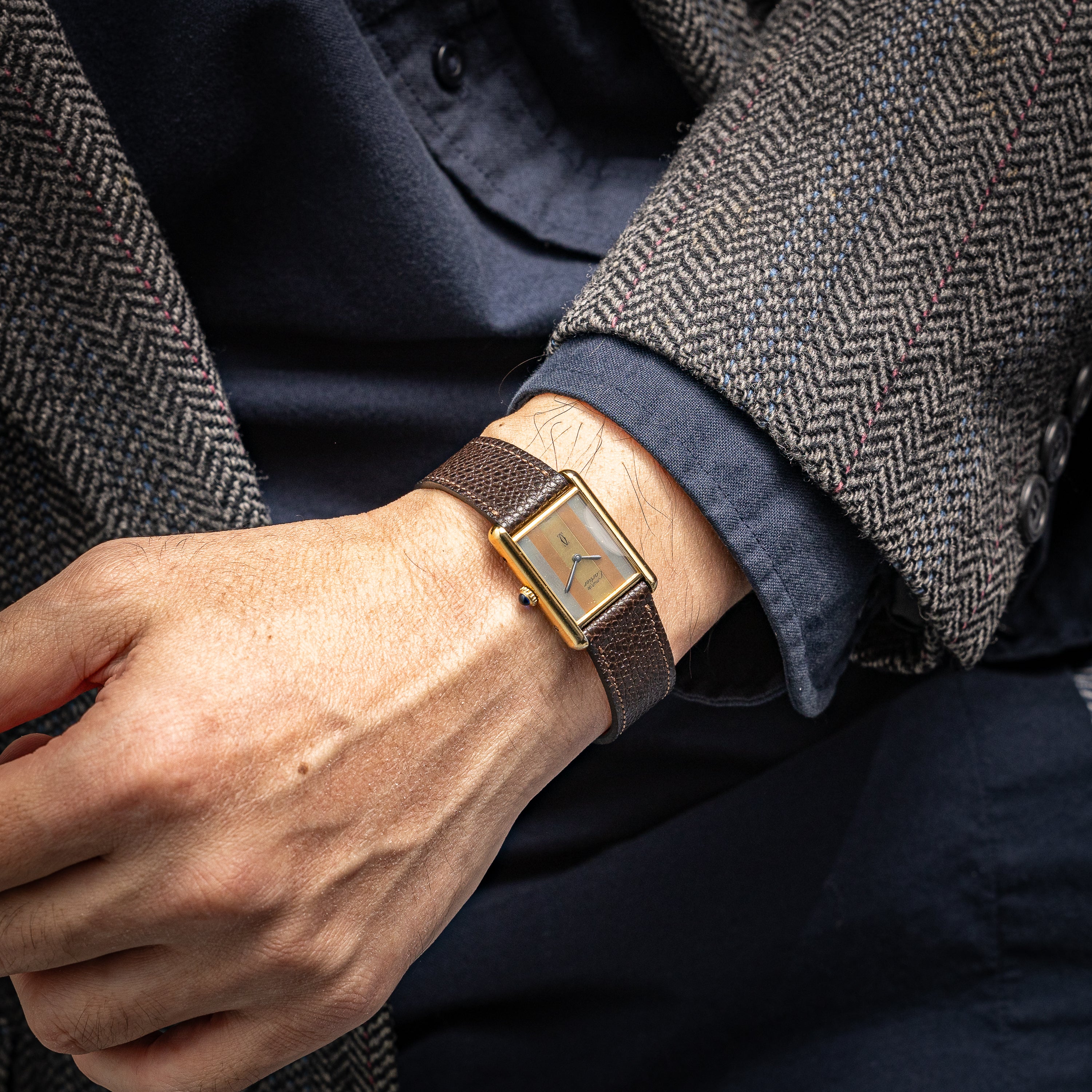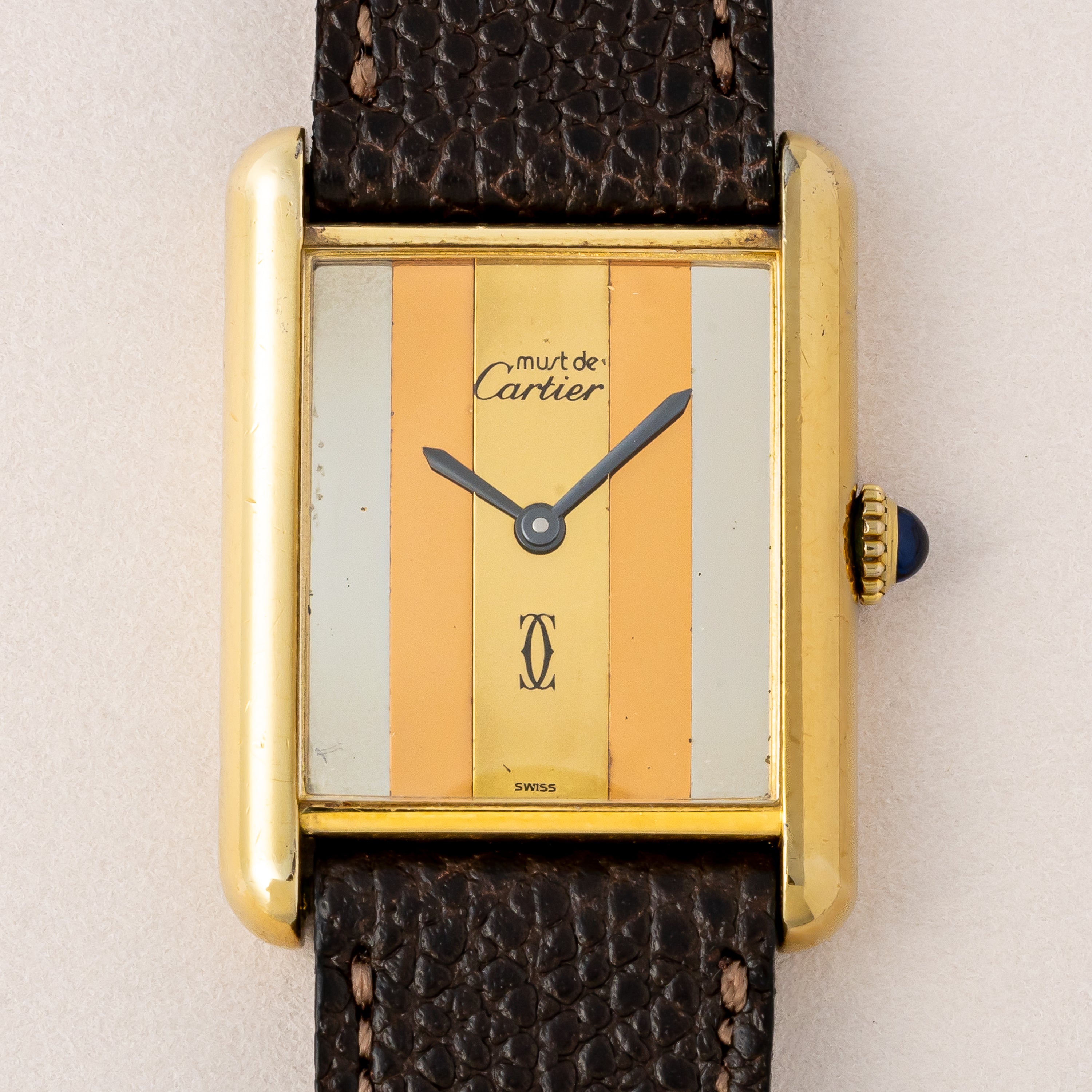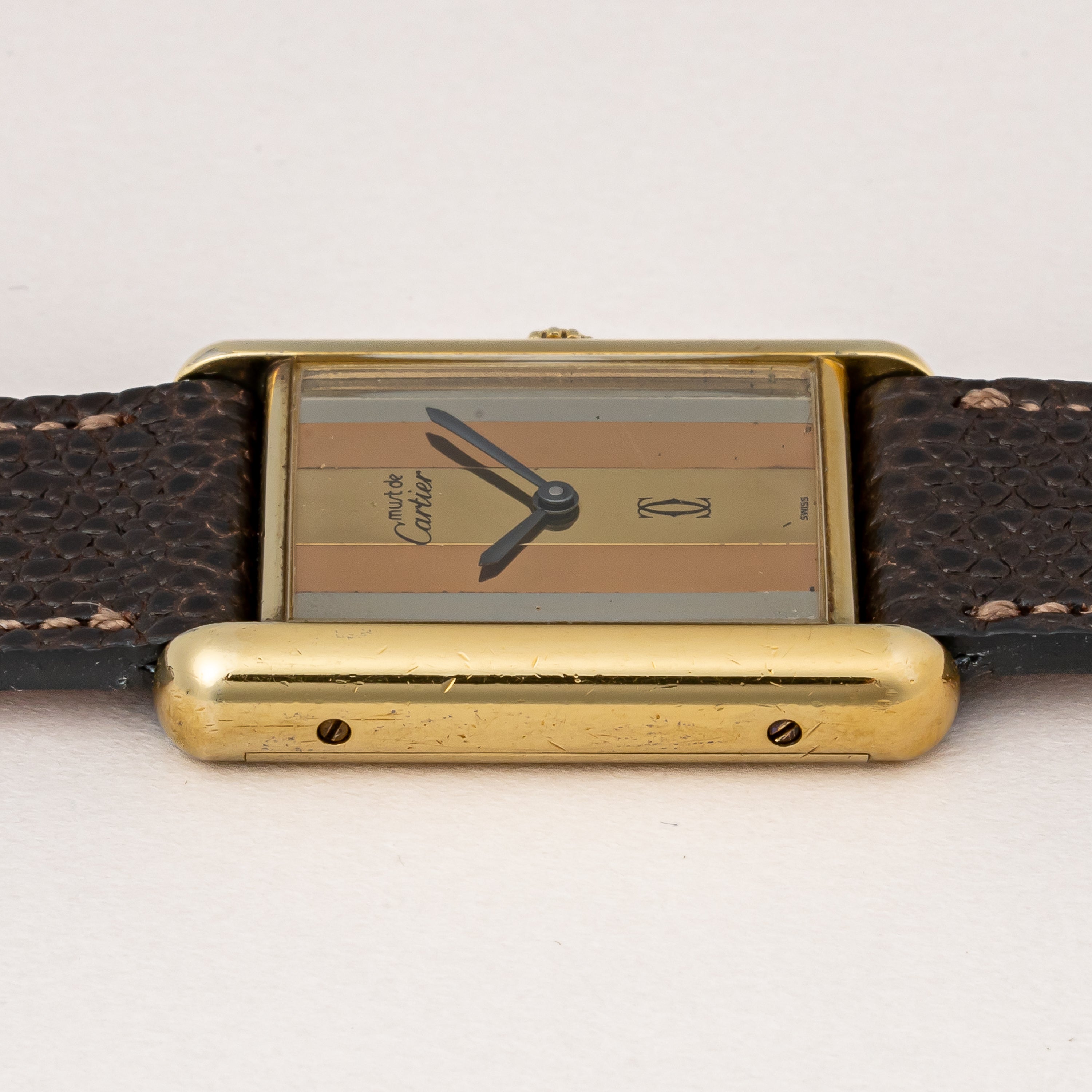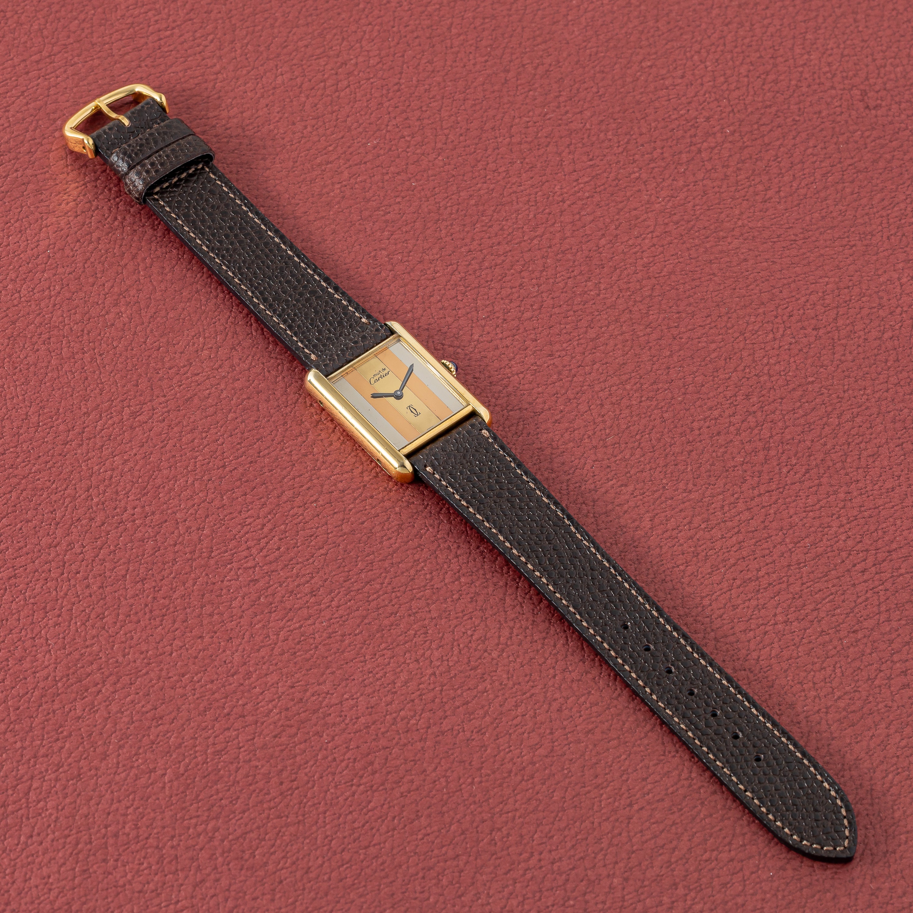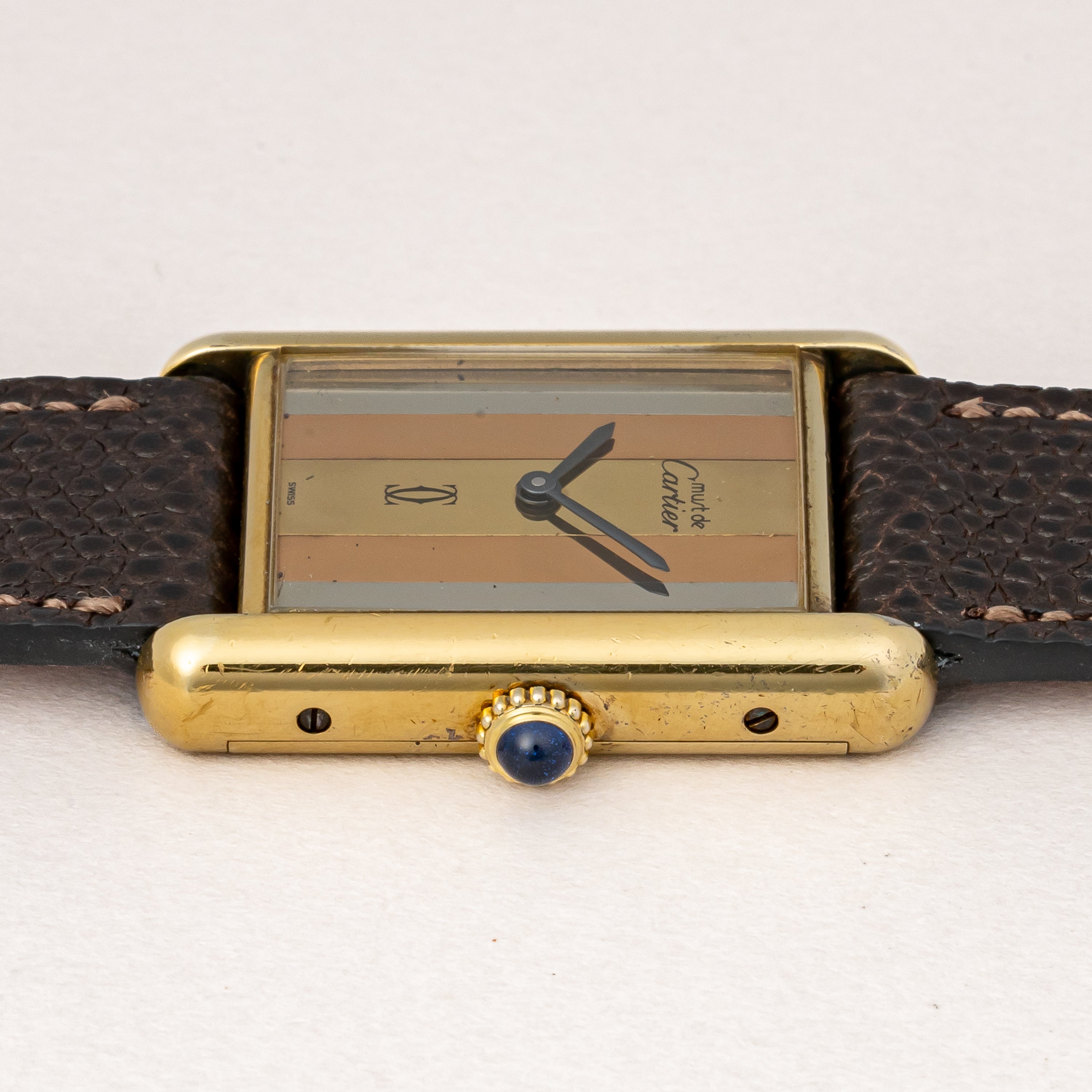 カルティエ マストタンク 1980年代製 LMサイズ 手巻き トリニティダイヤル 純正尾錠付き
