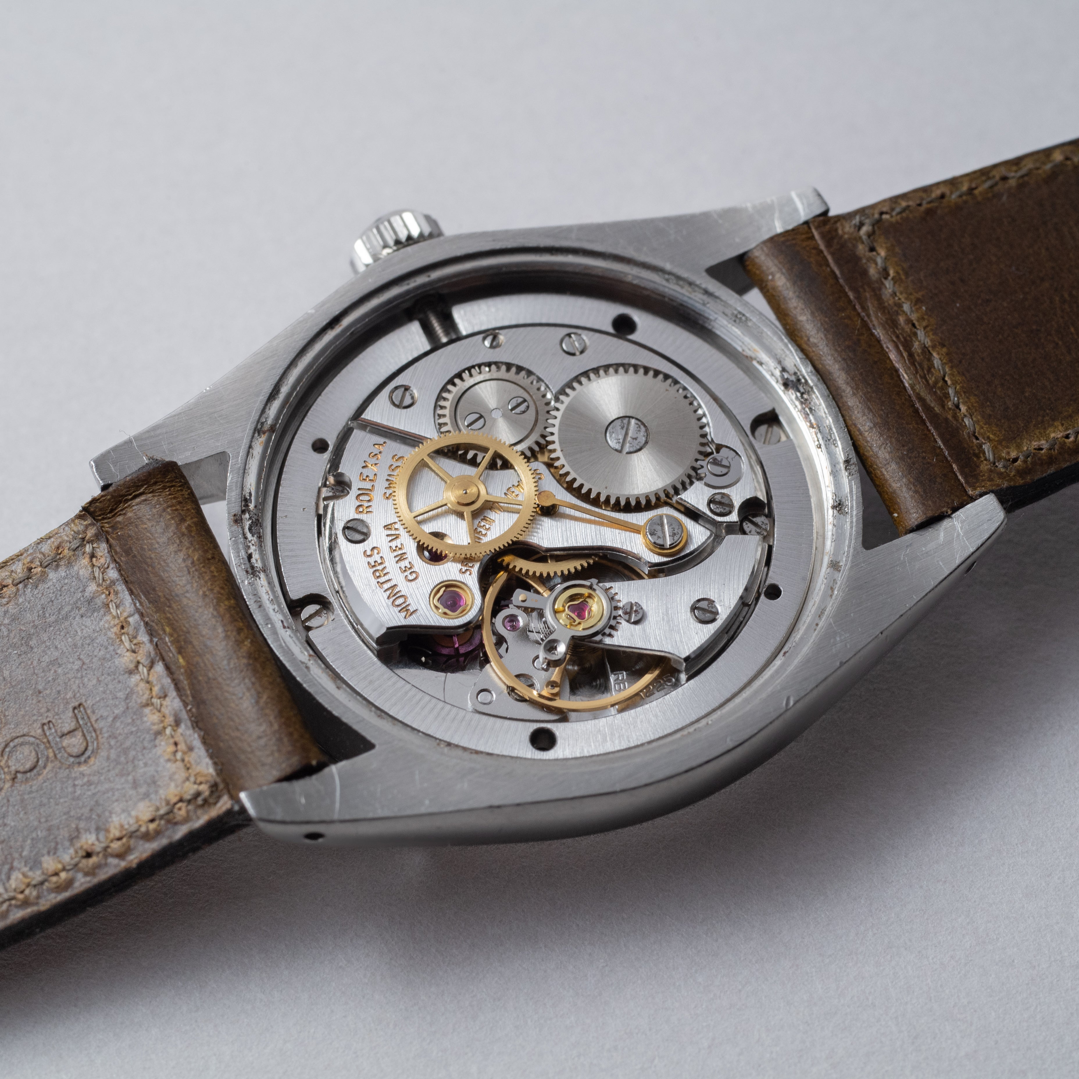- ヴィンテージ時計の特性上、風防・パッキン・リューズ・バネ棒などの消耗部品は後年メンテナンス過程で交換されている場合がございます。オリジナル性を重視しておりますが、必要に応じて適切な部品にて調整されていますので、よりコレクション性重視のお求めのお客様は事前にご確認ください。