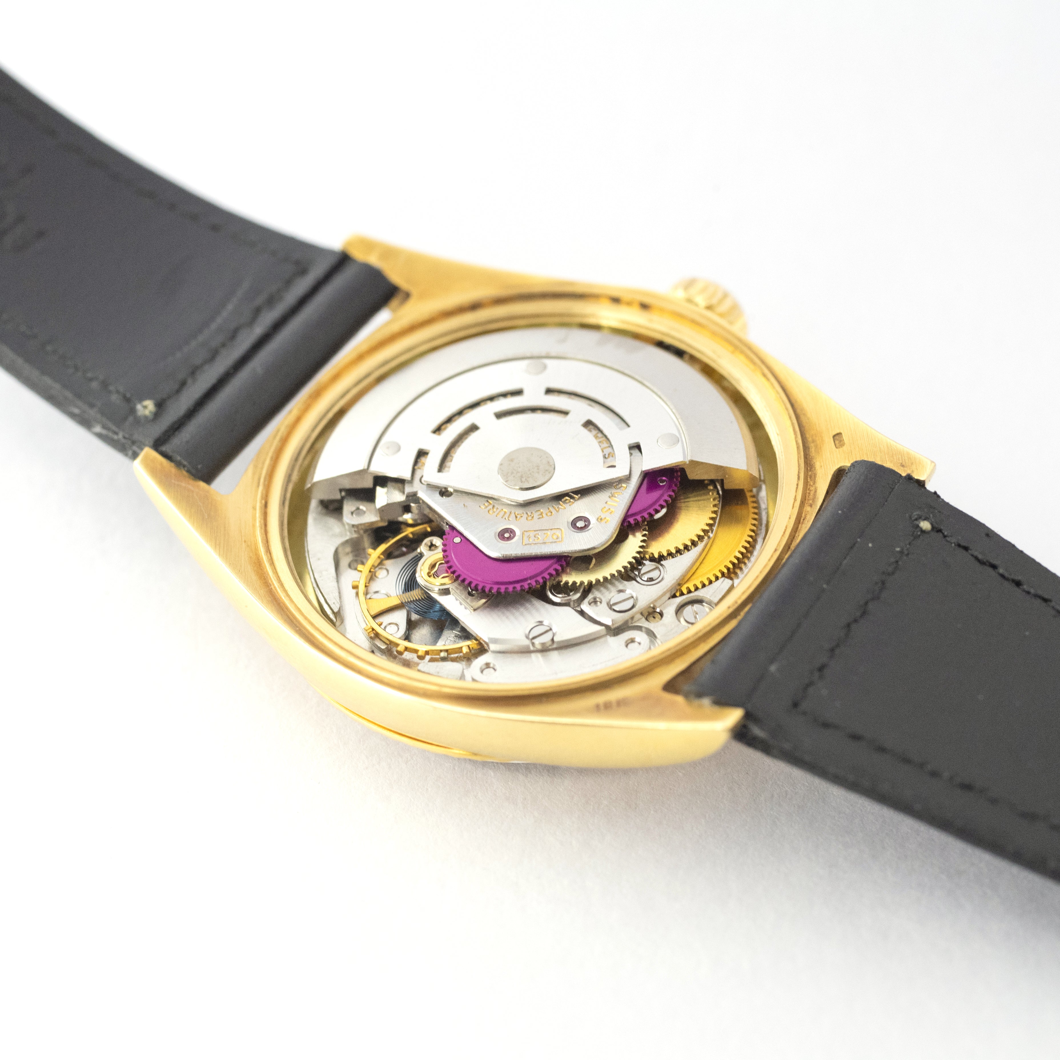 - ヴィンテージ時計の特性上、風防・パッキン・リューズ・バネ棒などの消耗部品は後年メンテナンス過程で交換されている場合がございます。オリジナル性を重視しておりますが、必要に応じて適切な部品にて調整されていますので、よりコレクション性重視のお求めのお客様は事前にご確認ください。