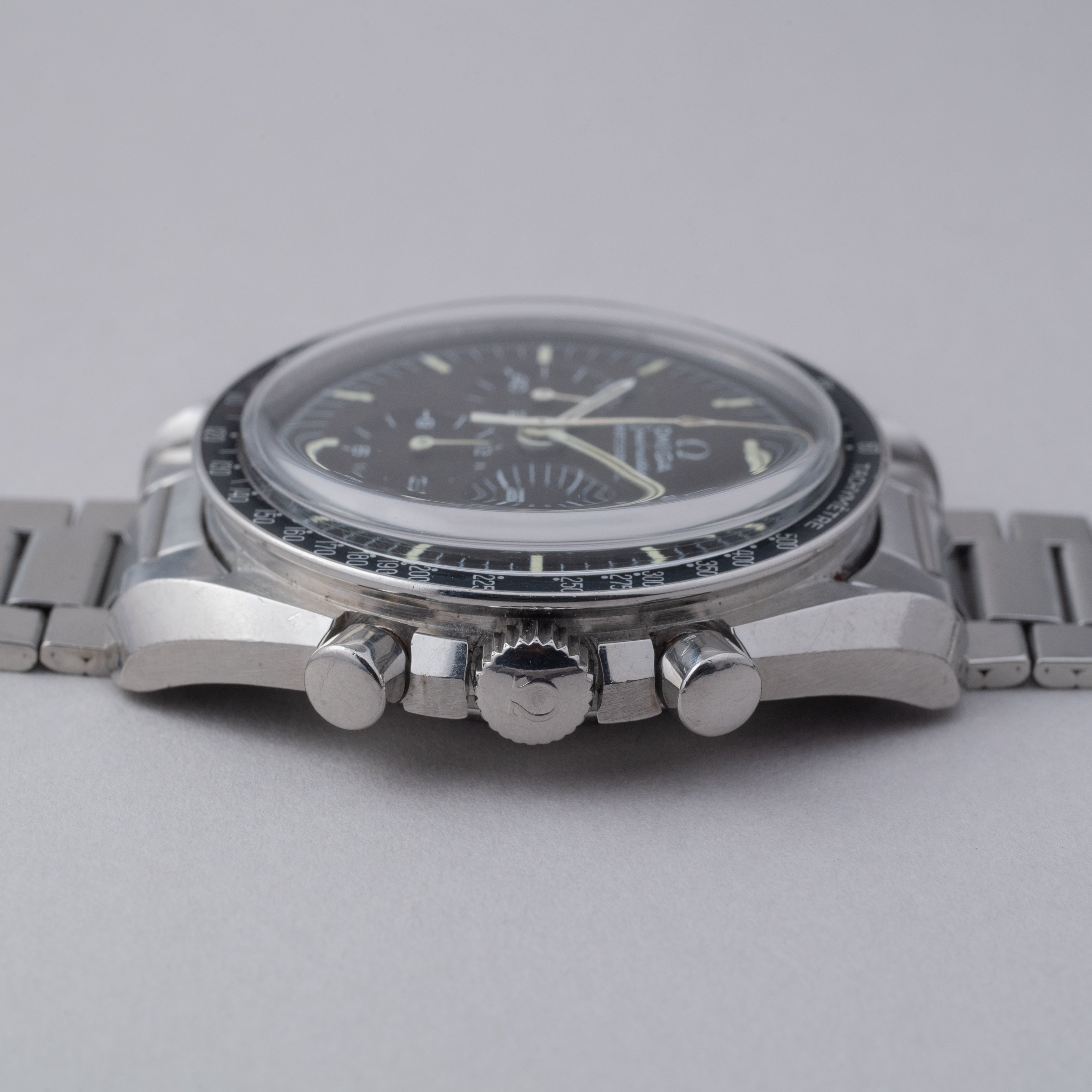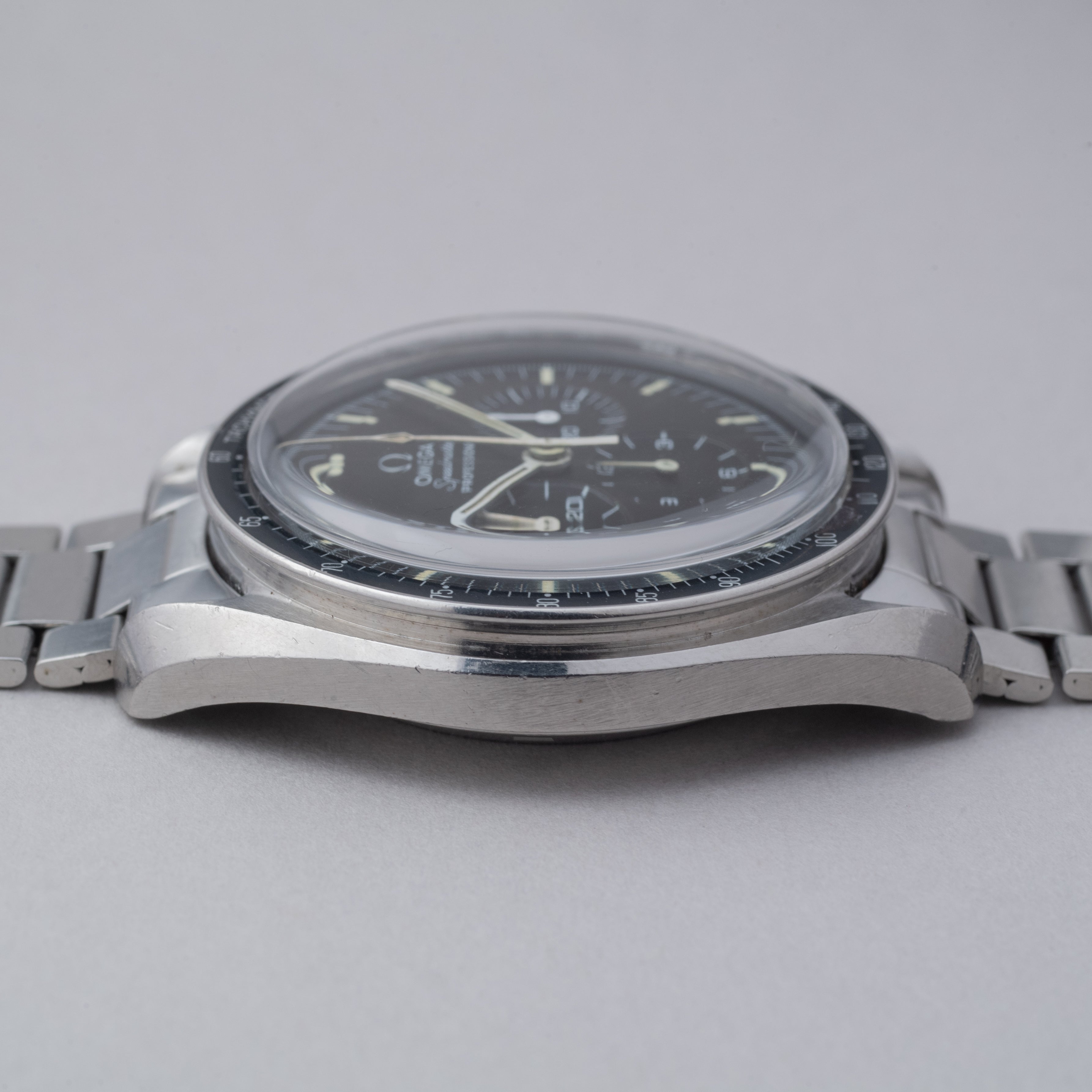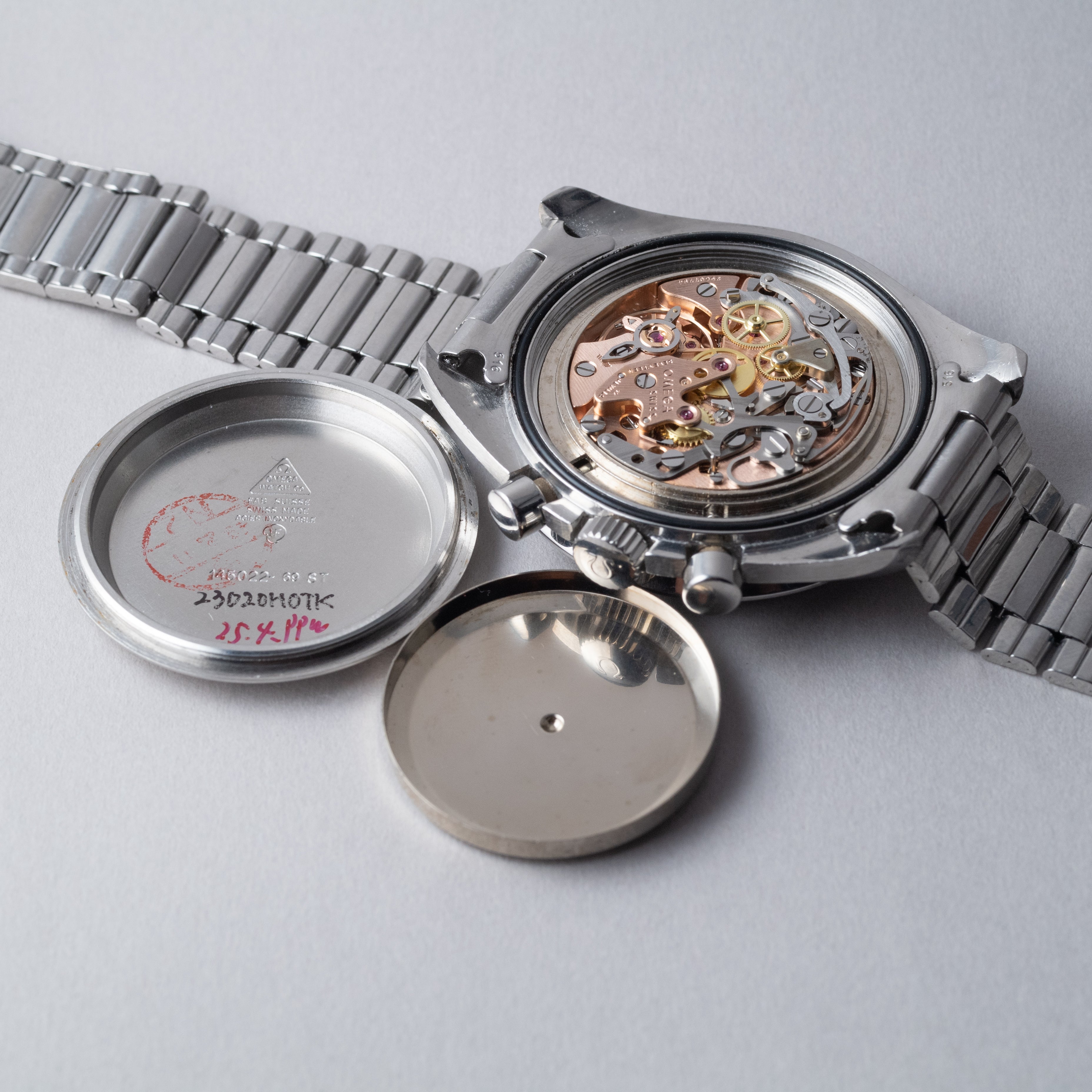 - ヴィンテージ時計の特性上、風防・パッキン・リューズ・バネ棒などの消耗部品は後年メンテナンス過程で交換されている場合がございます。オリジナル性を重視しておりますが、必要に応じて適切な部品にて調整されていますので、よりコレクション性重視のお求めのお客様は事前にご確認ください。