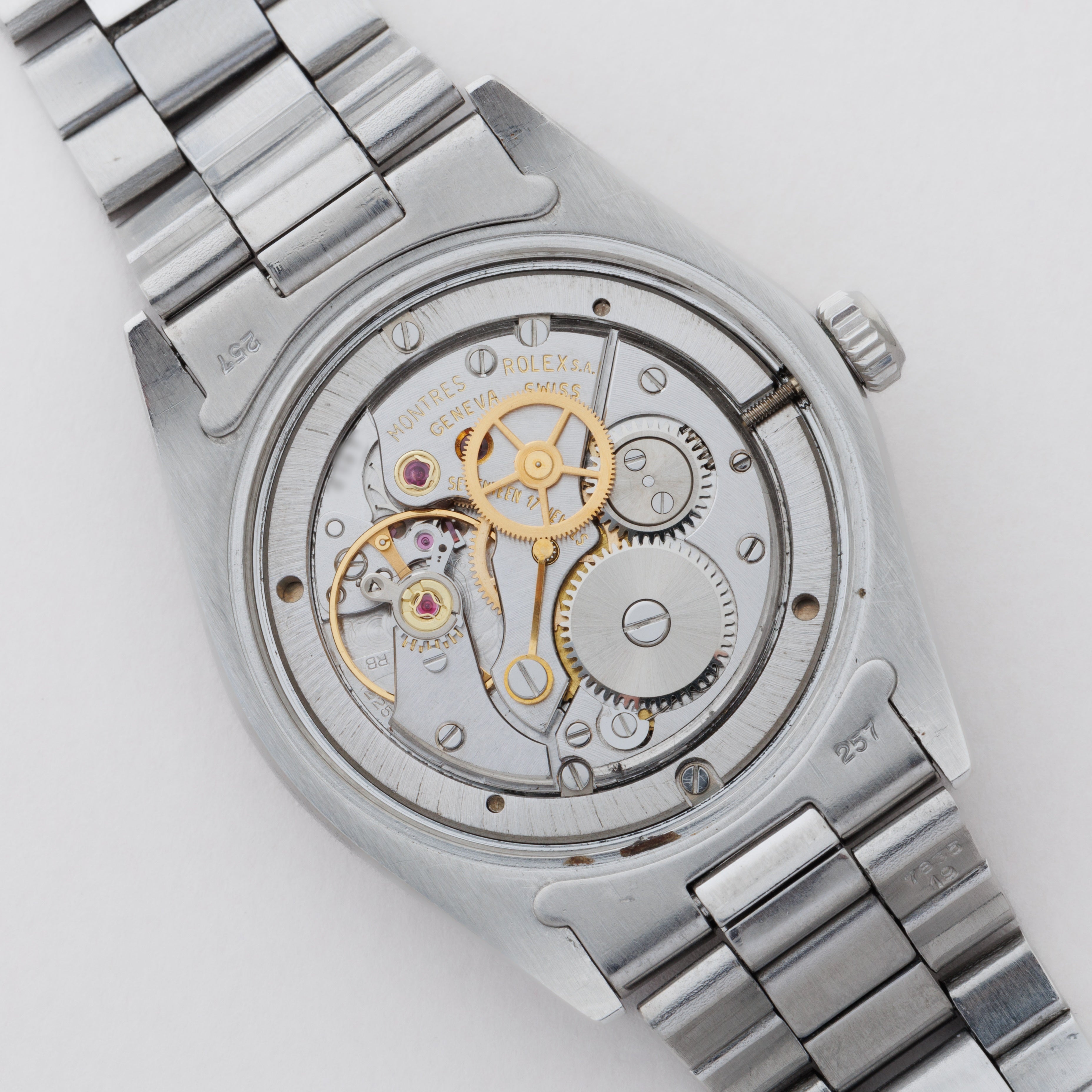 - ヴィンテージ時計の特性上、風防・パッキン・リューズ・バネ棒などの消耗部品は後年メンテナンス過程で交換されている場合がございます。オリジナル性を重視しておりますが、必要に応じて適切な部品にて調整されていますので、よりコレクション性重視のお求めのお客様は事前にご確認ください。