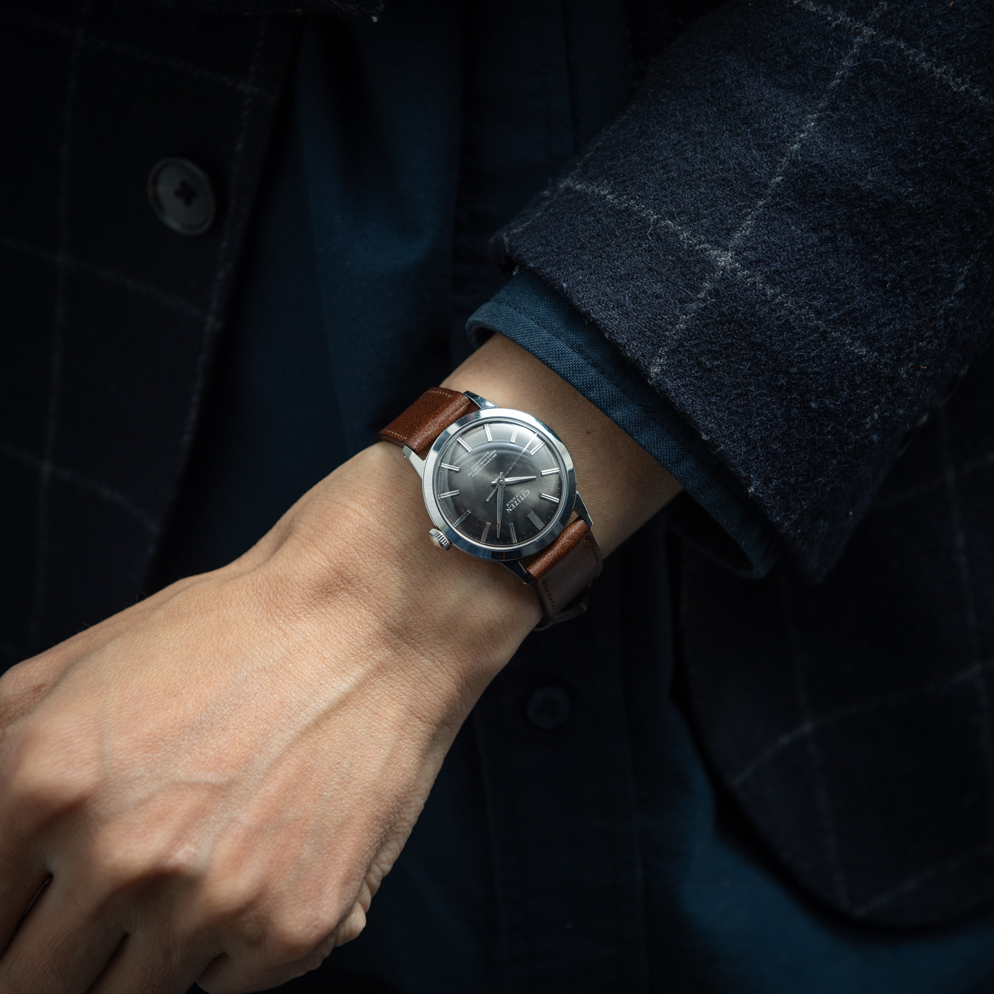 シチズン 輸出モデル 防水ラウンドケース 1969年製 Ref.4-020189TA グレーダイヤル 手巻き