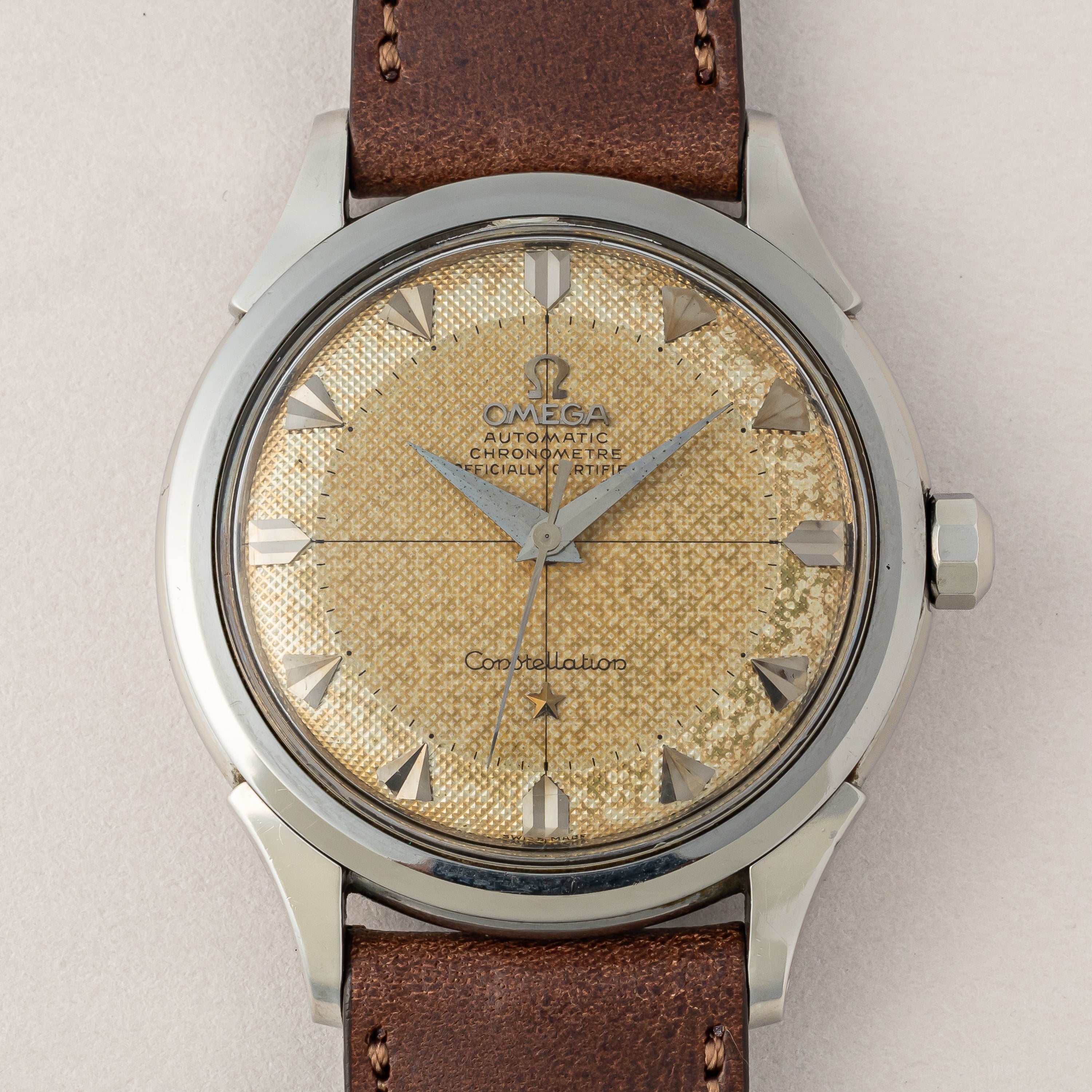 オメガ コンステレーション 1956年~1957年製 Ref.2852 8 SC ギョーシェダイヤル 純正尾錠付き