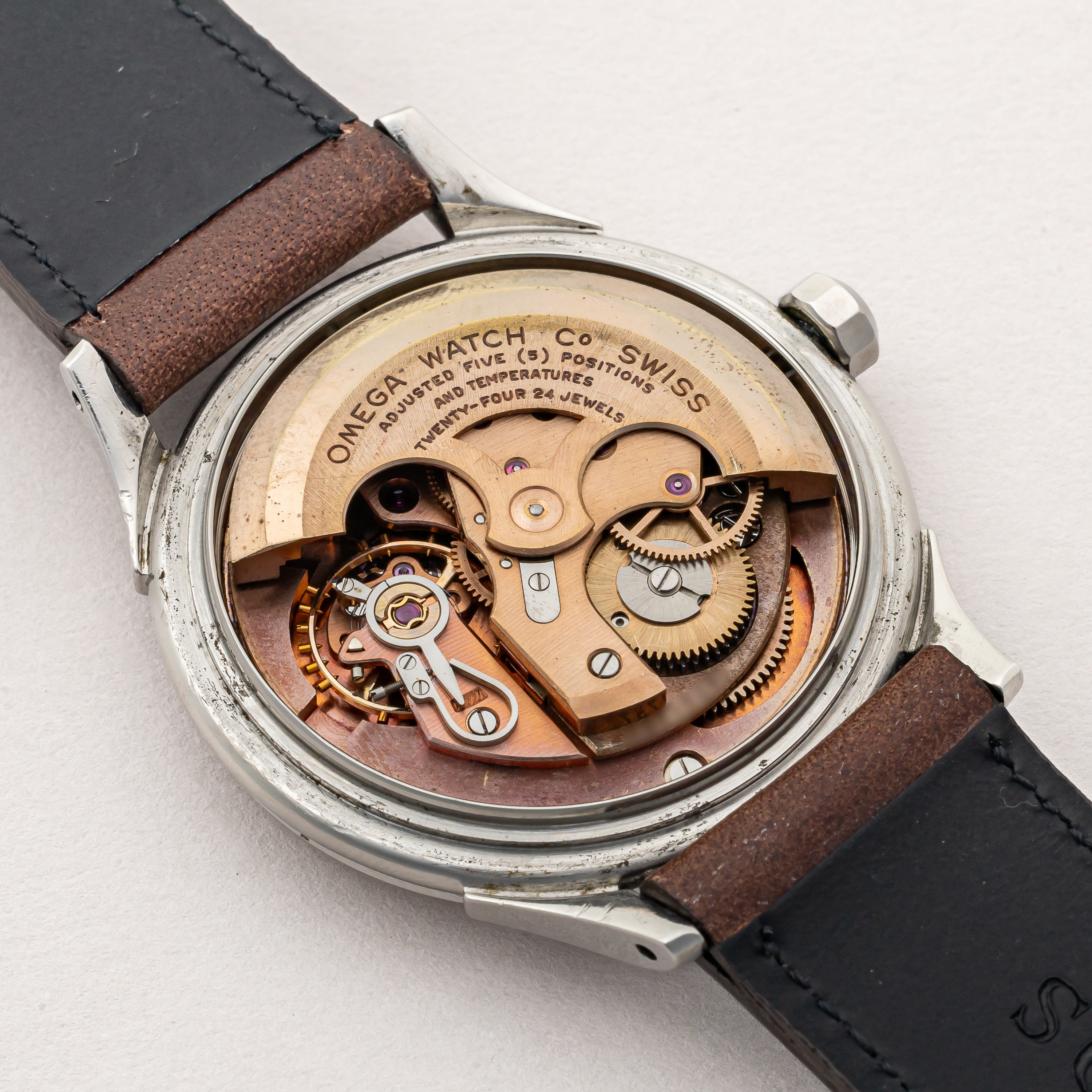 - ヴィンテージ時計の特性上、風防・パッキン・リューズ・バネ棒などの消耗部品は後年メンテナンス過程で交換されている場合がございます。オリジナル性を重視しておりますが、必要に応じて適切な部品にて調整されていますので、よりコレクション性重視のお求めのお客様は事前にご確認ください。